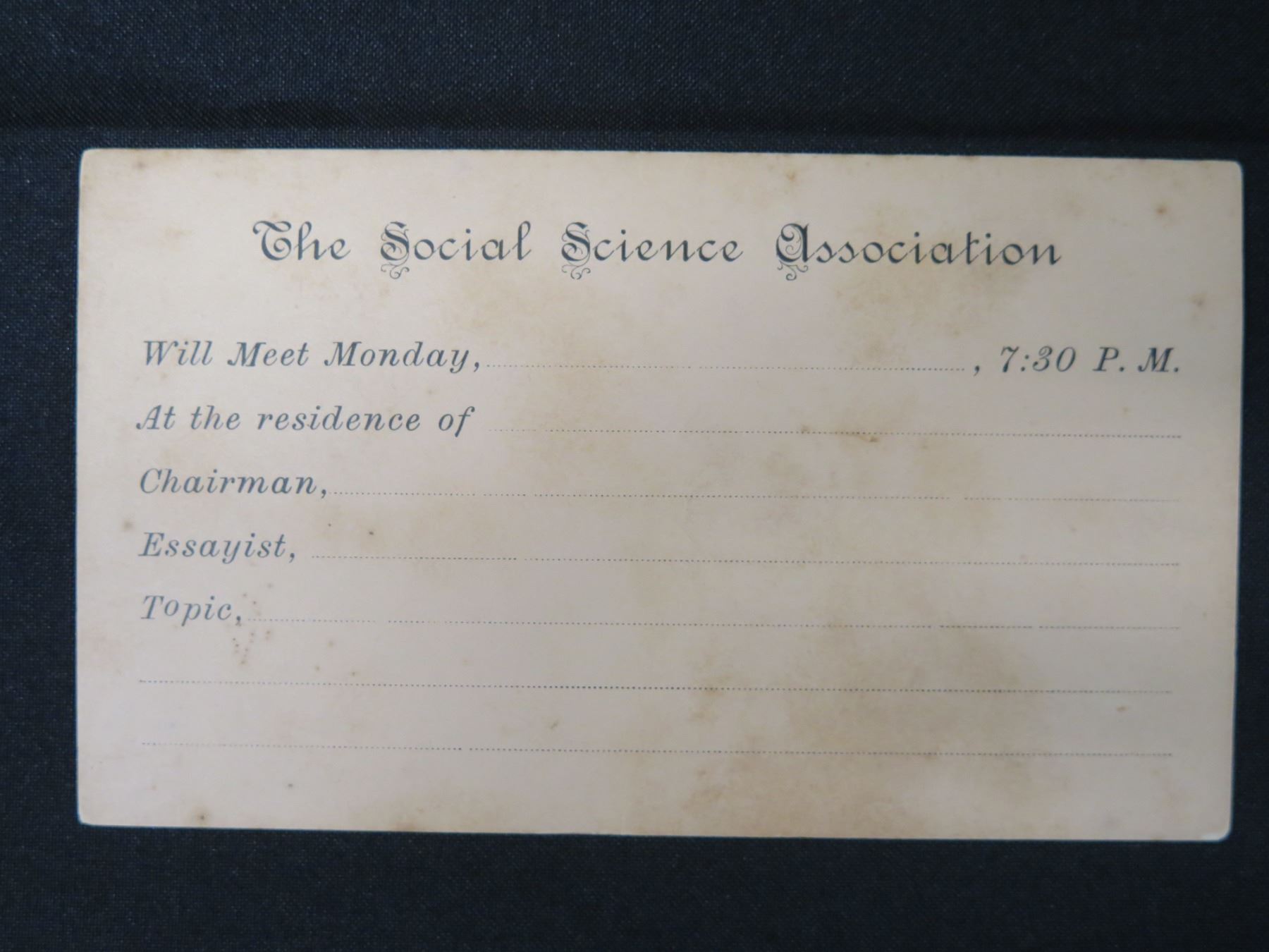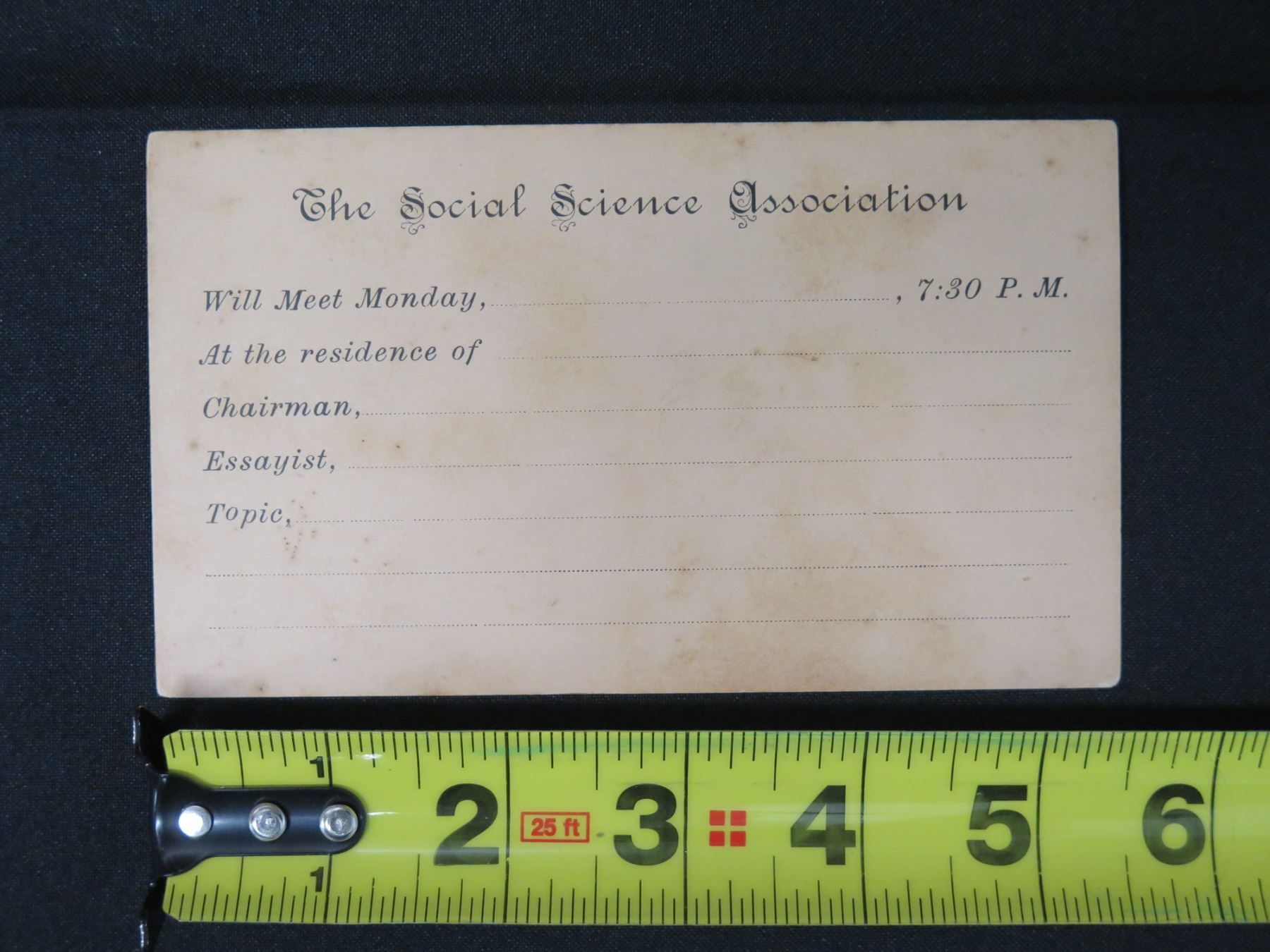 Social Science Association Postcard Invitation Circa 1885, 5.5" x 3.25"