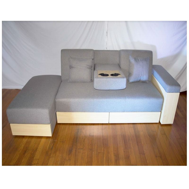 Light Grey Storage Sofa Futon with Armrest, Elite Discount Furniture Model: SS01. Donated By: Elite Discount Furniture