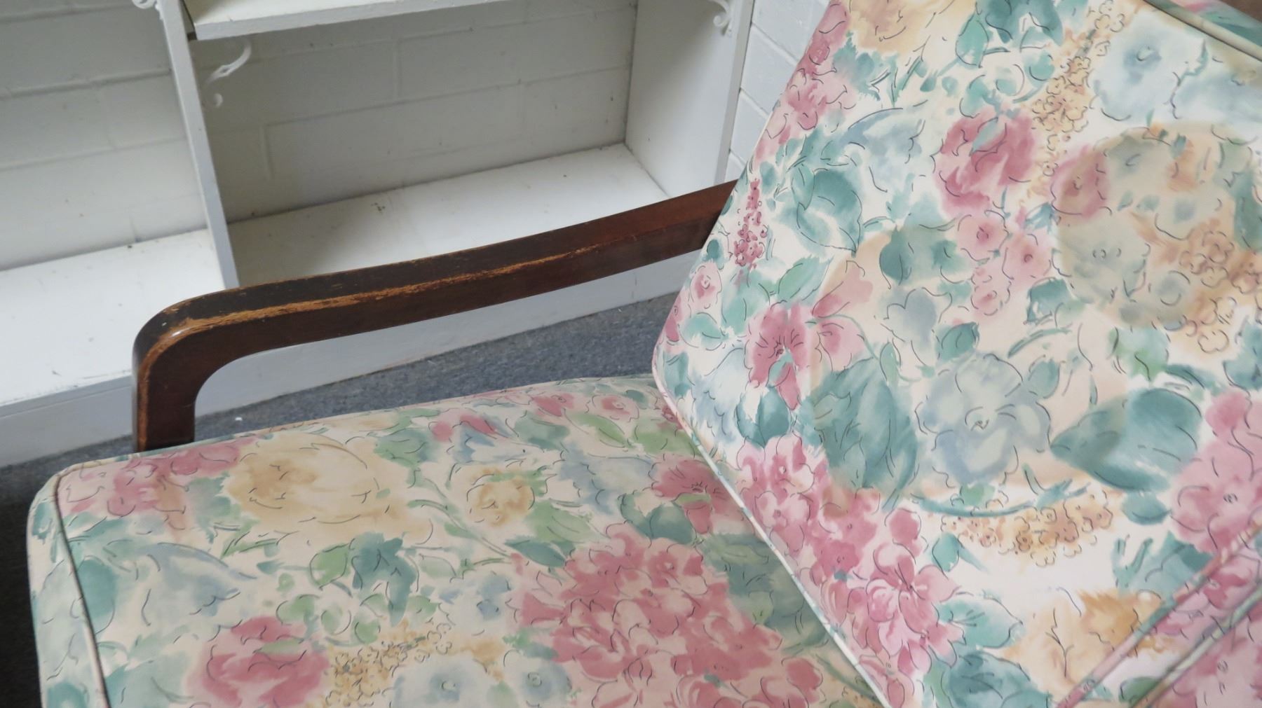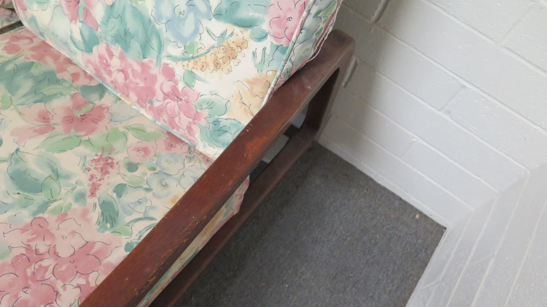 Sofa w/ Wooden Frame & Floral Print Cushions