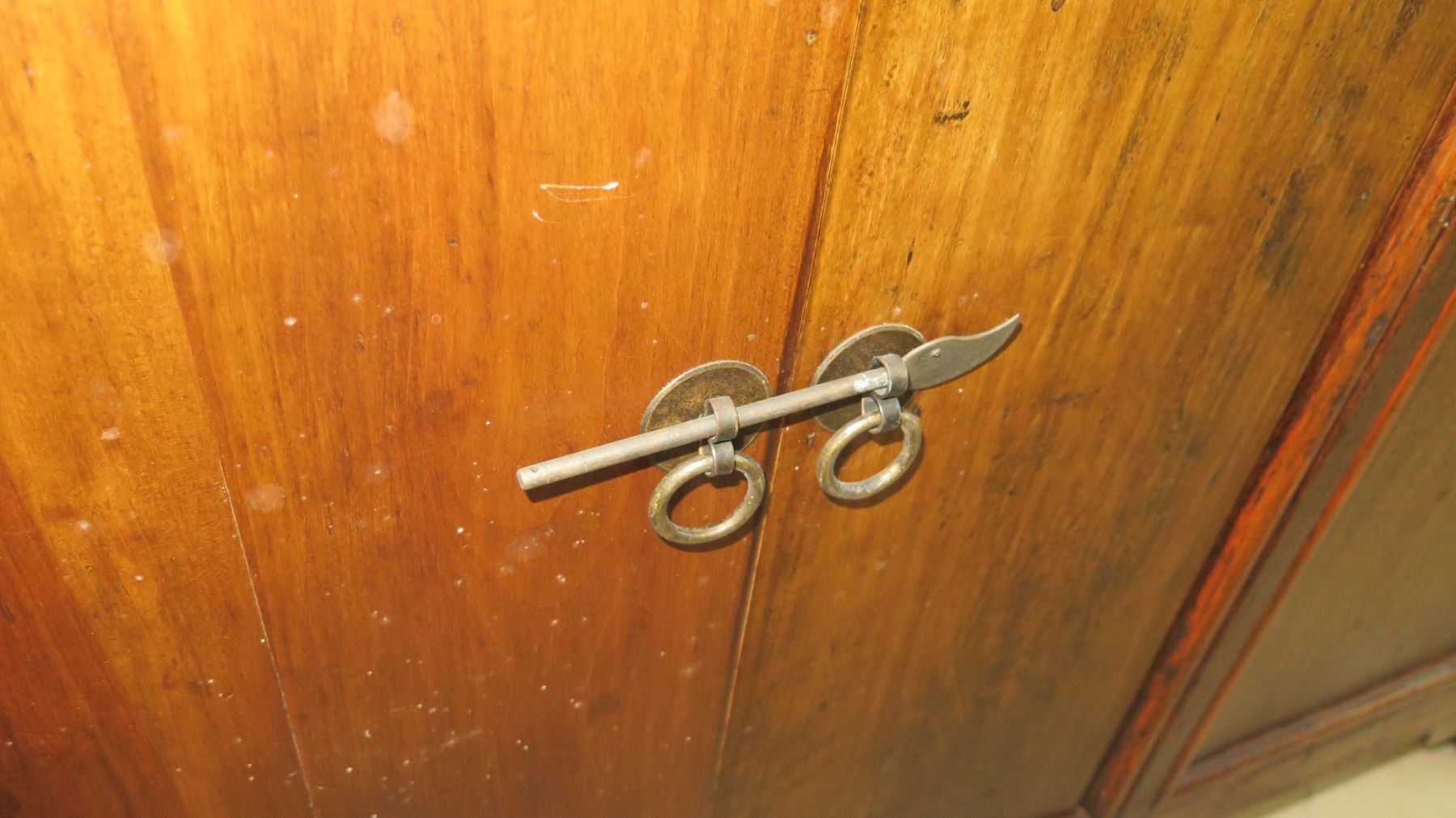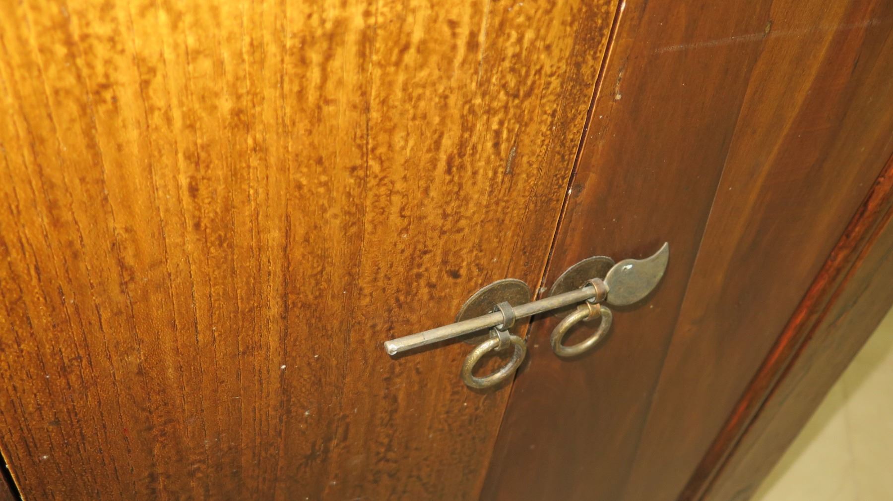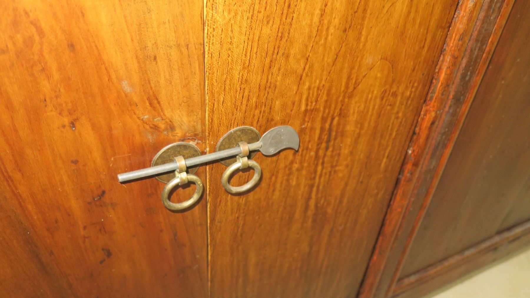 Solid Dark Wood Sideboard Cabinet Approx. 6'6 x 20" x 33" H (some damage-see last pictures), may have bugs or may have had bugs at one time.