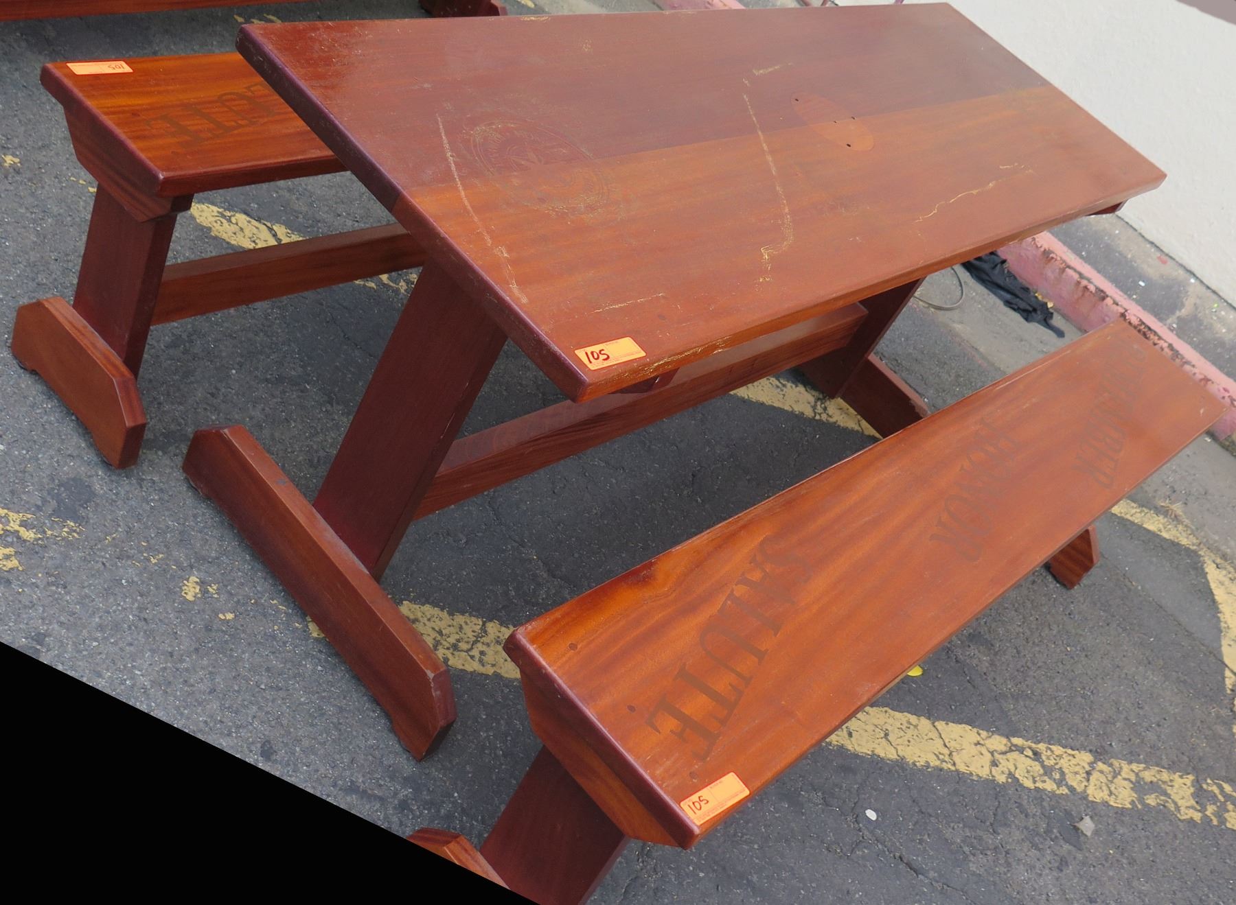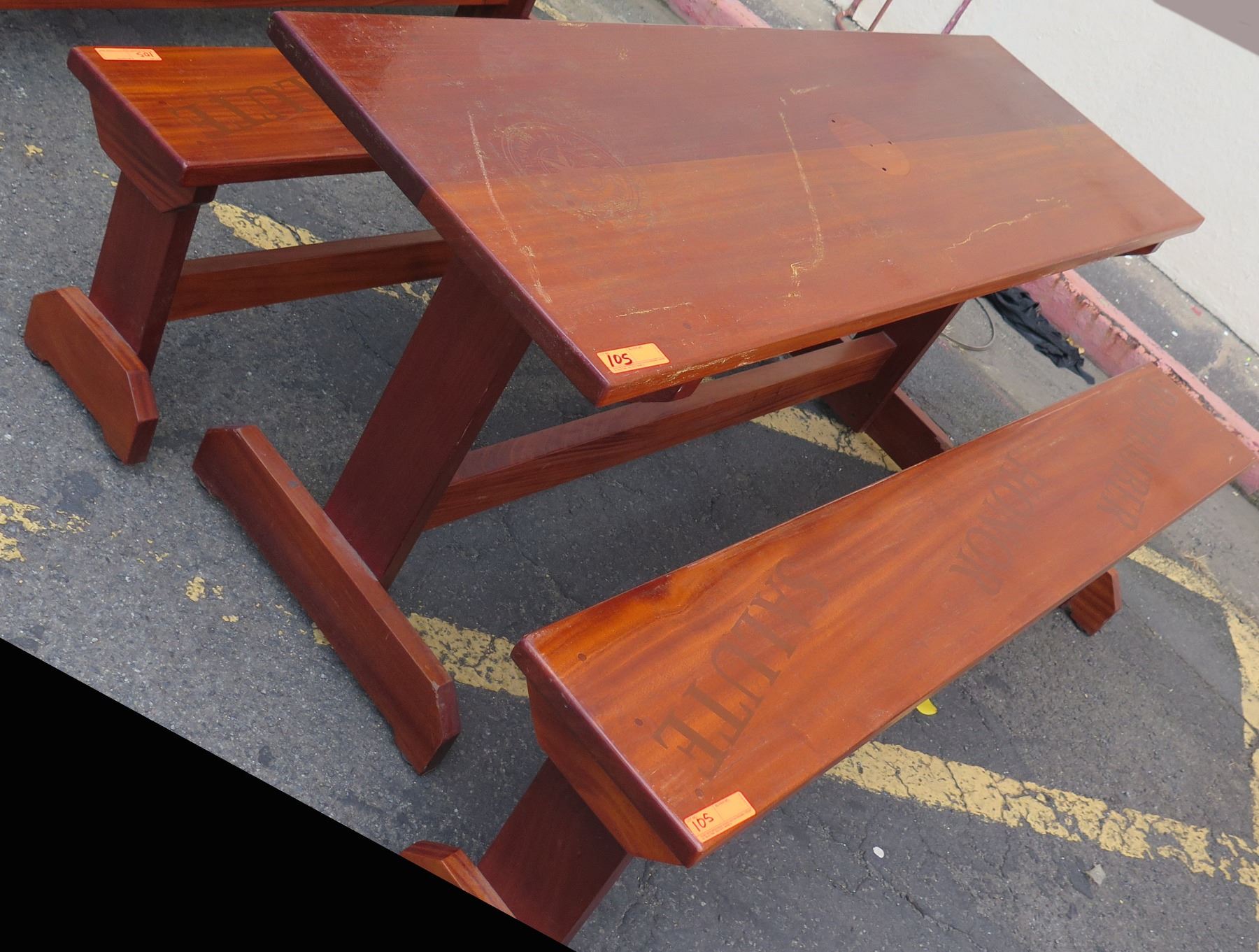 Solid Mahogany Picnic Table (6' L x 2' W) & 2 Benches w/ Salute, Honor, Remember