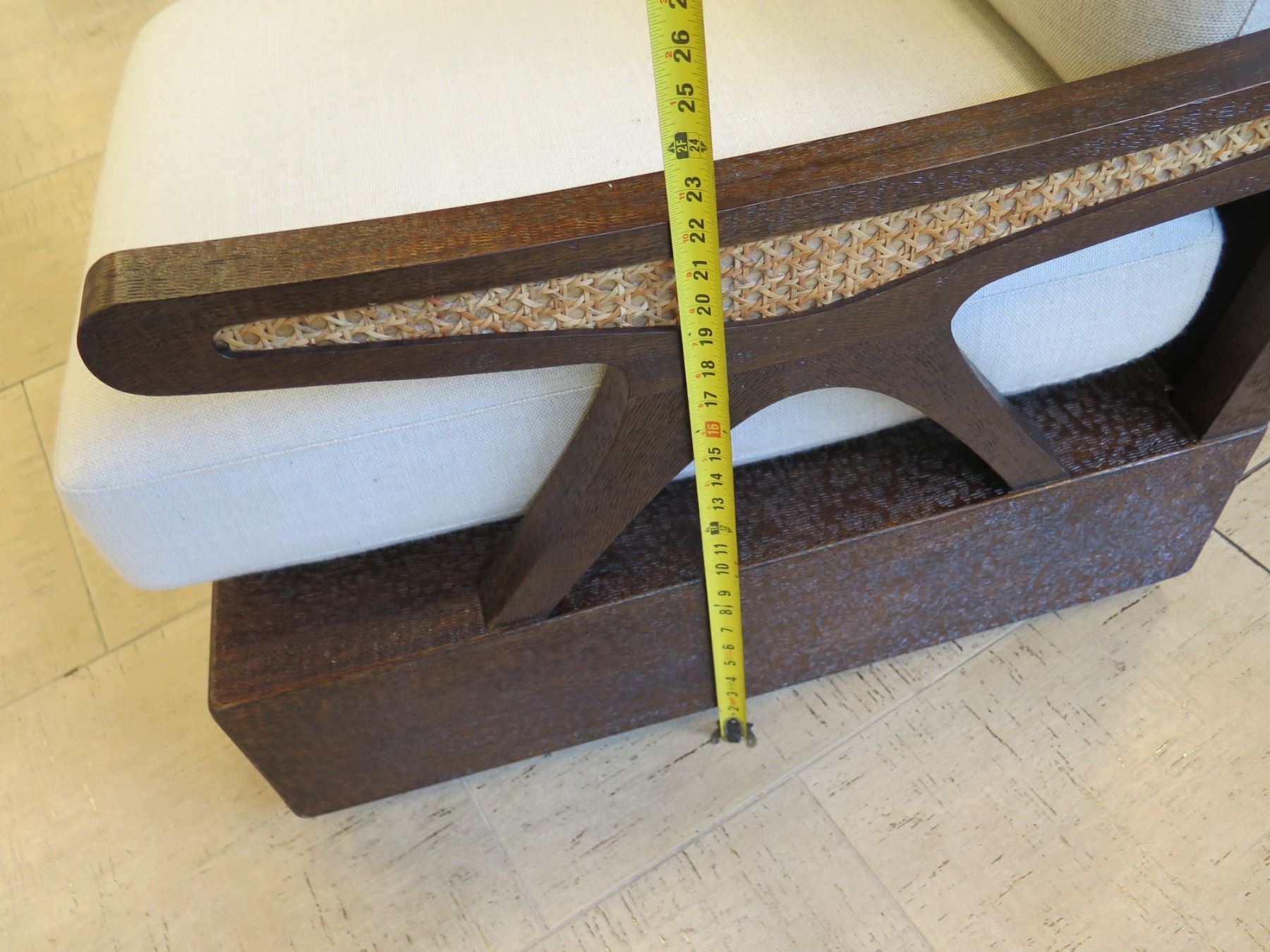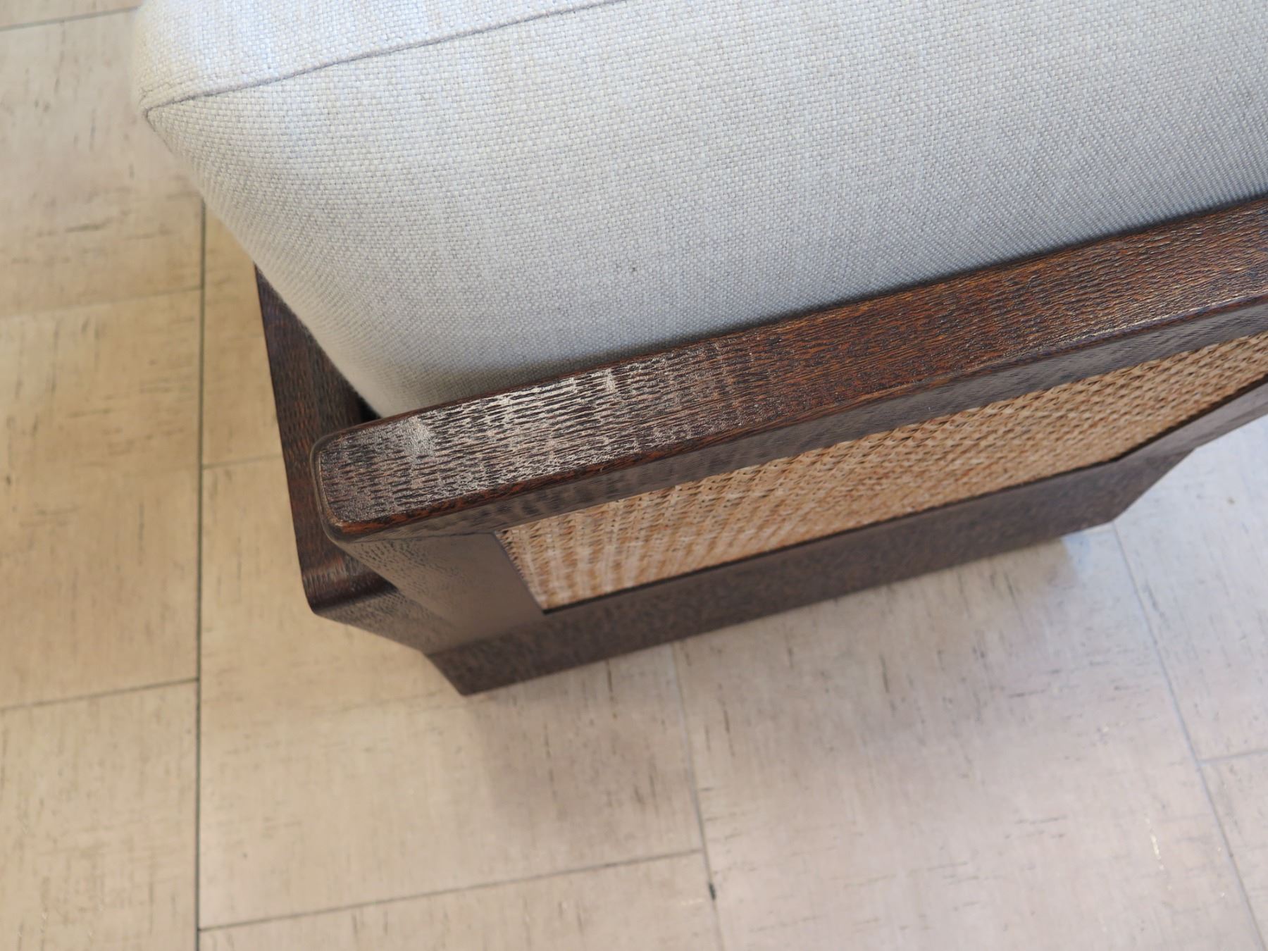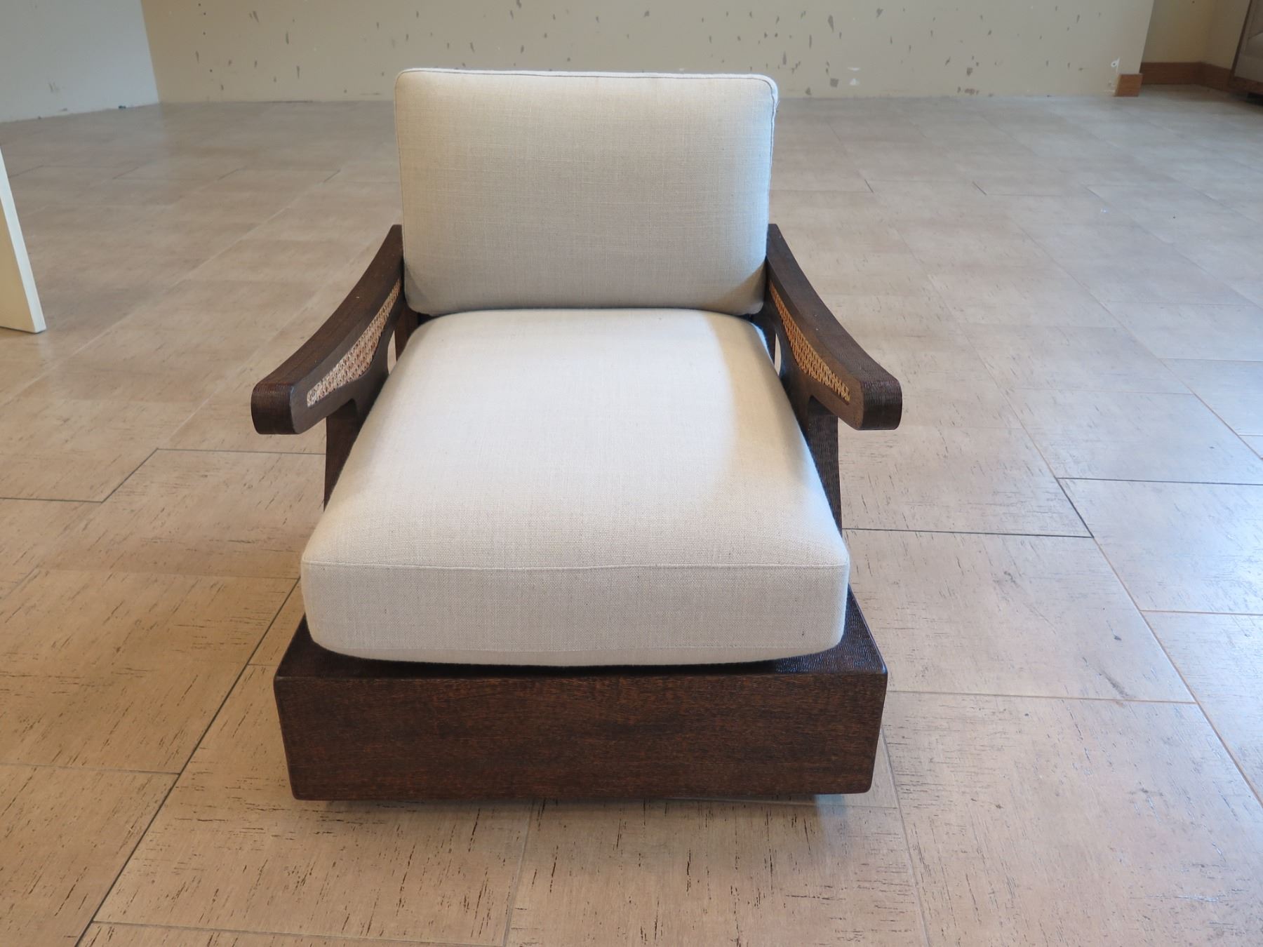 South Sea Wooden Lounge Chair w/ Cane Rattan Accents, Textured Wood Base 29" x 38" x 24" (to armrest). Deep seat (depth is 38" from front to back).