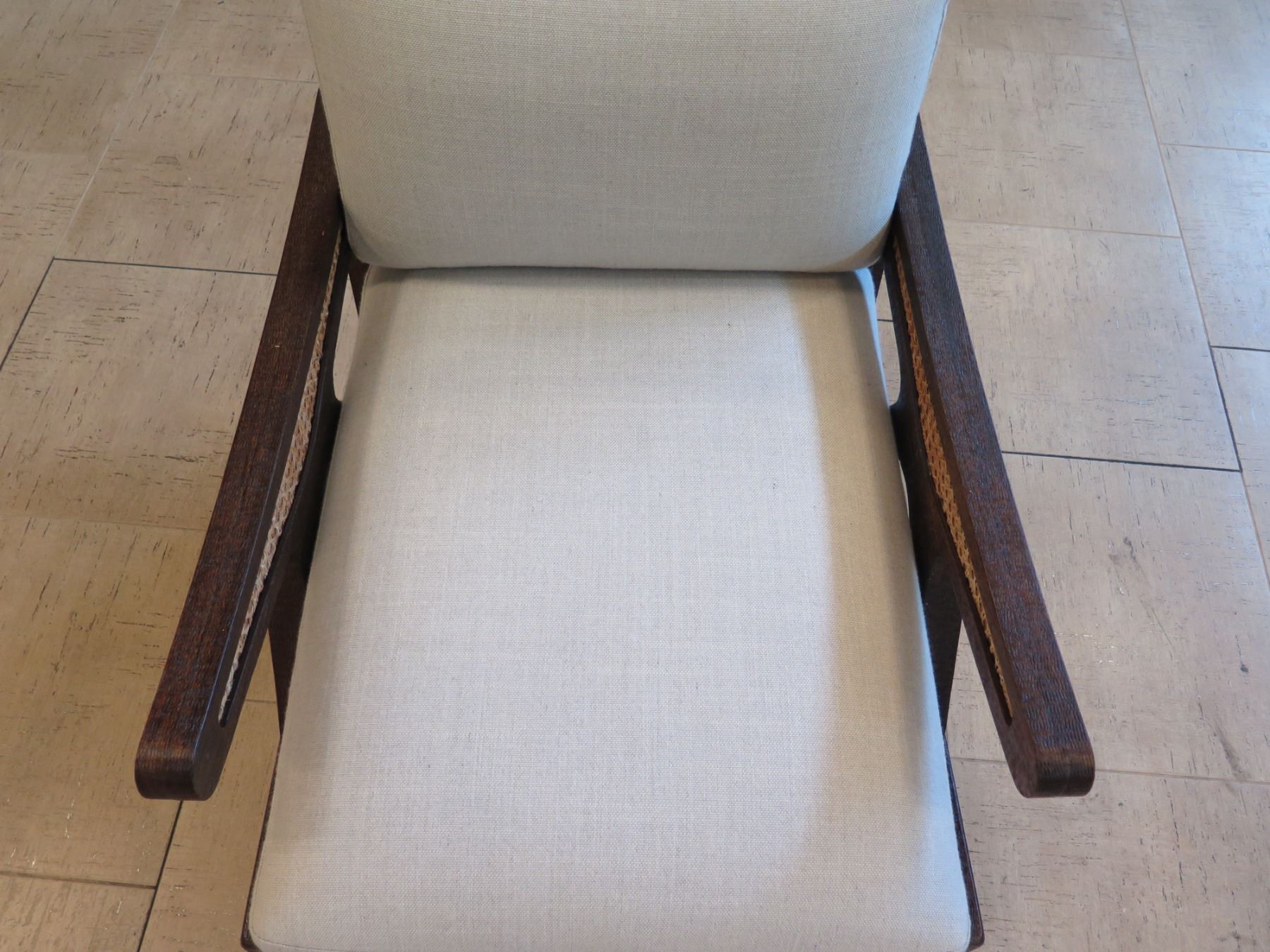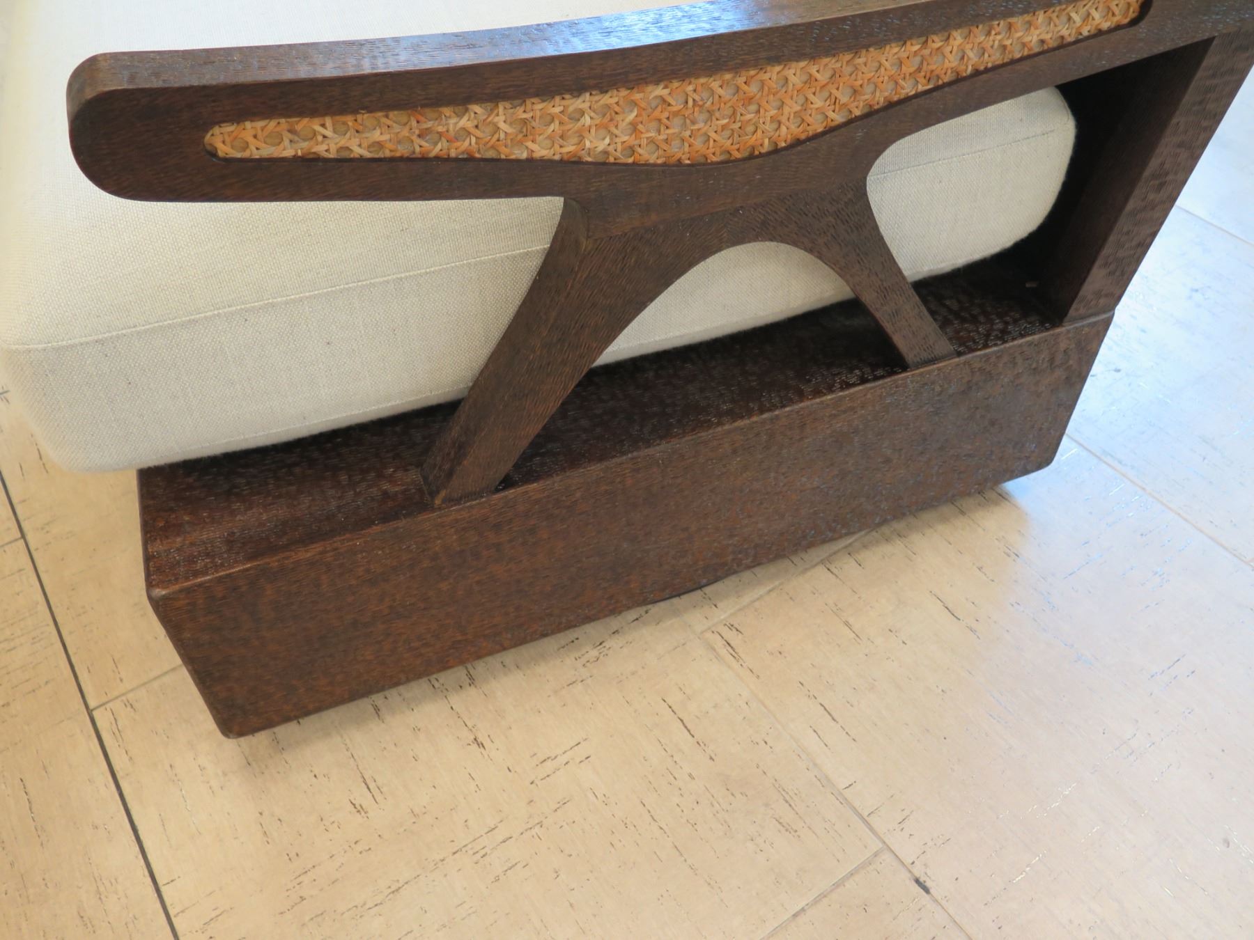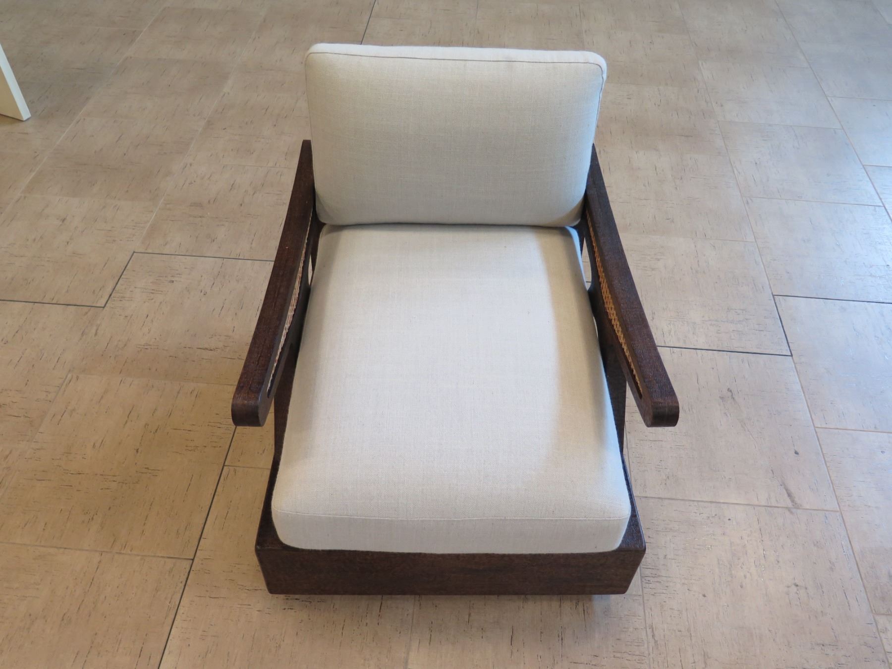 South Sea Wooden Lounge Chair w/ Cane Rattan Accents, Textured Wood Base 29" x 38" x 24" (to armrest). Deep seat (depth is 38" from front to back).