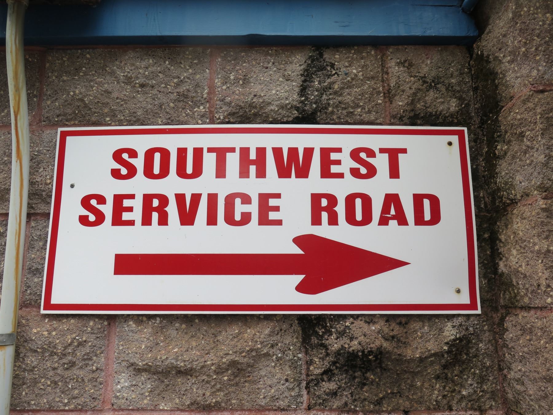 Southwest Service Road w/ Arrow Sign 36"x16". Note: Signs will be removed if hanging prior to pick up