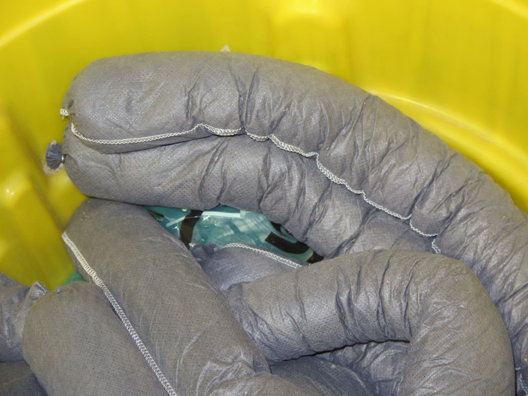 Spill Kit Bucket w/ Absorbent Socks, Straps, Hardware, Grease Gun, etc