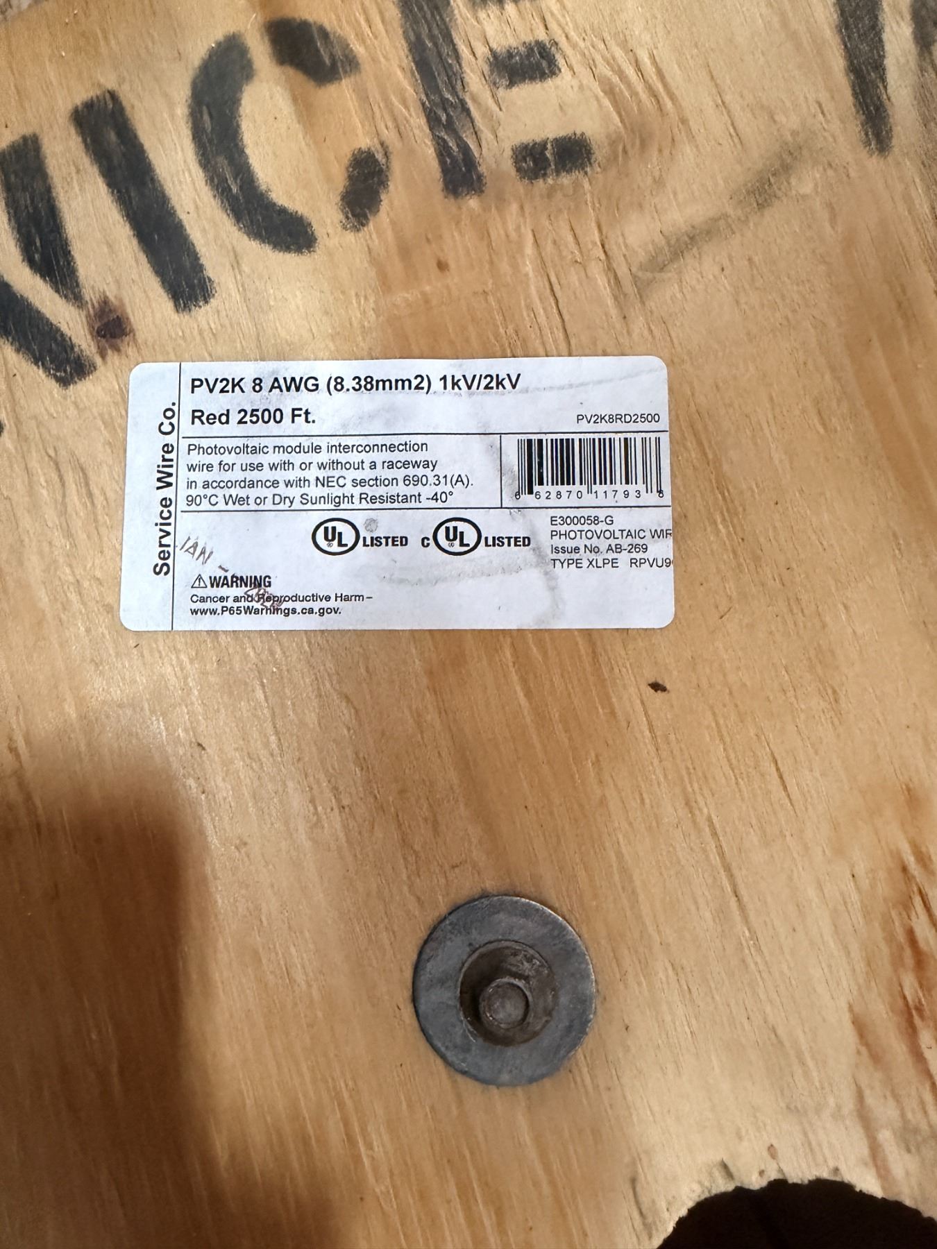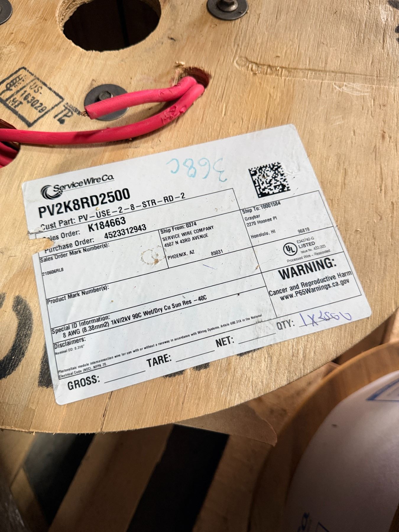 Spool (3500-ft) Service Wire Co. PV2K 8 AWG Red Wire