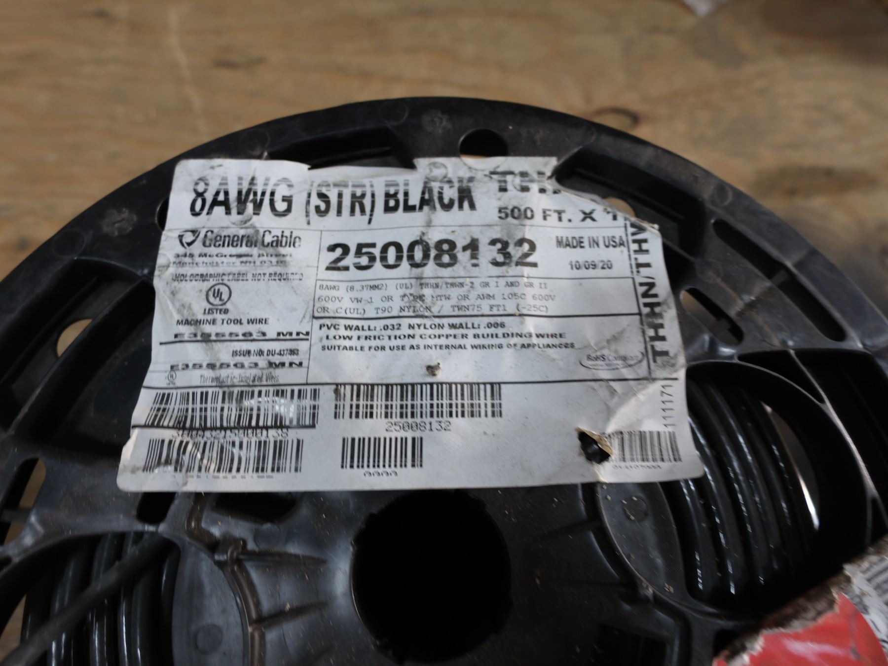Spool (500-ft) General Cable 8 AWG (STR) Black Wire