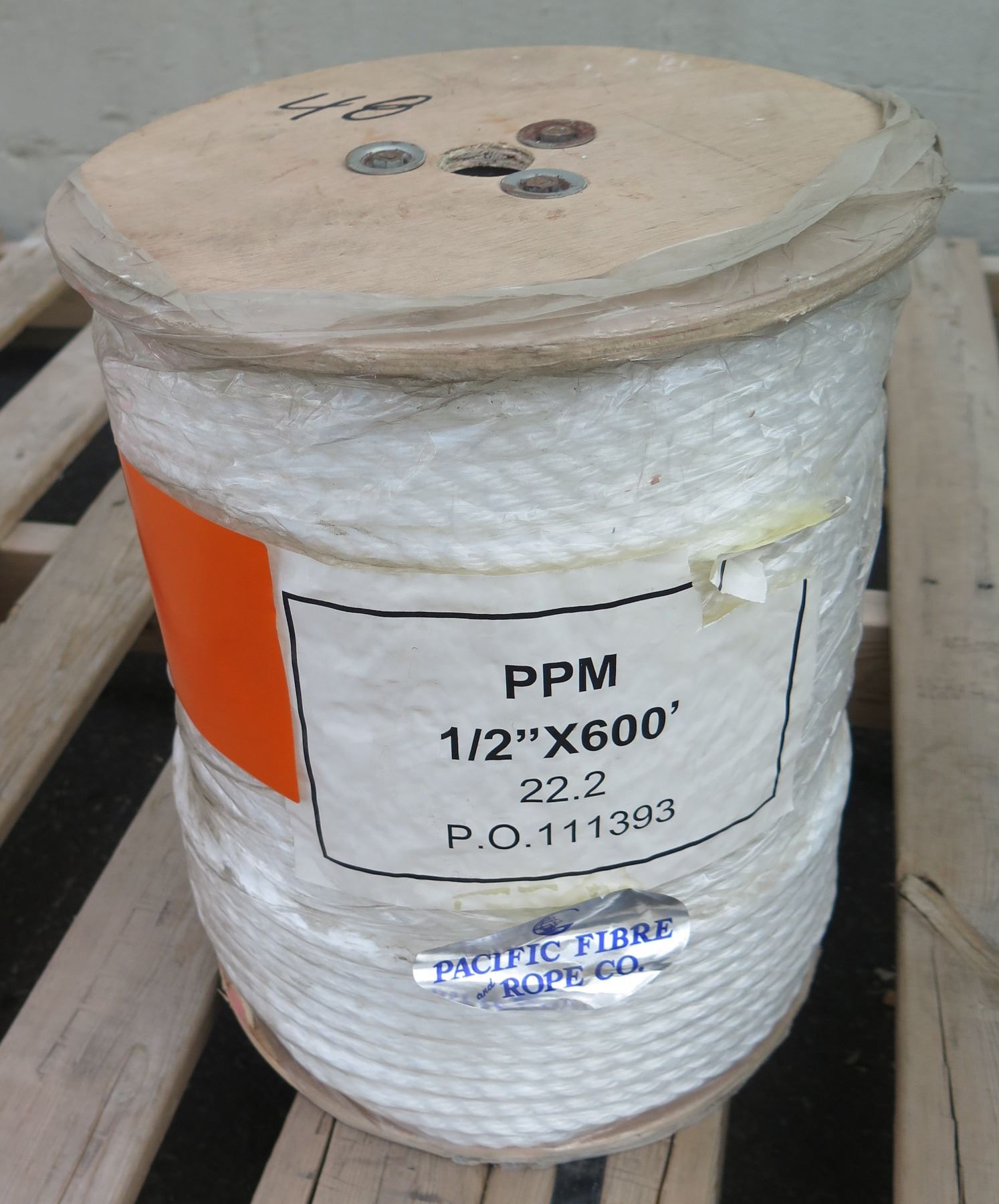 Spool Pacific Wire Rope Co. PPM 1/2"x600' 22.2 PO 111393 White Rope