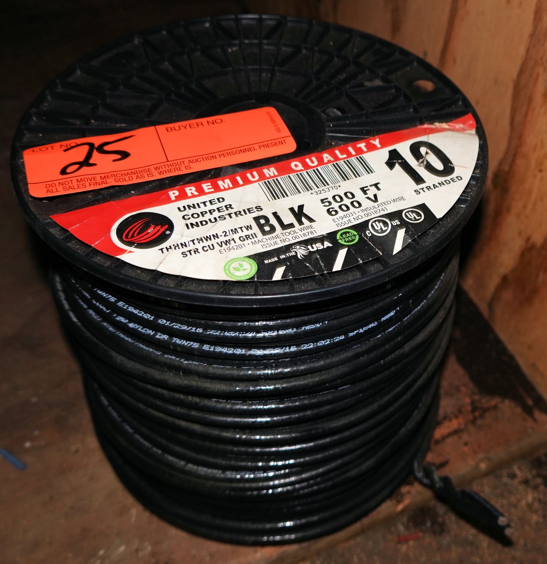 Spool United Copper 325370 Black 10 AWG Stranded THHN/THWN-2/MTW Wire 500'