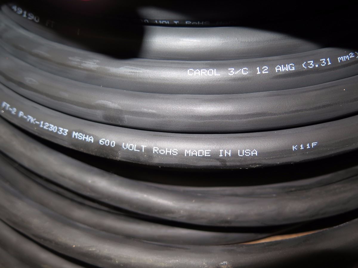 Spool of Black Carolprene Cable (P-7K-123033) MSHA 600 VOLT RoHS RESISTANT SOOW CSA (-40C)