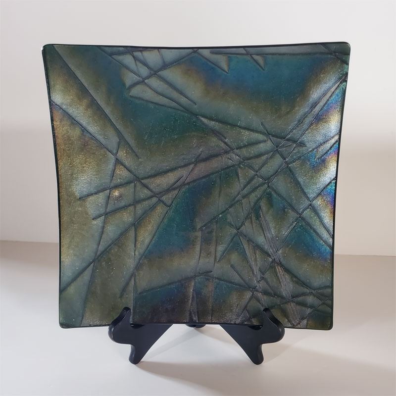 Square Black Opalescent Decorative Plate 12 x 12 "
