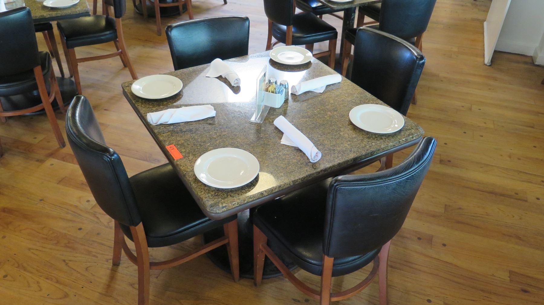 Square Granite Table w/Round Metal Base (35" x 35"), 4 Chairs