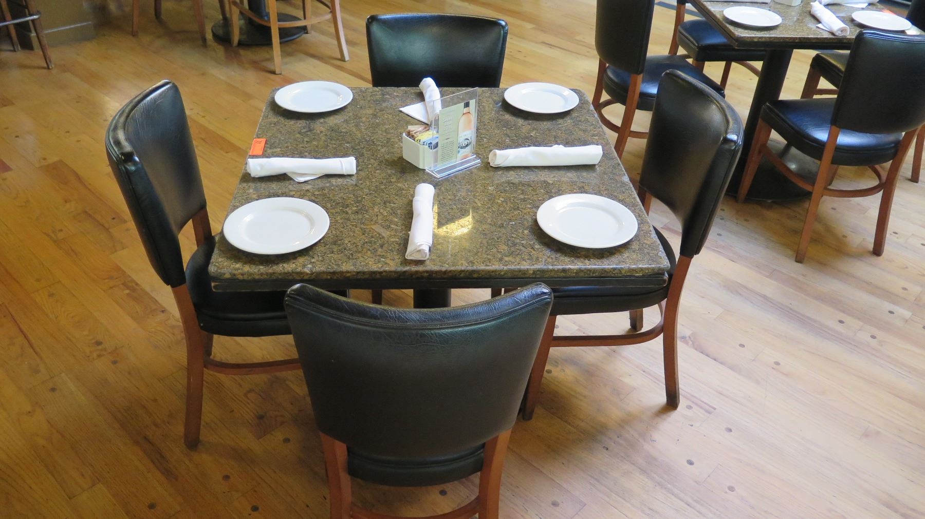 Square Granite Table w/Round Metal Base (35" x 35"), 4 Chairs