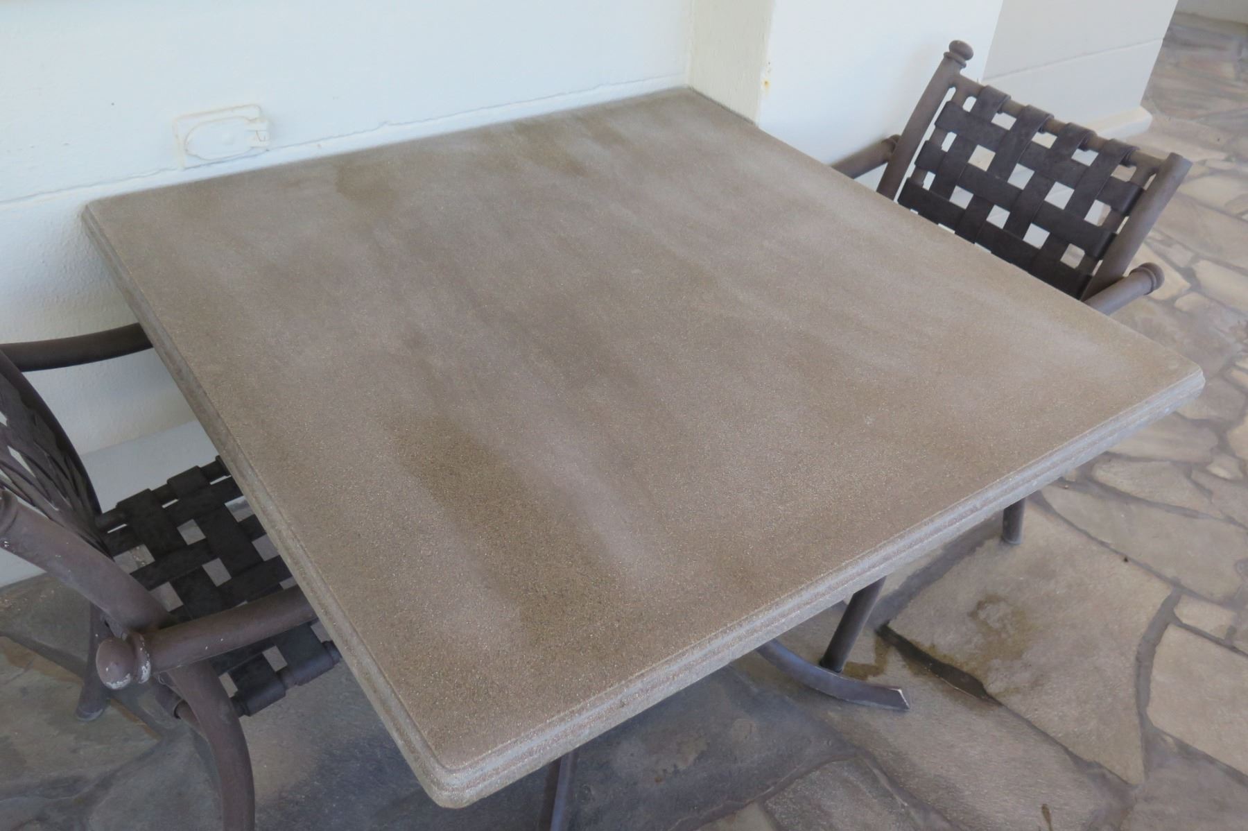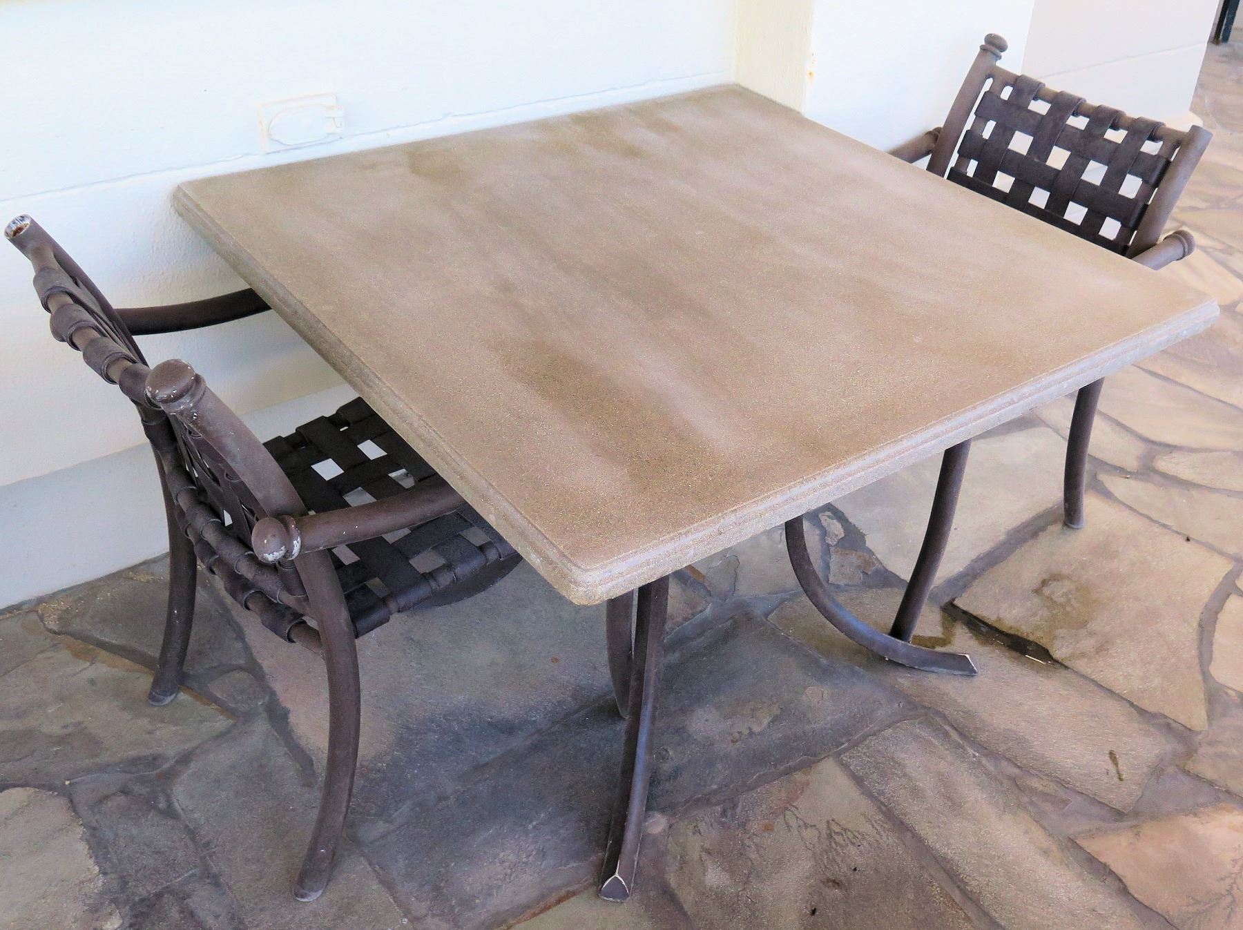 Square Hard Surface Patio Table w/ Metal Base (41"x41"x29"H) & 2 Metal Chairs