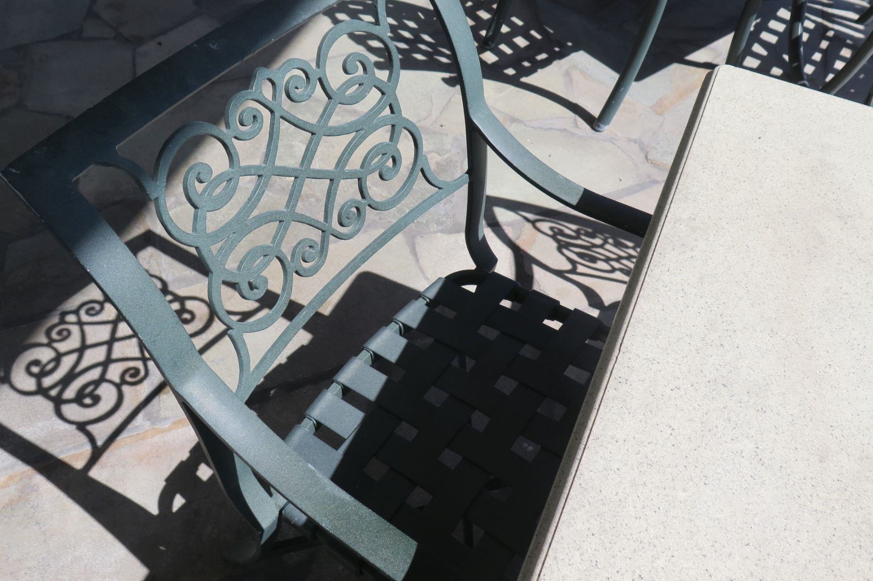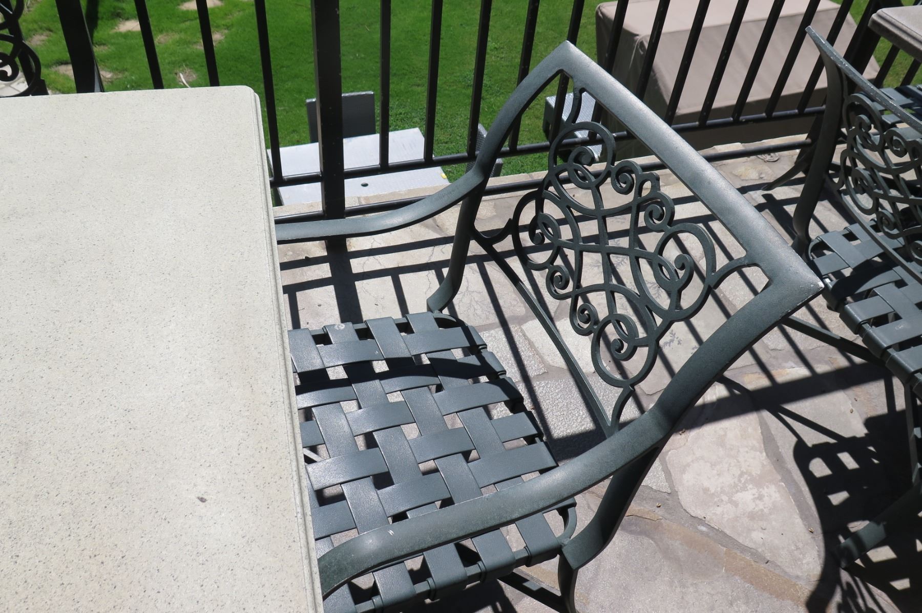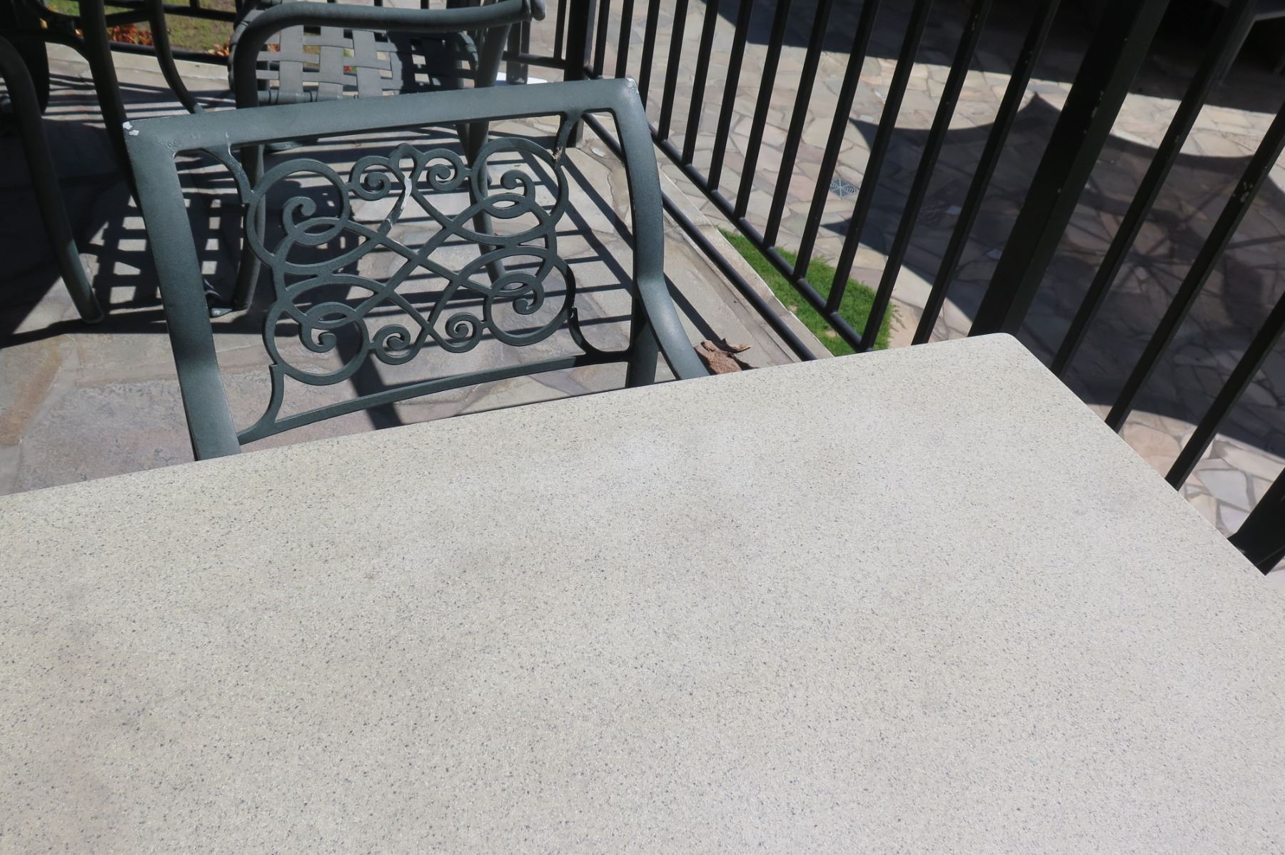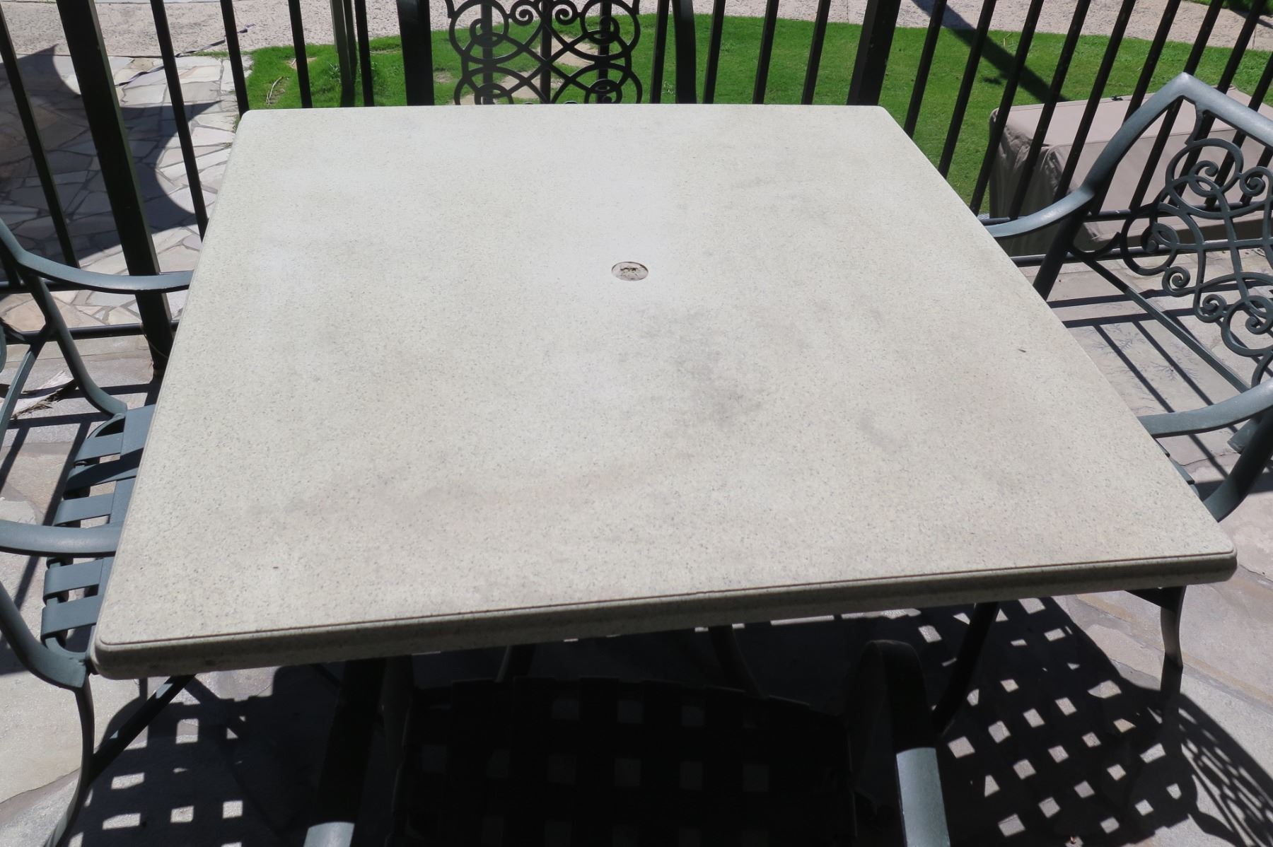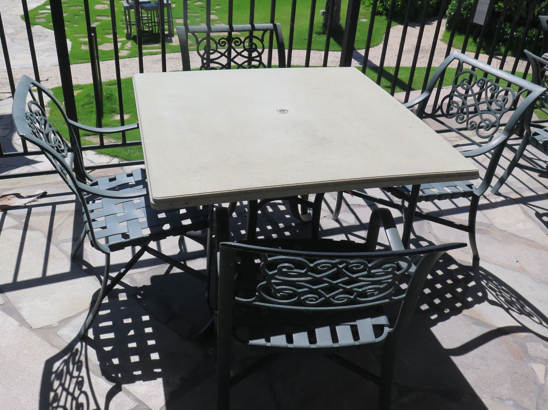 Square Hard Surface Patio Table w/ Metal Base (41 x41 x29 H) & 4 Metal Chairs