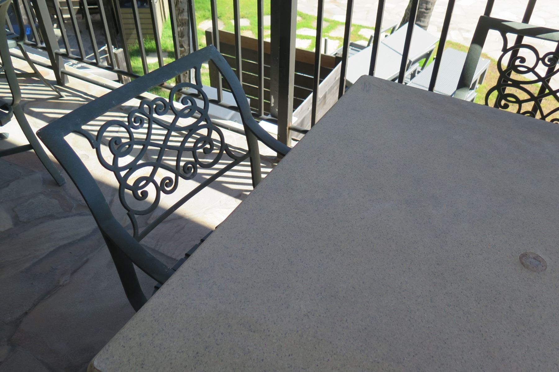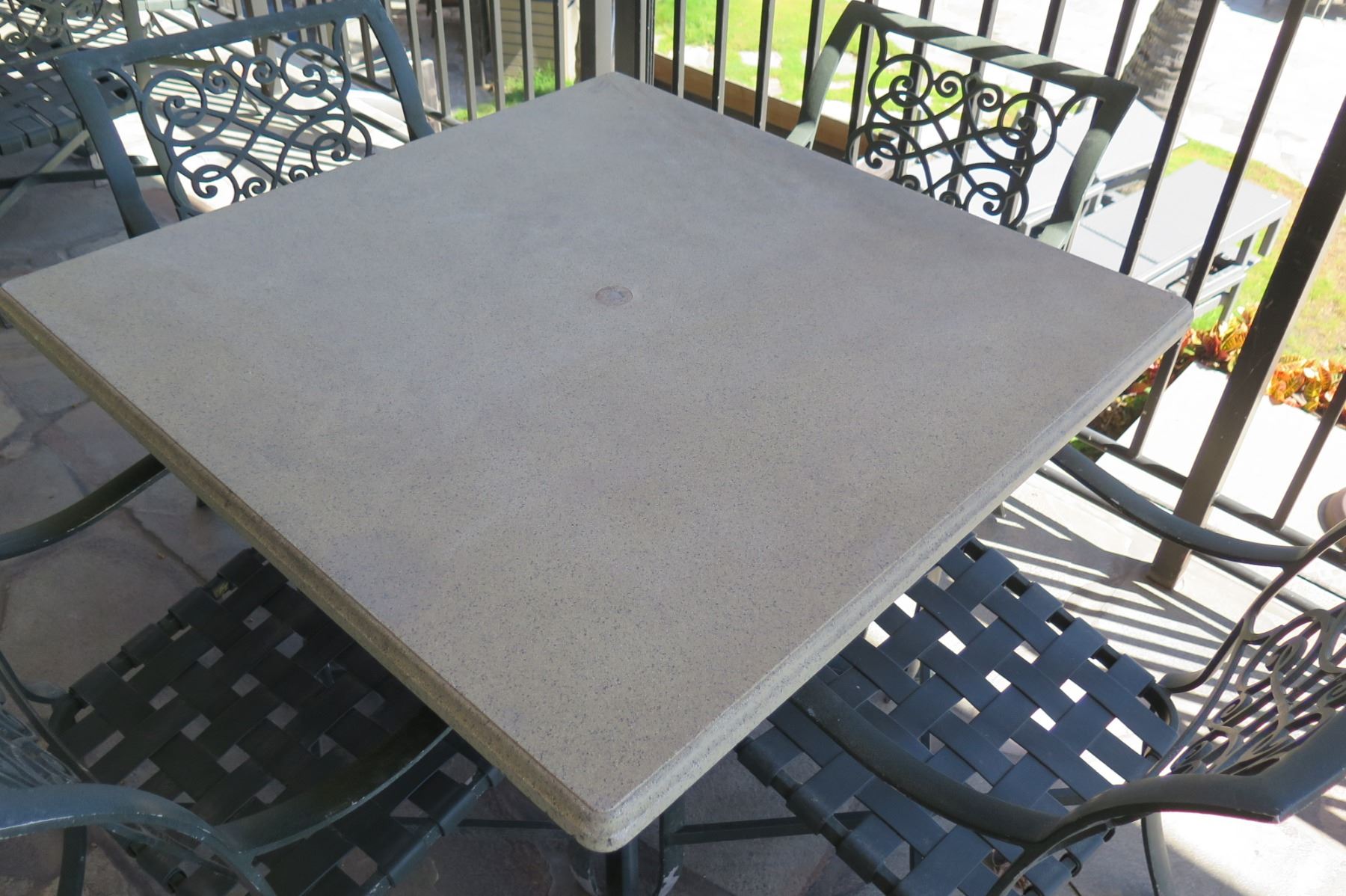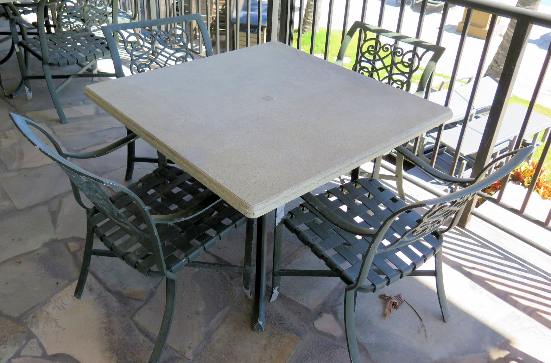 Square Hard Surface Patio Table w/ Metal Base (41"x41"x29"H) & 4 Metal Chairs