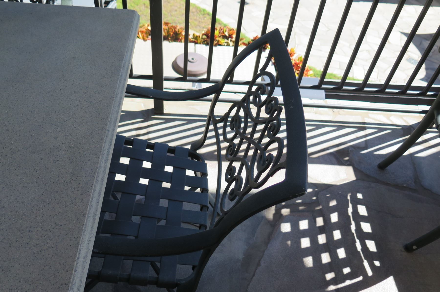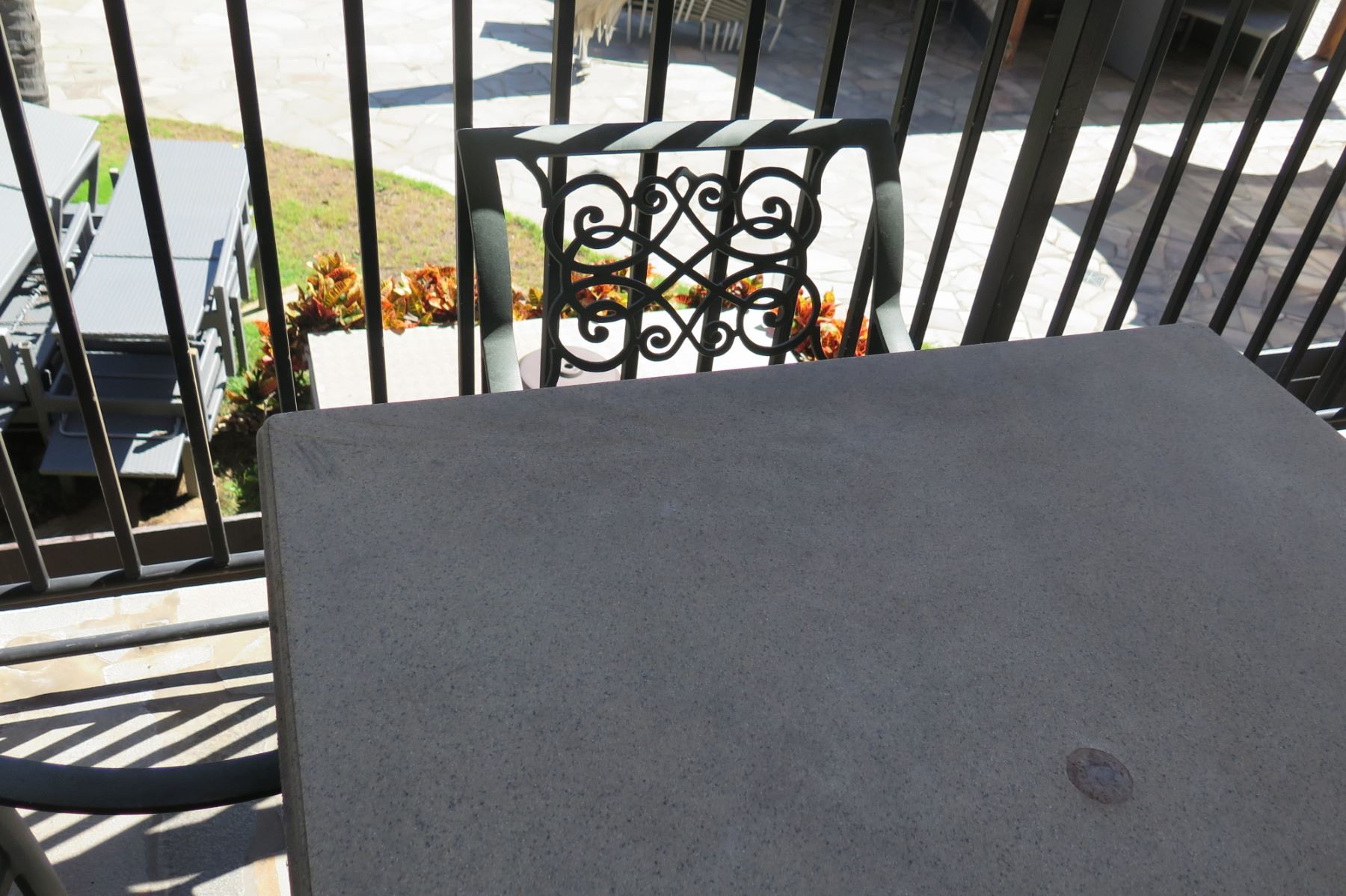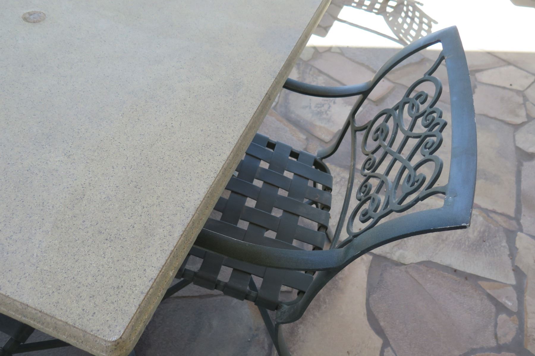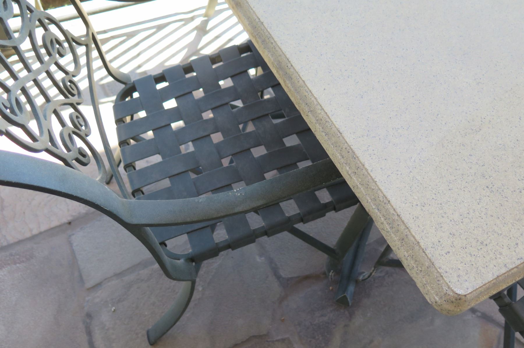 Square Hard Surface Patio Table w/ Metal Base (41"x41"x29"H) & 4 Metal Chairs