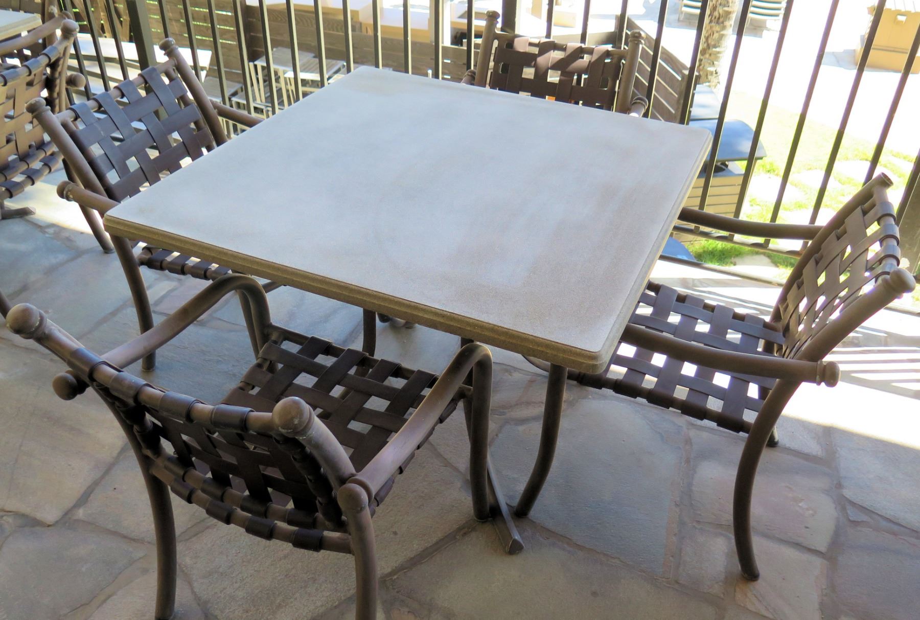 Square Hard Surface Patio Table w/ Metal Base (41 x41 x29 H) & 4 Metal Chairs
