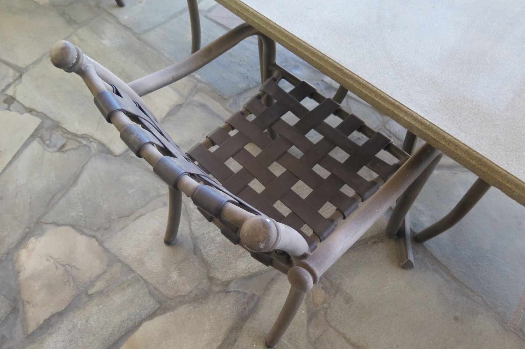Square Hard Surface Patio Table w/ Metal Base (41"x41"x29"H) & 4 Metal Chairs