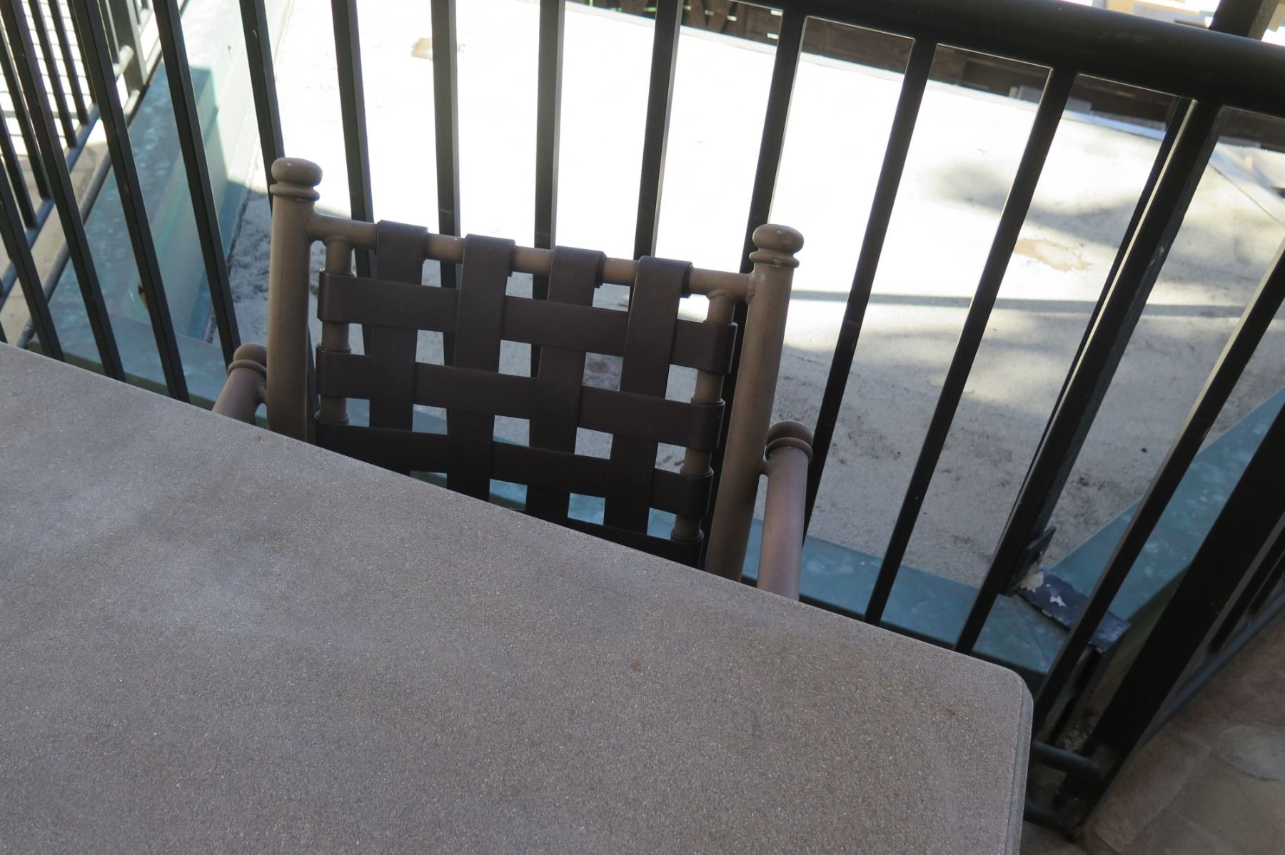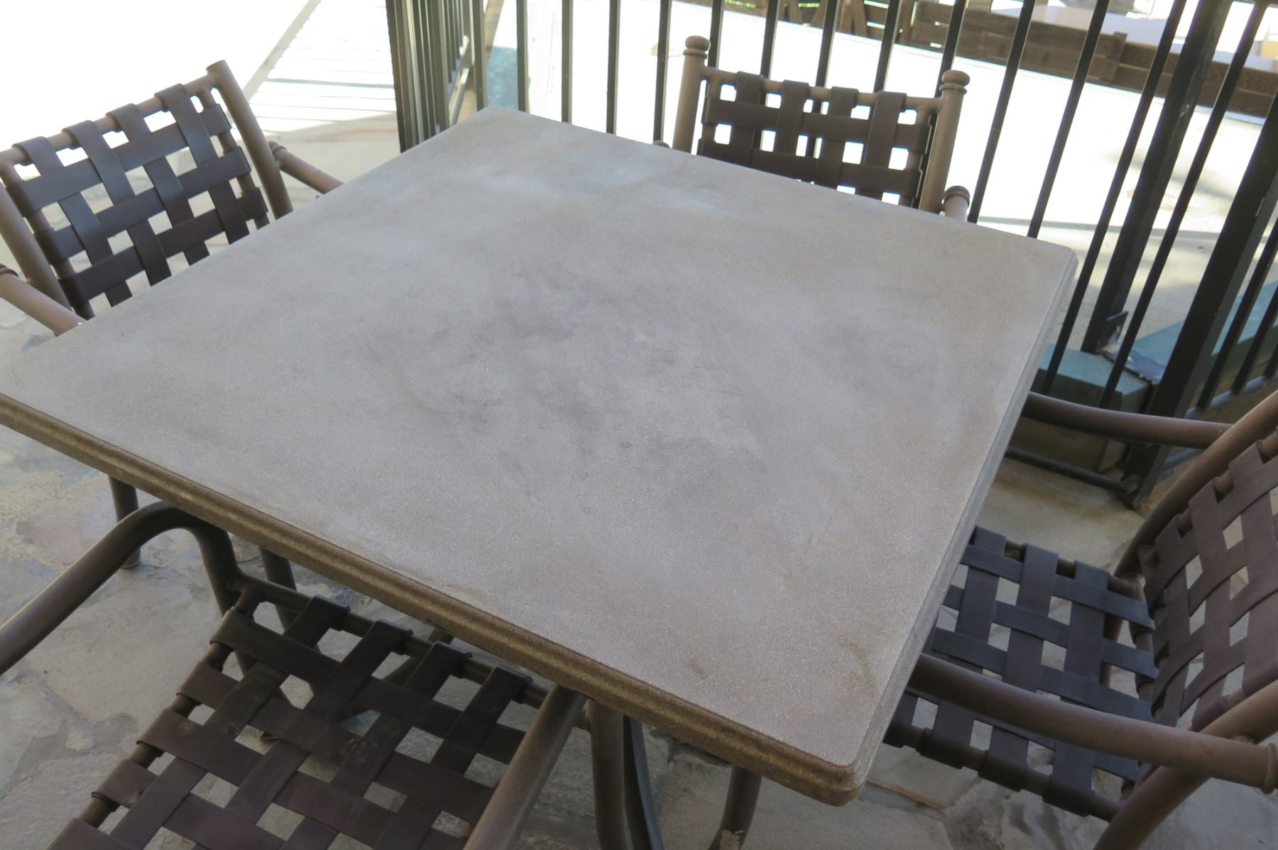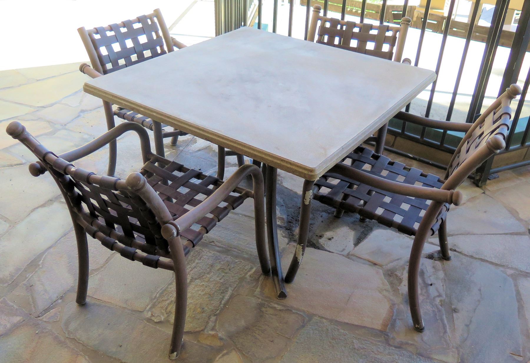 Square Hard Surface Patio Table w/ Metal Base (41"x41"x29"H) & 4 Metal Chairs