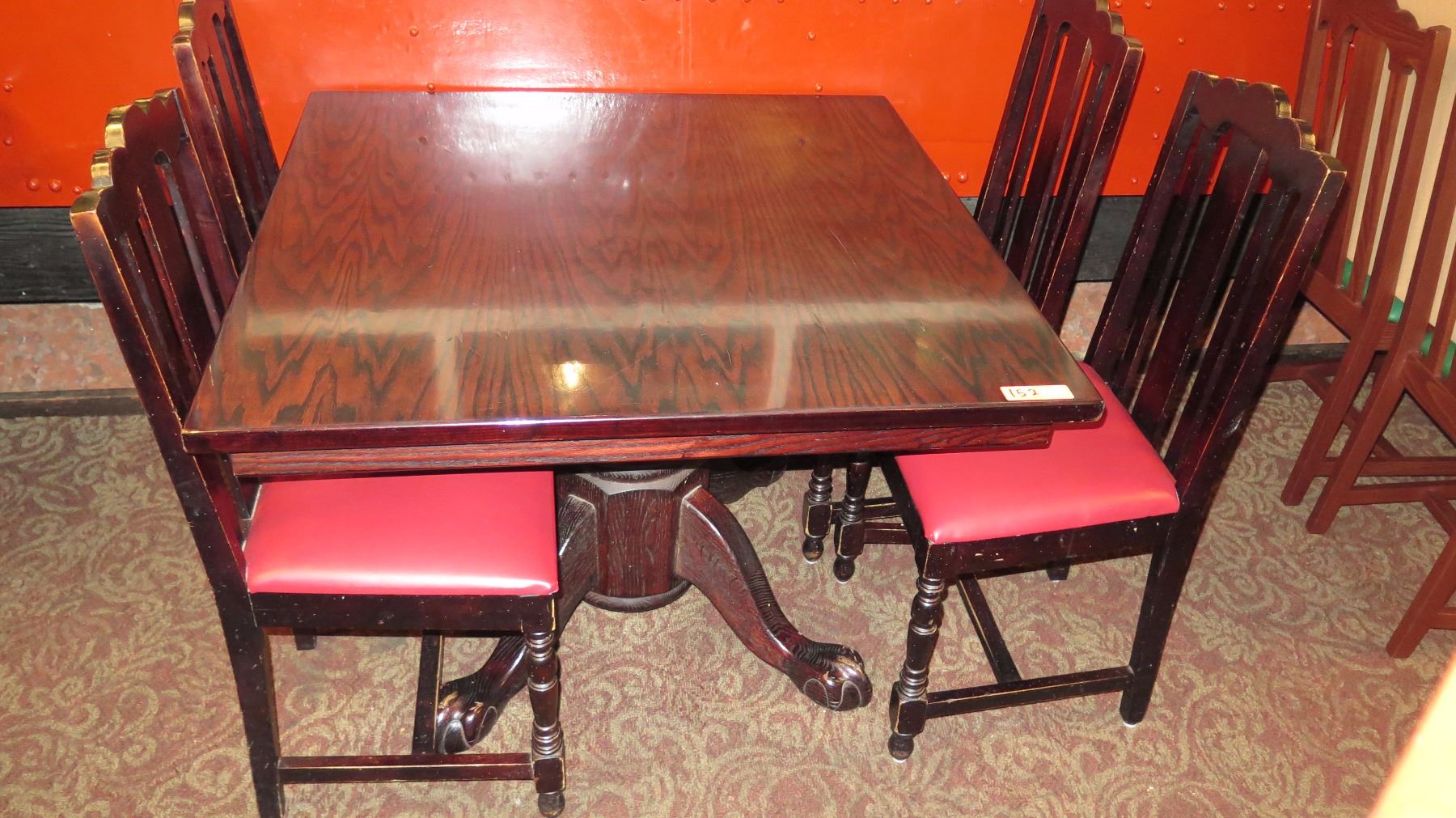 Square Hardwood Table (42x42) w/Carved Pedestal Base & Clawfoot Detail, 4 Chairs