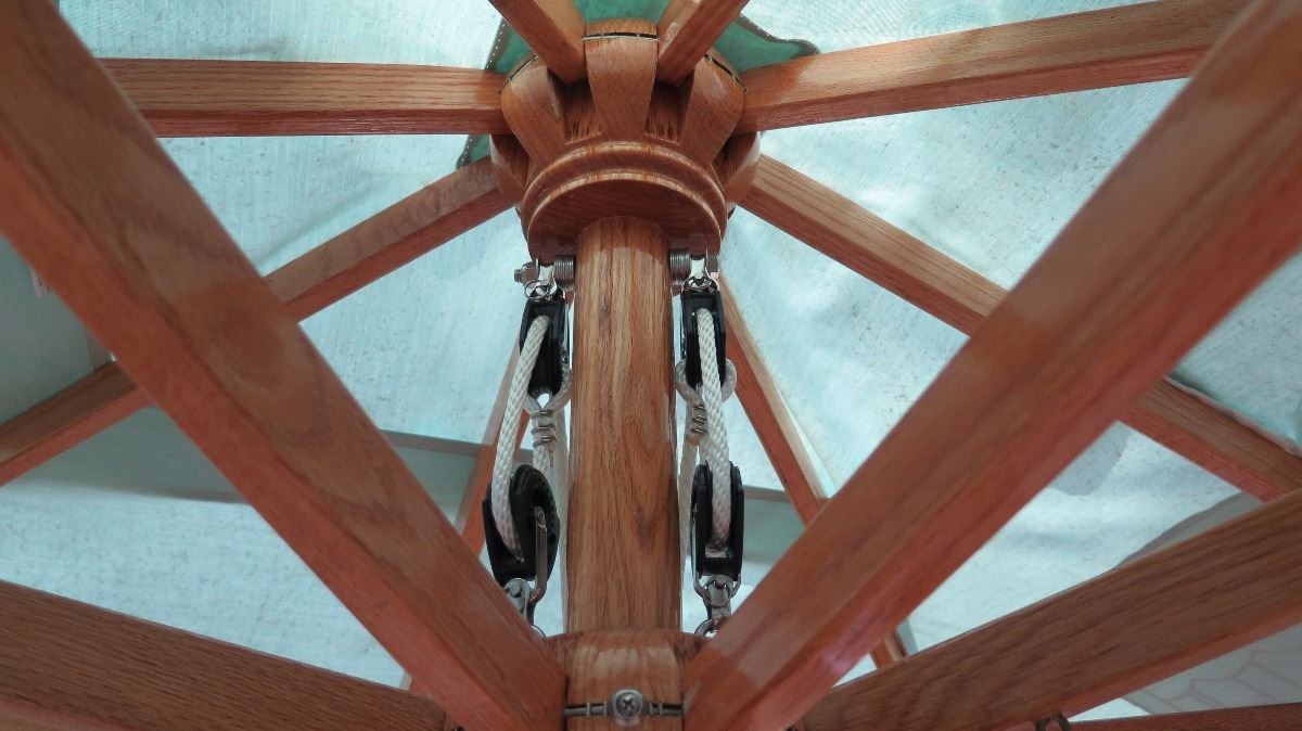 Square Lt Blue Canvas Patio Umbrella w/ Solid Stand, Solid Oak Frame, Pulley System, Granite Base