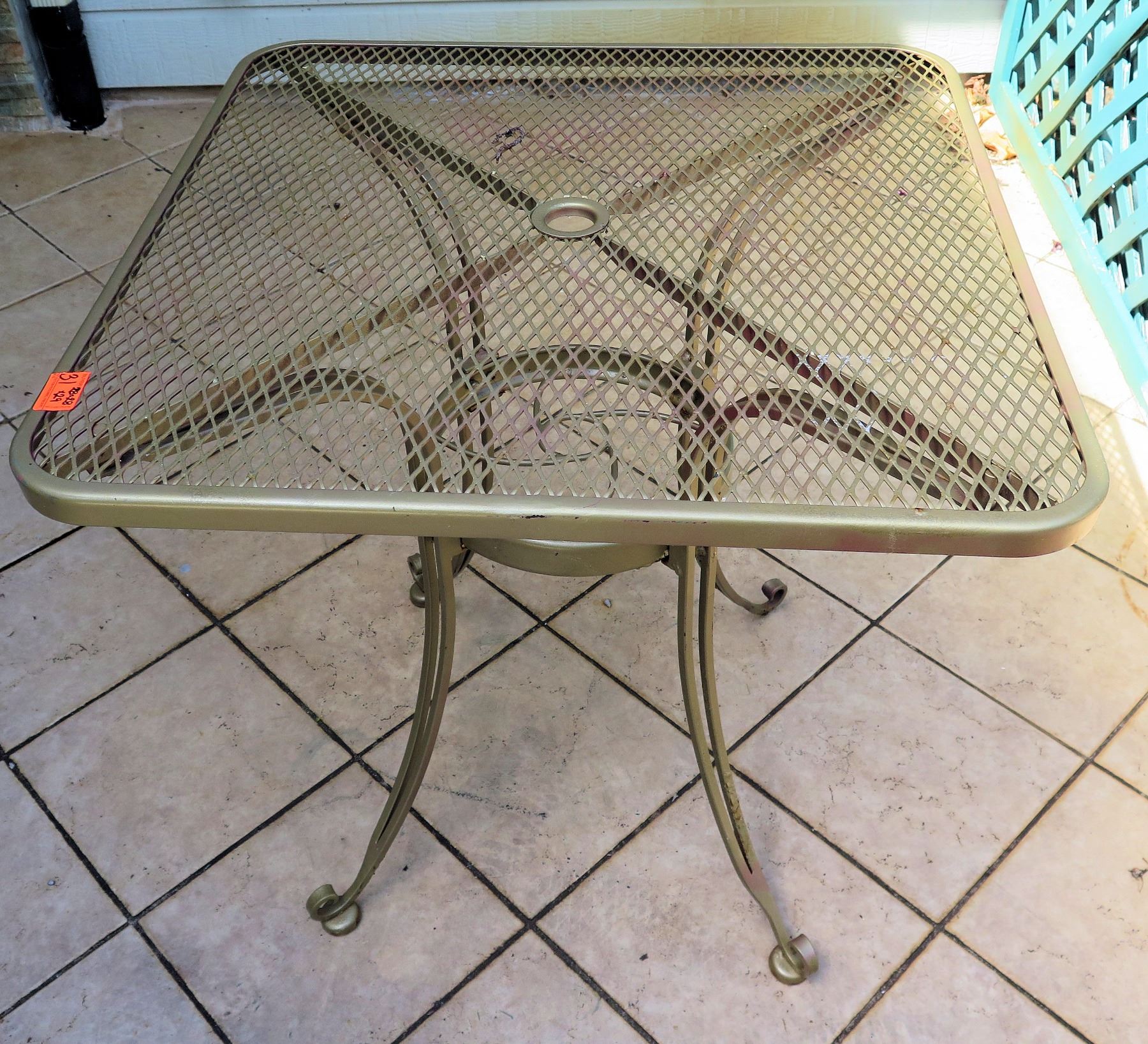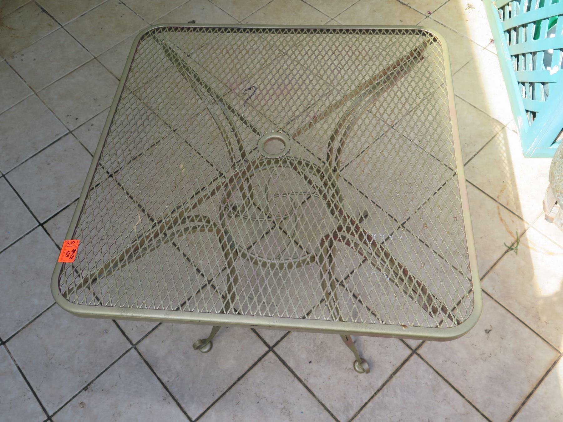 Square Metal Mesh Table w/ Umbrella Hole in Center 28"x28"x29"H