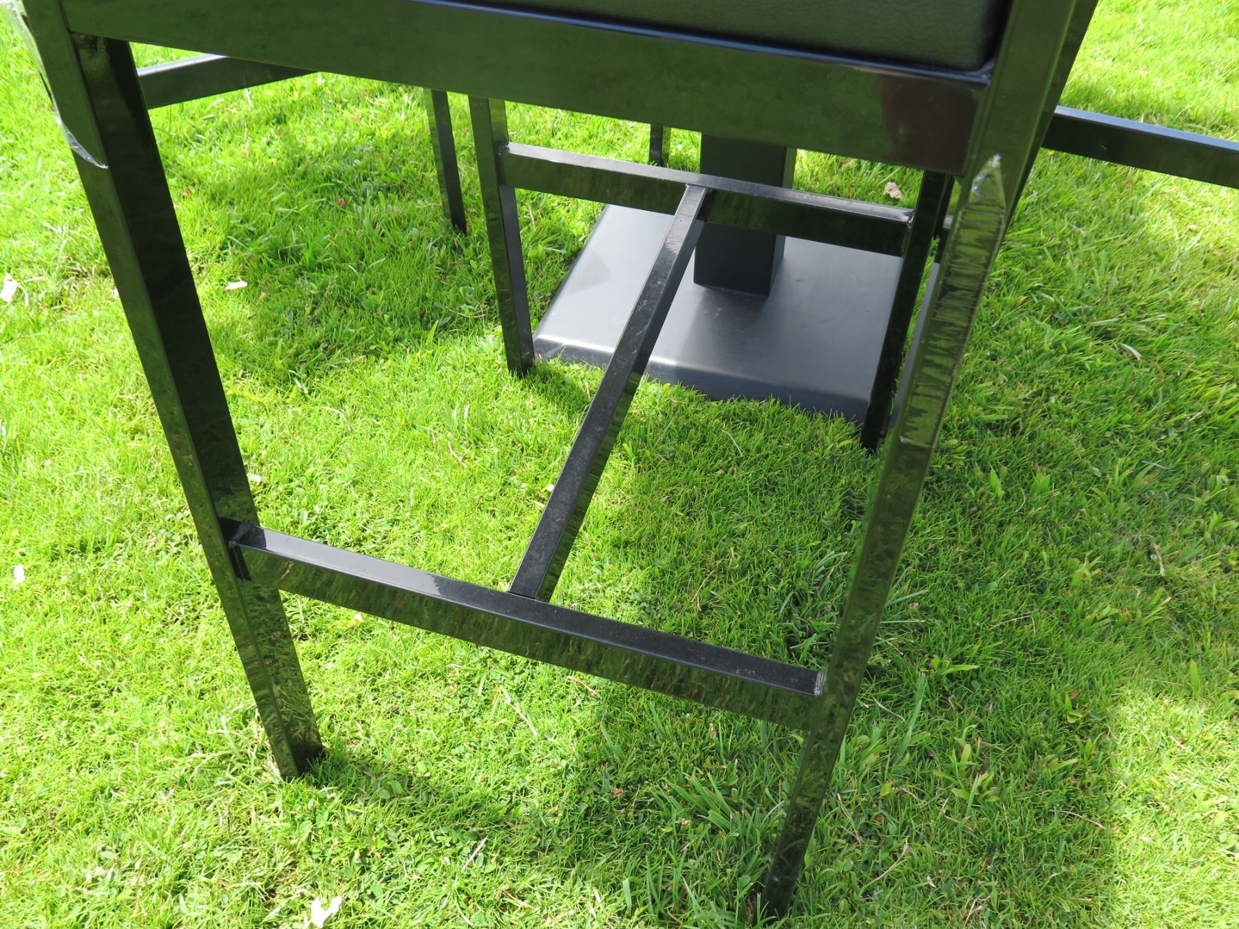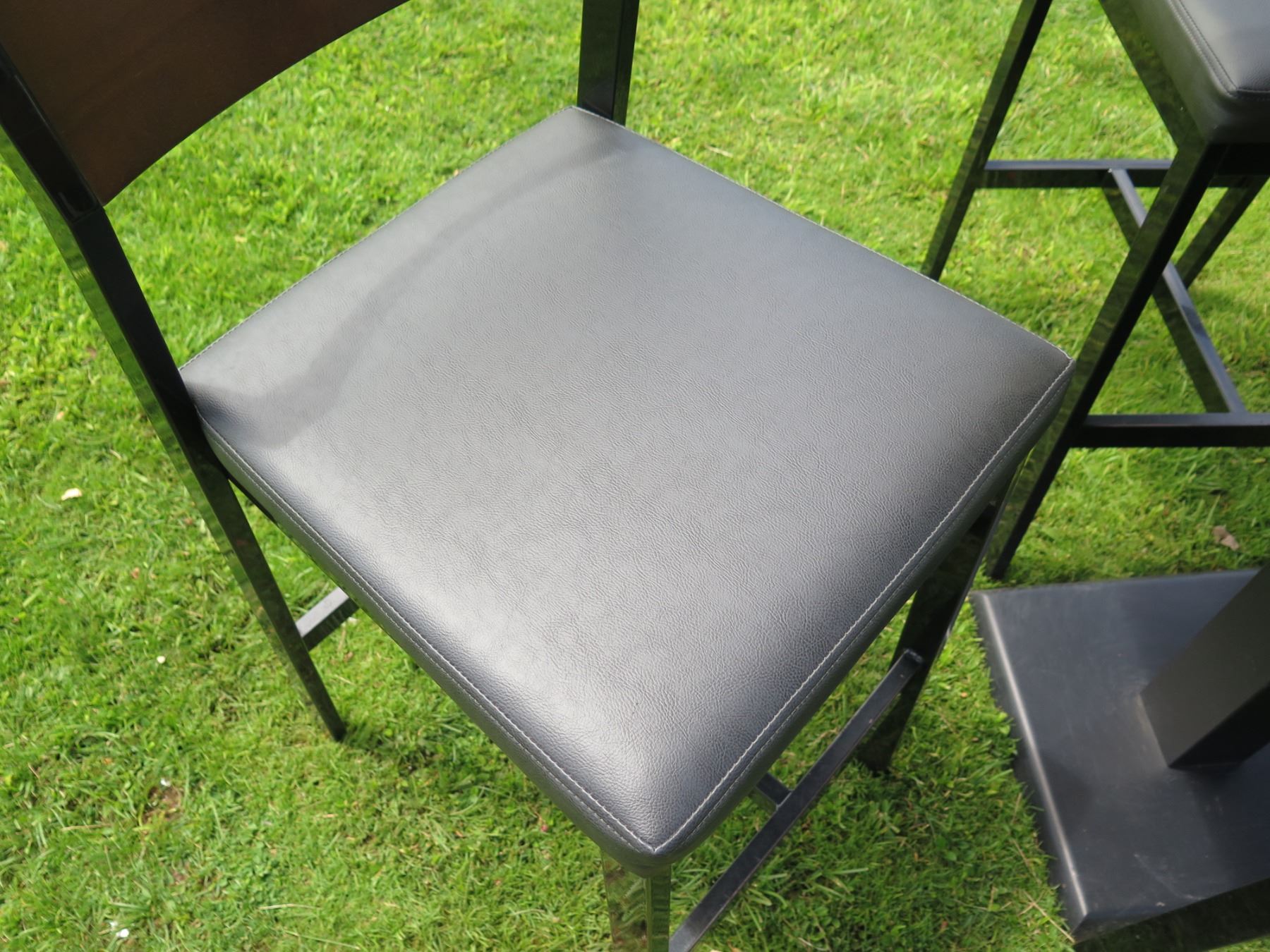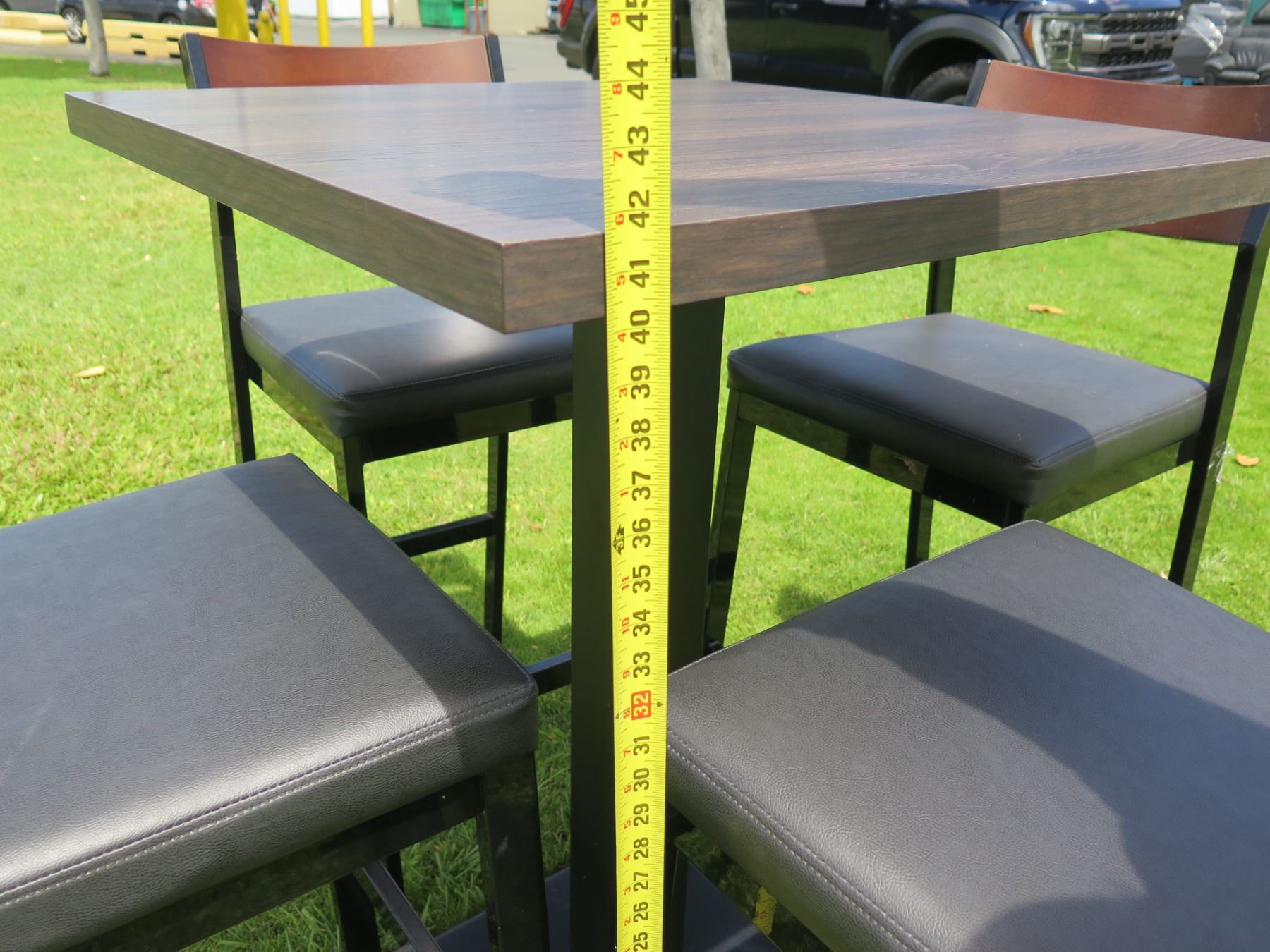 Square Table 30"x30"x42"H w/ Pedestal Base & 4 Upholstered Chairs 17"x18"x43"H