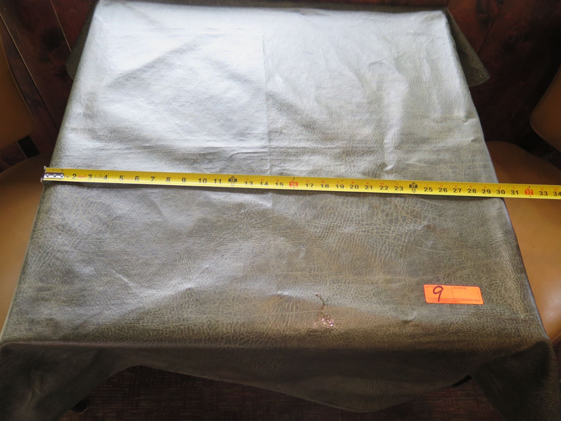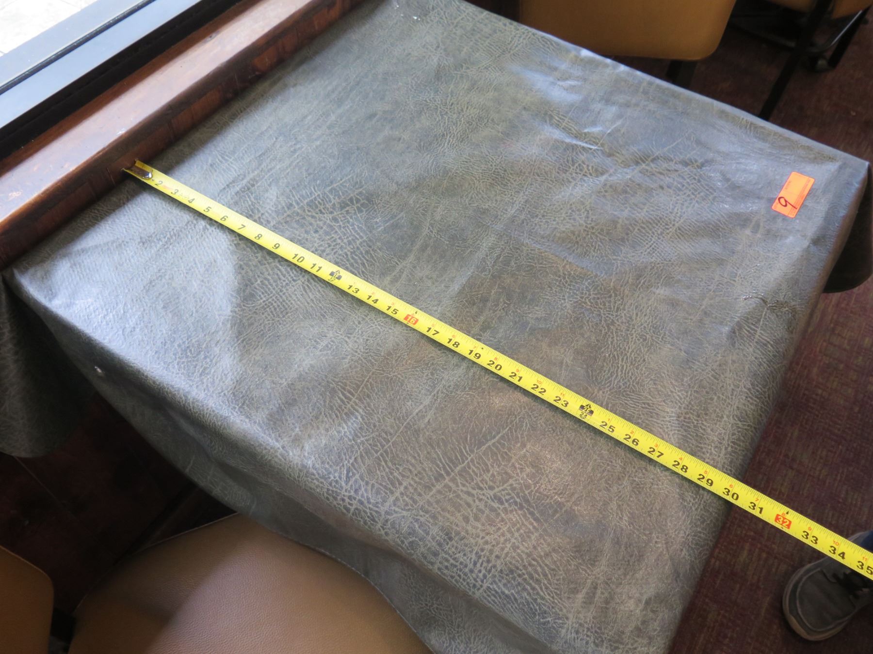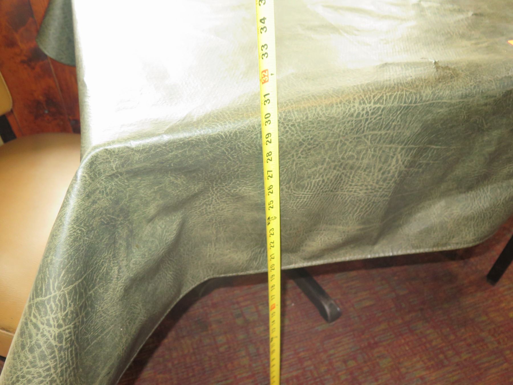 Square Table on Metal Pedestal Base 30"x30"x30"H w/ 2 Chairs 18"x18"x33"H. This is a stock photo, representative of item. Condition may vary.