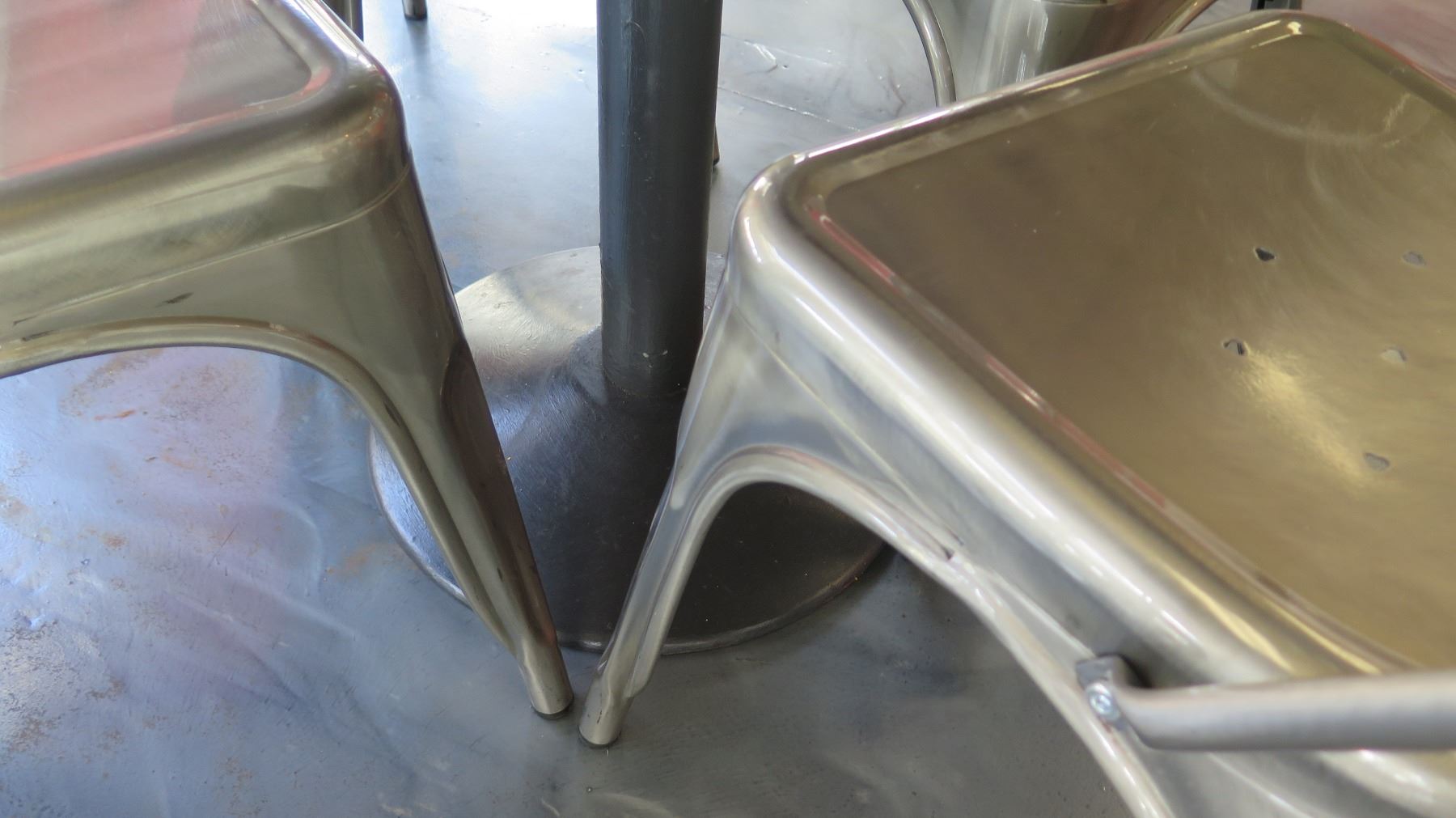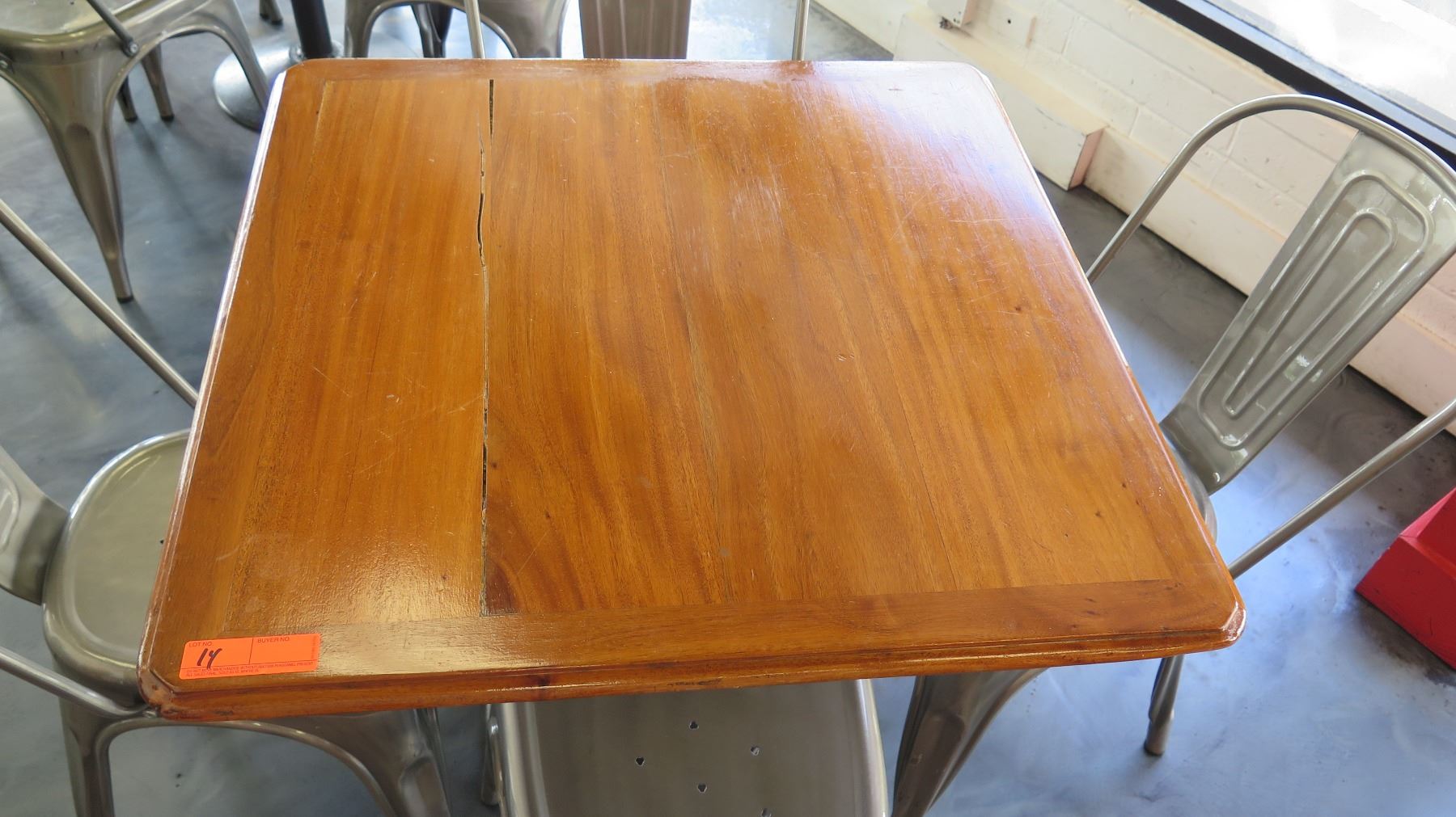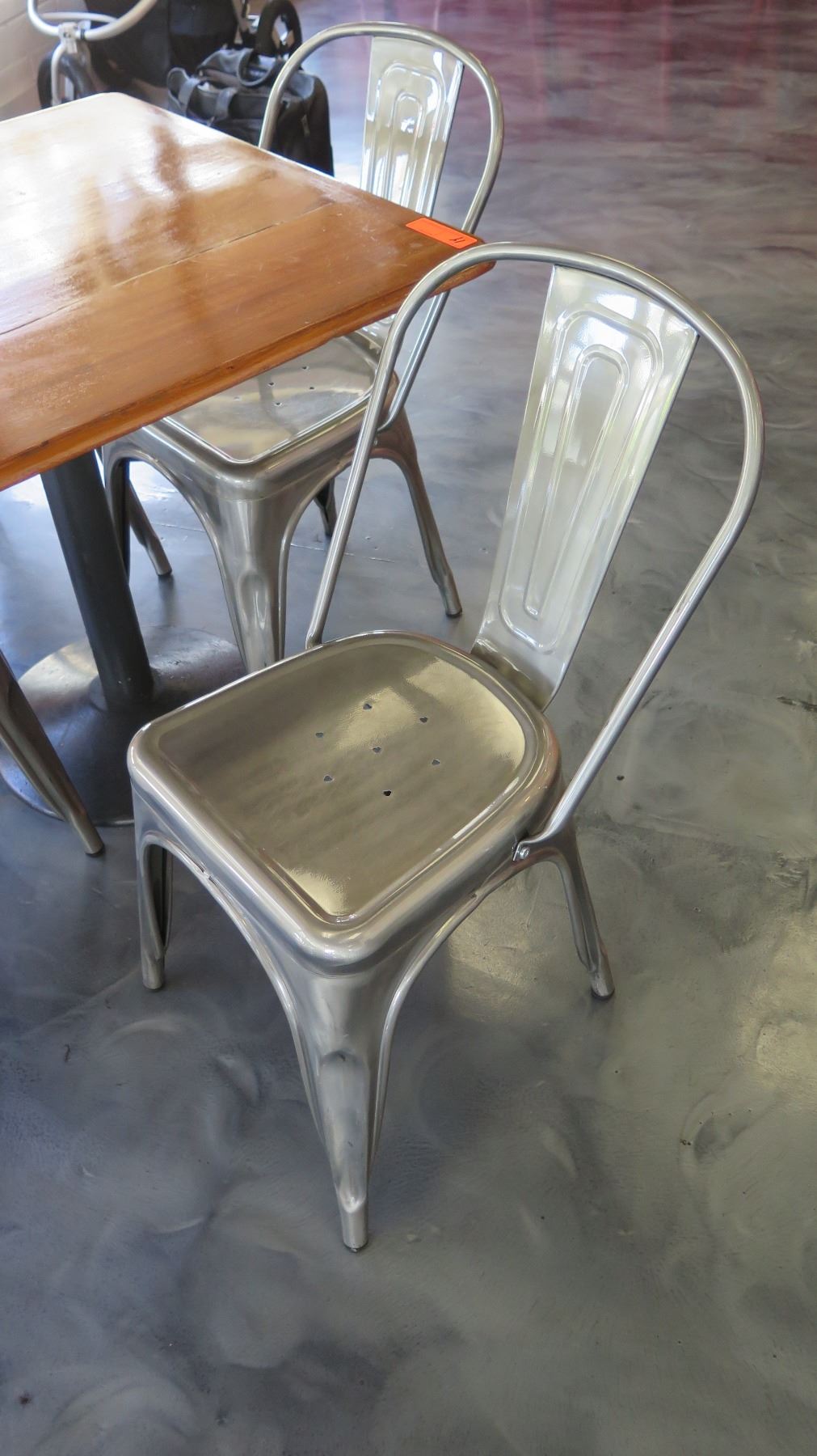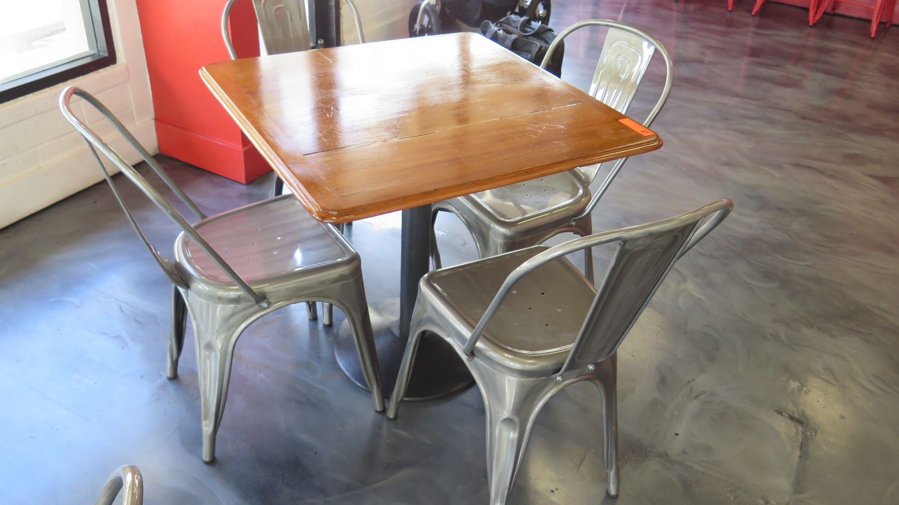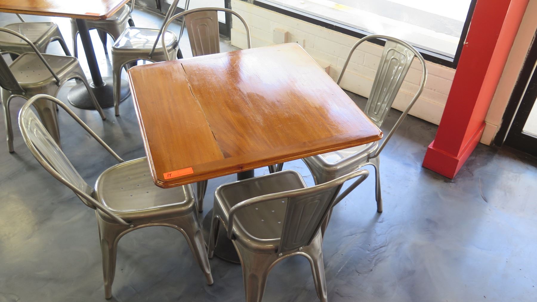 Square Wood Table w/Round Metal Base (35 X 35 X 29 H), 4 Retro Metal Chairs