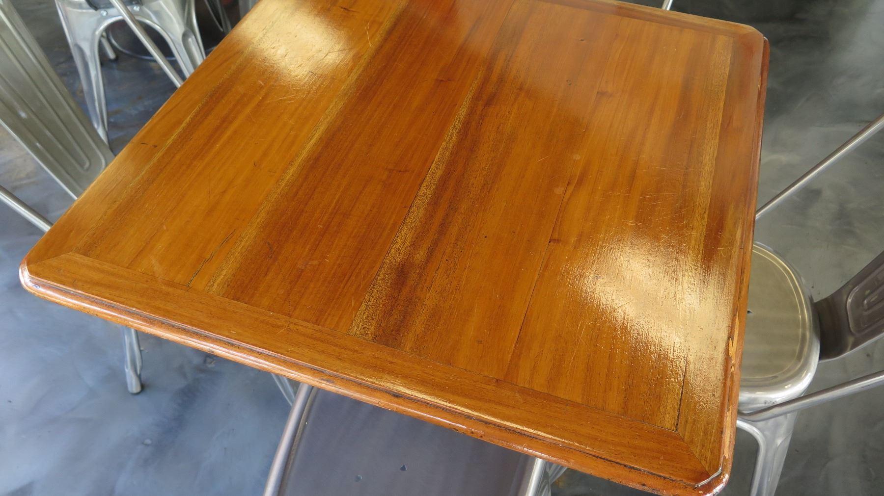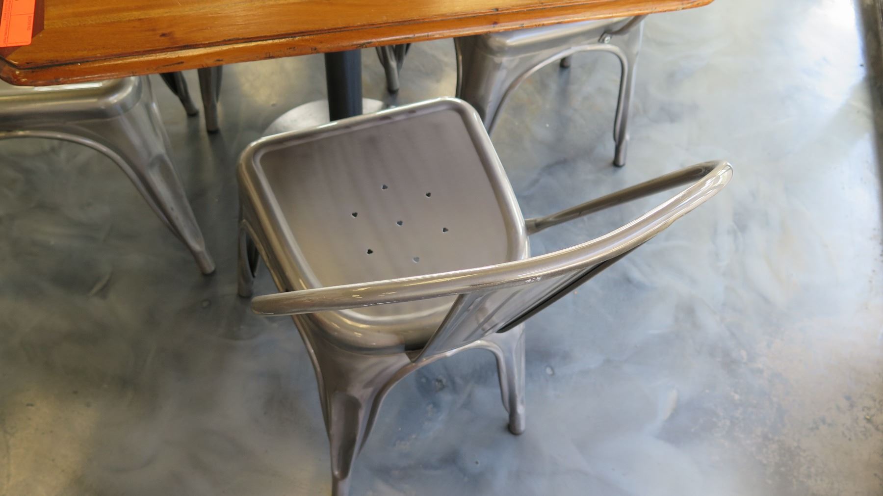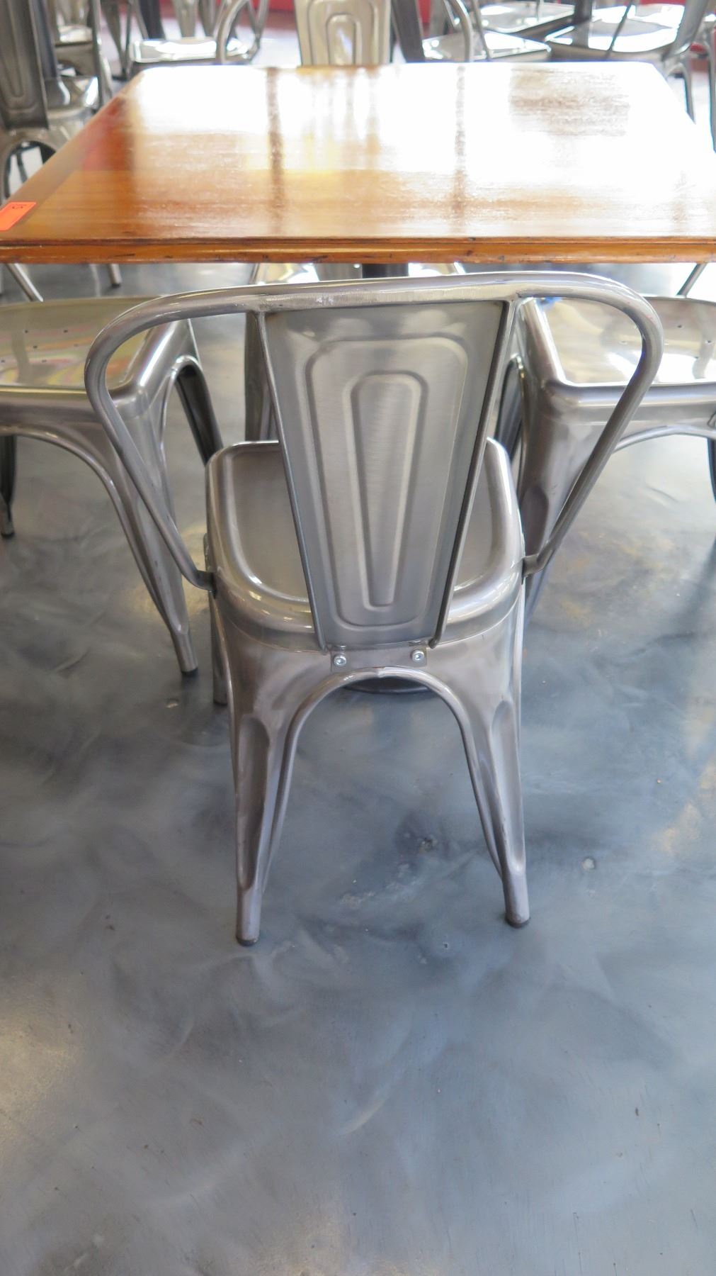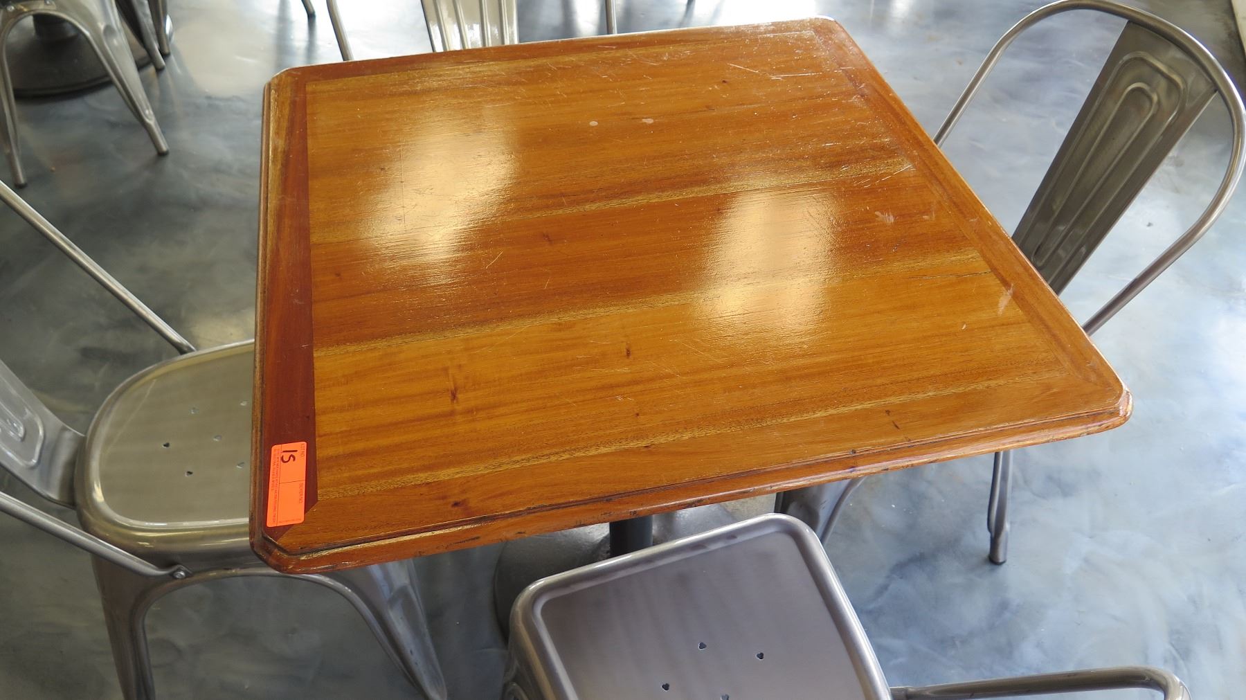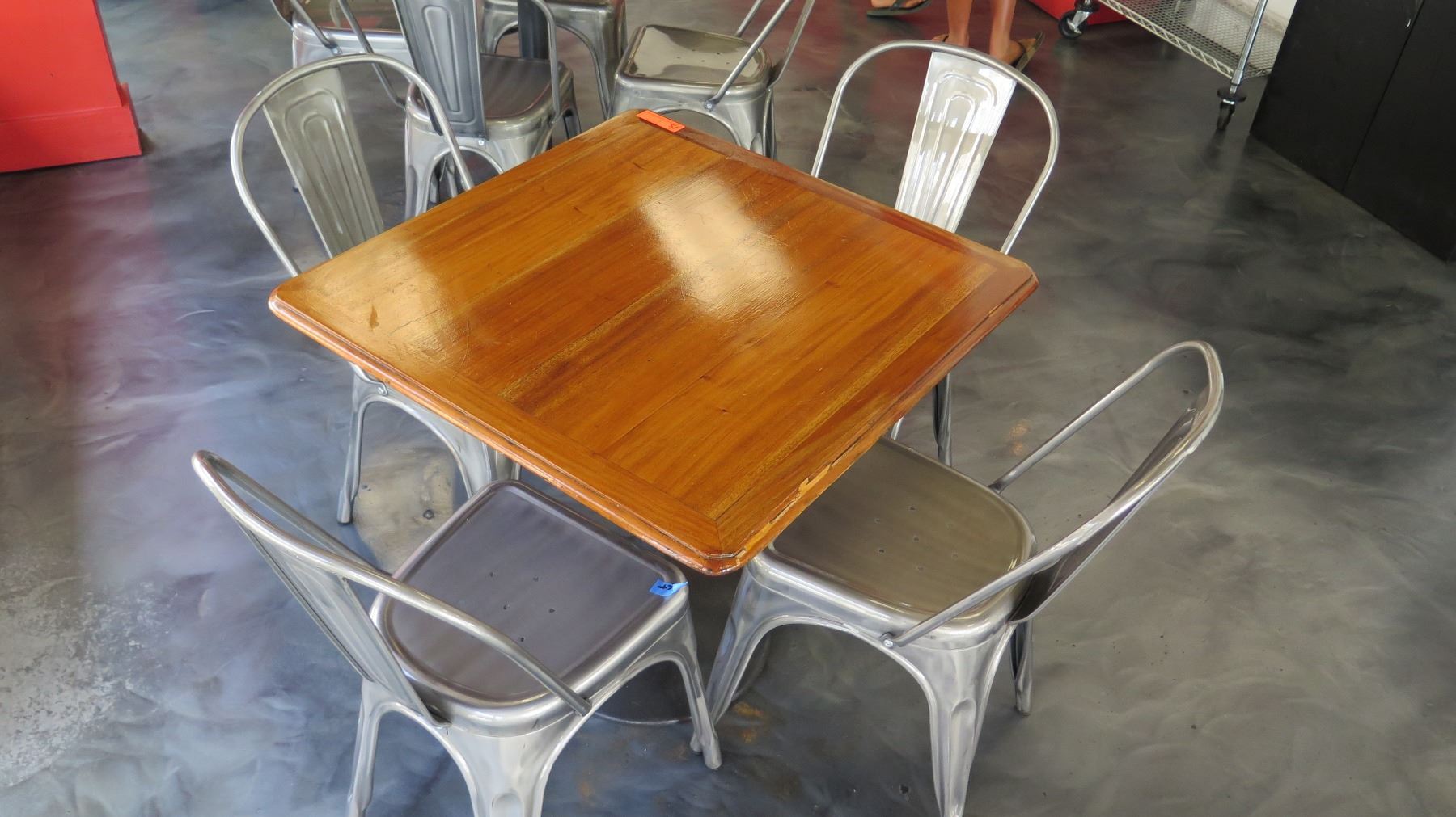 Square Wood Table w/Round Metal Base (35 X 35 X 29 H), 4 Retro Metal Chairs