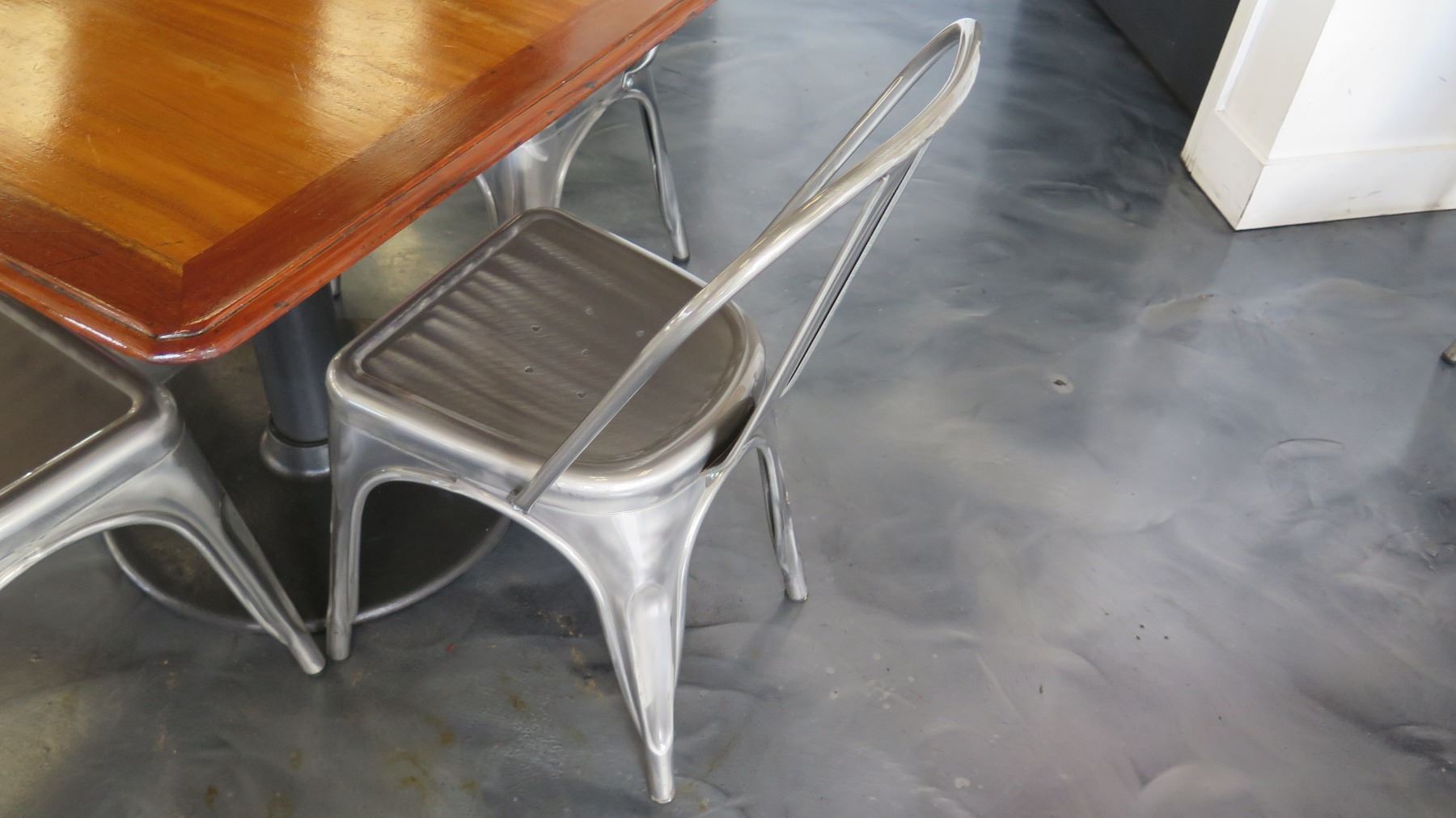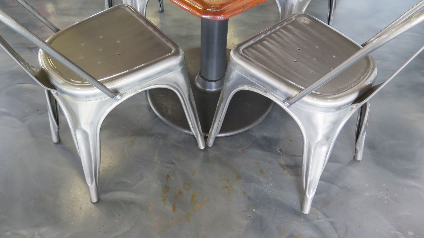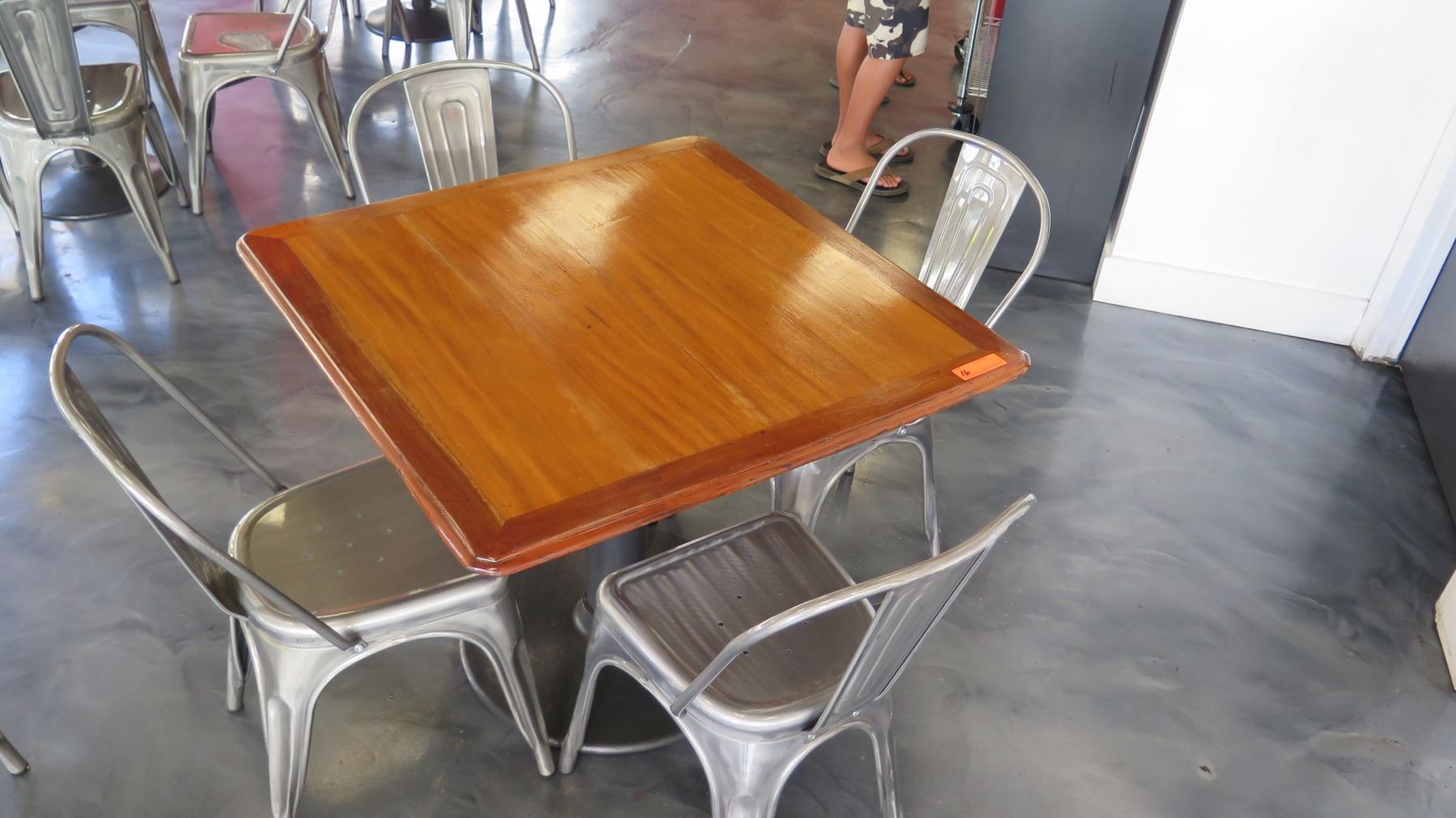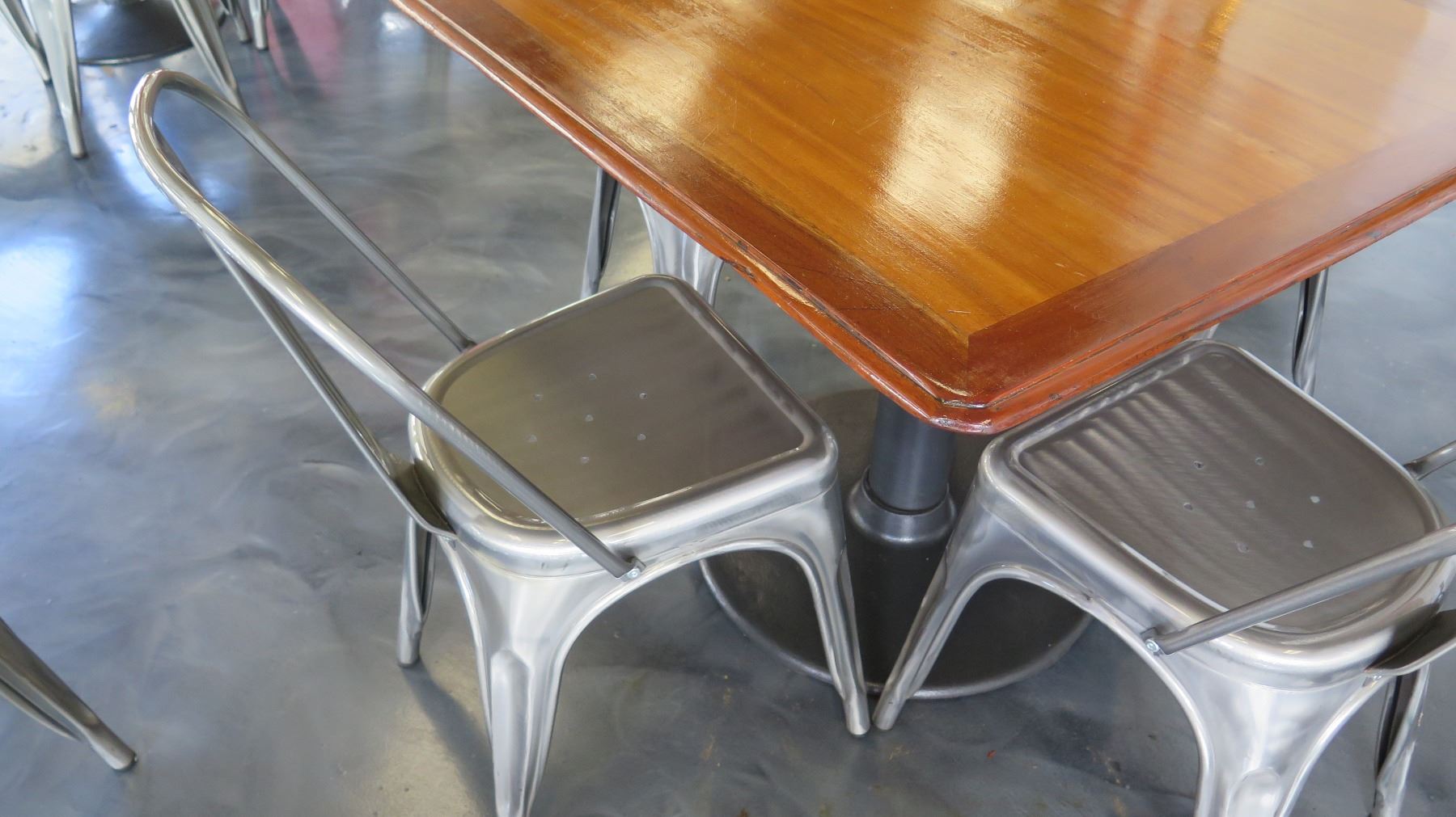 Square Wood Table w/Round Metal Base (35 X 35 X 29 H), 4 Retro Metal Chairs
