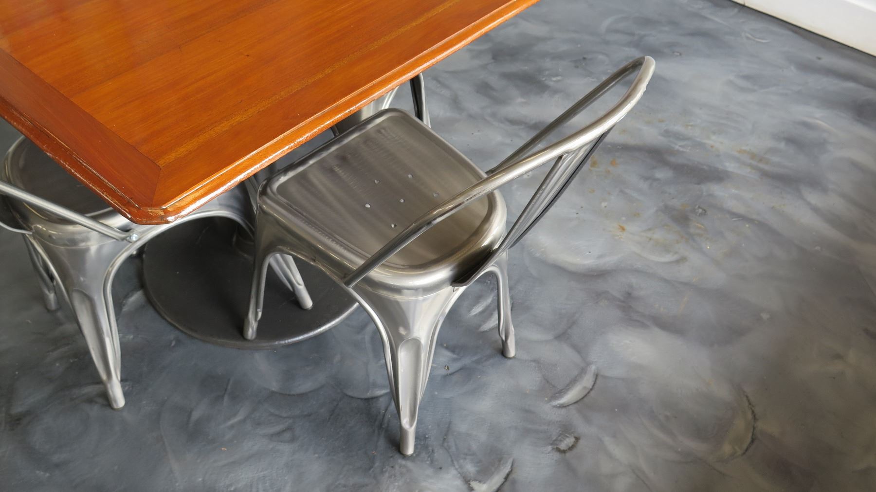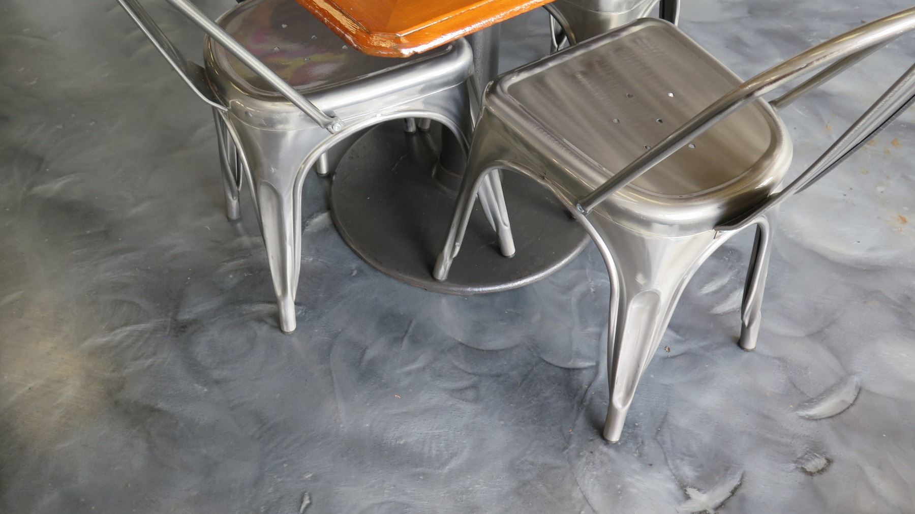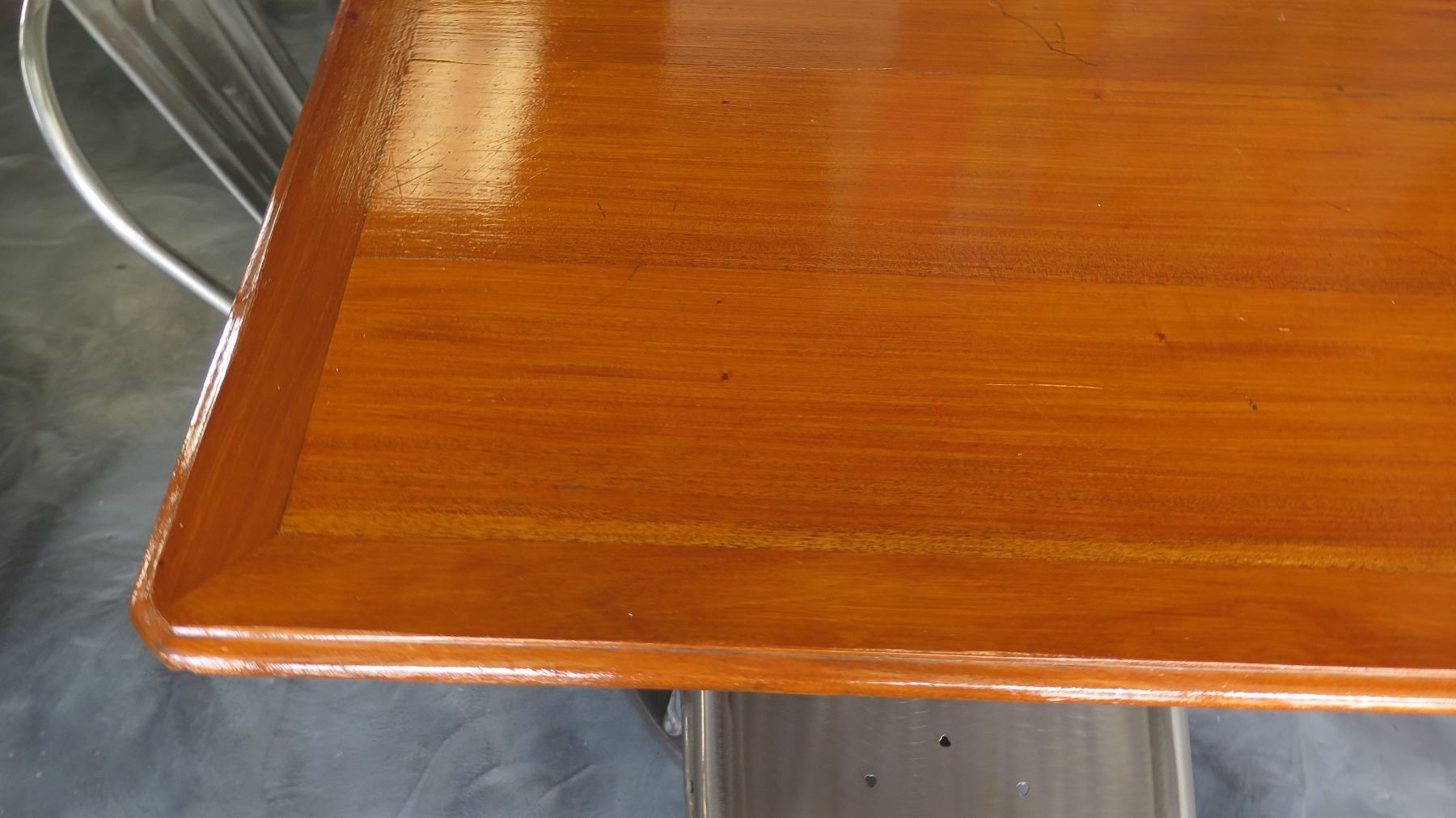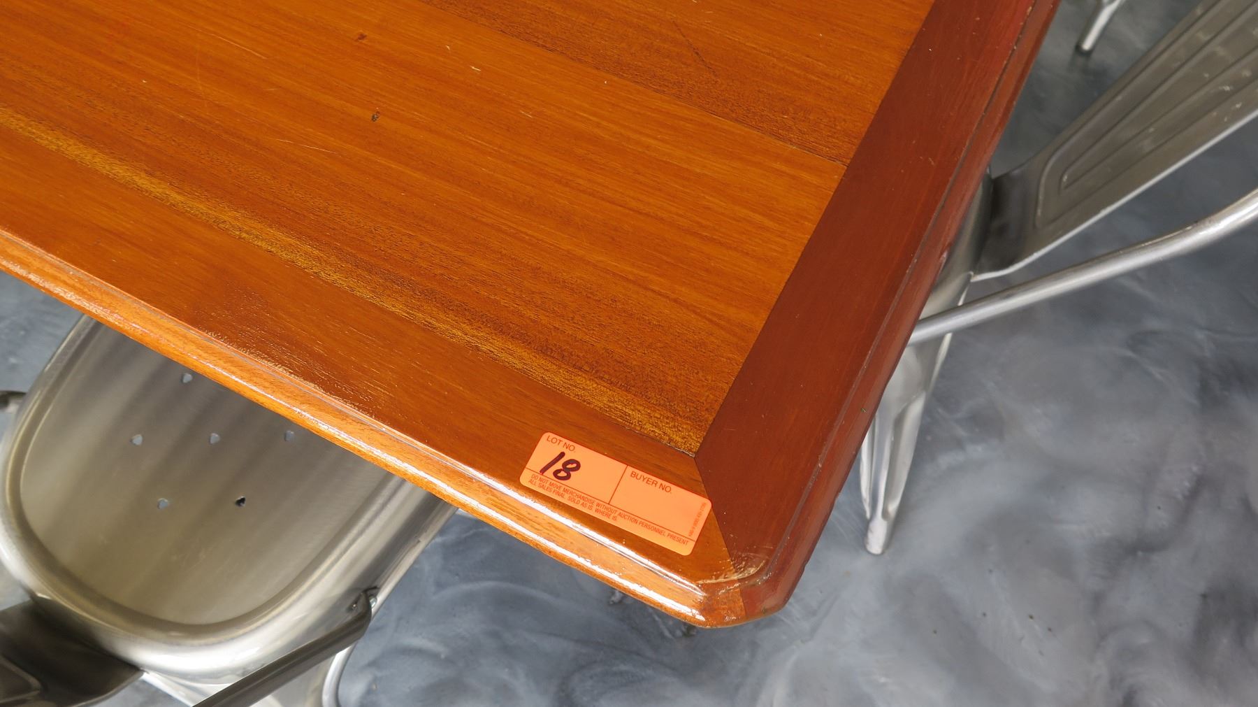 Square Wood Table w/Round Metal Base (35 X 35 X 29 H), 4 Retro Metal Chairs