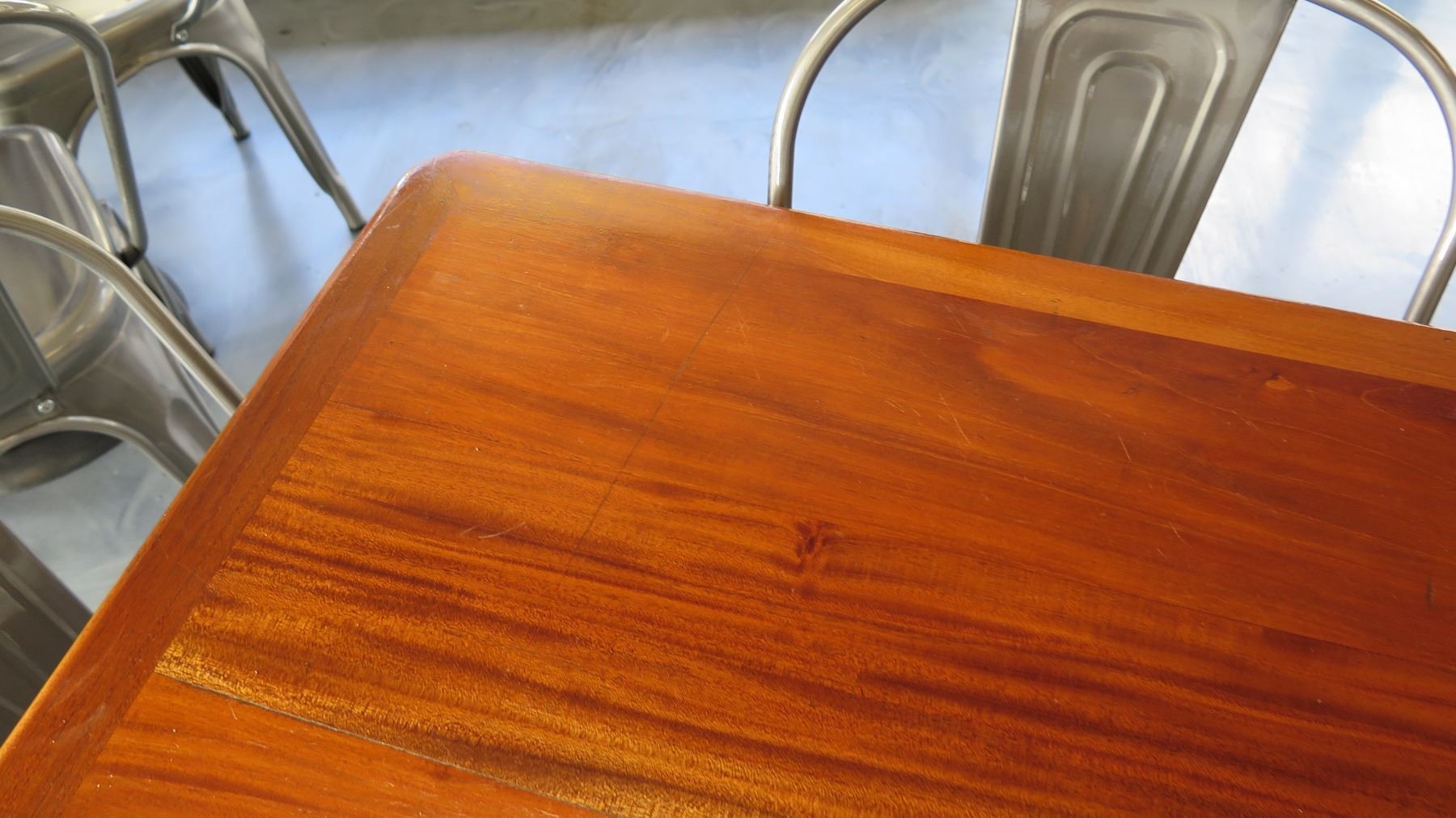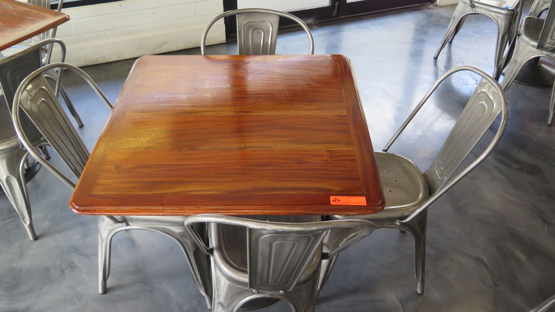 Square Wood Table w/Round Metal Base (35 X 35 X 29 H), 4 Retro Metal Chairs
