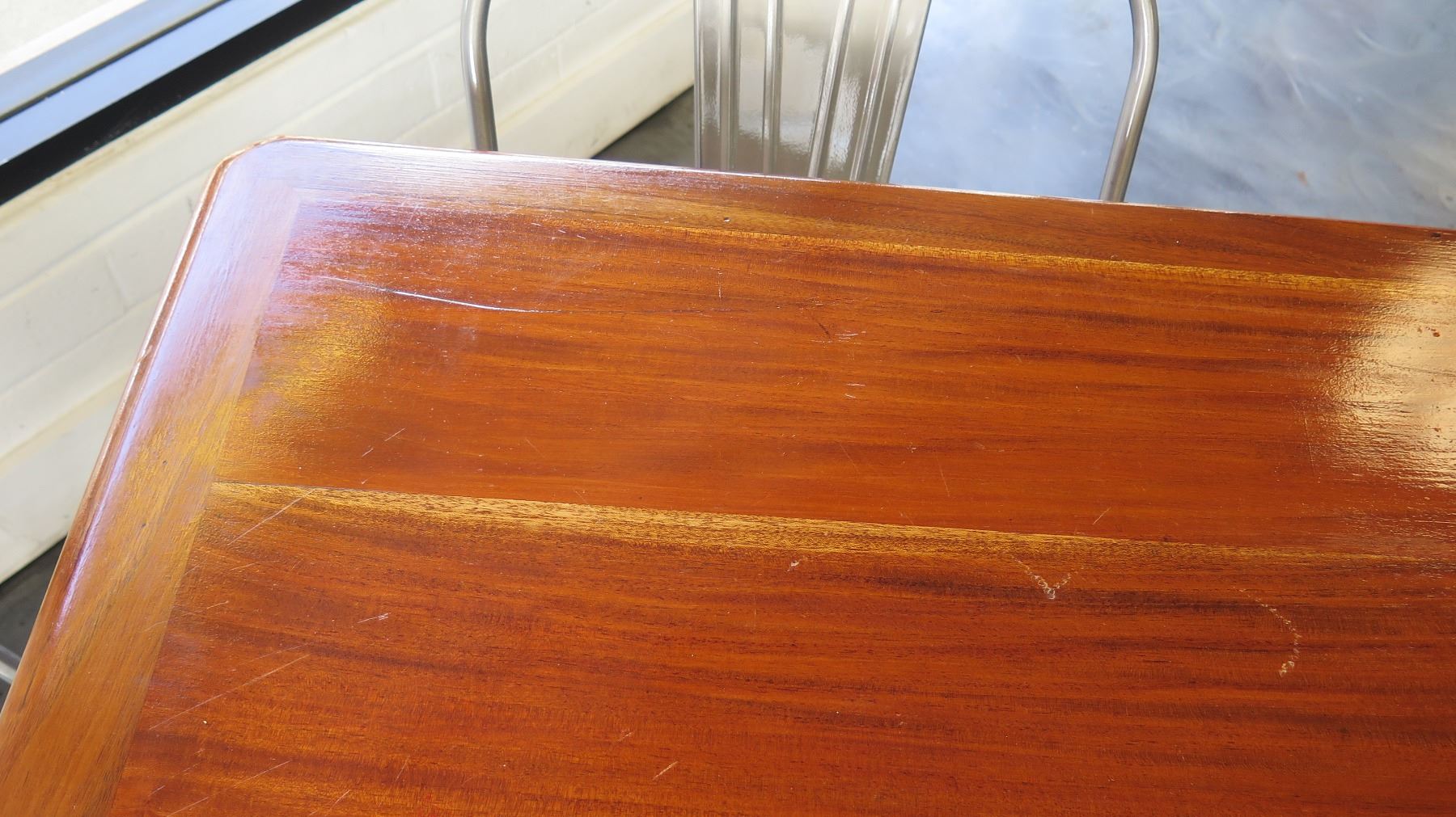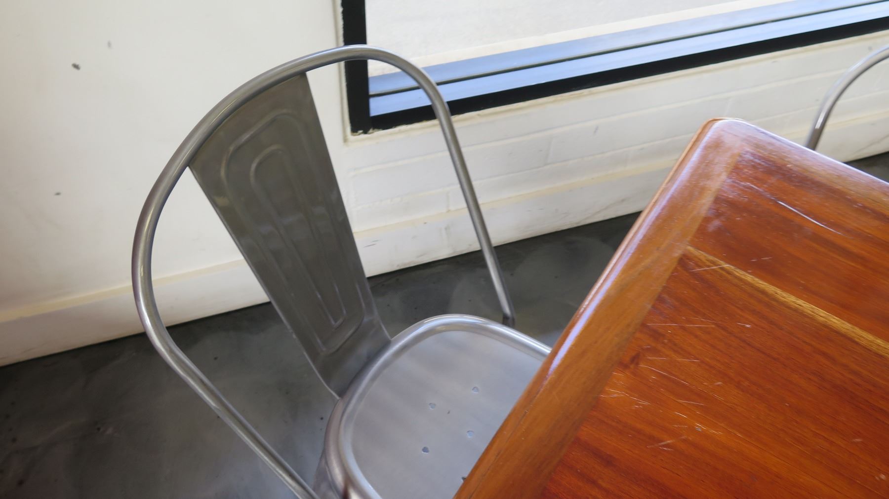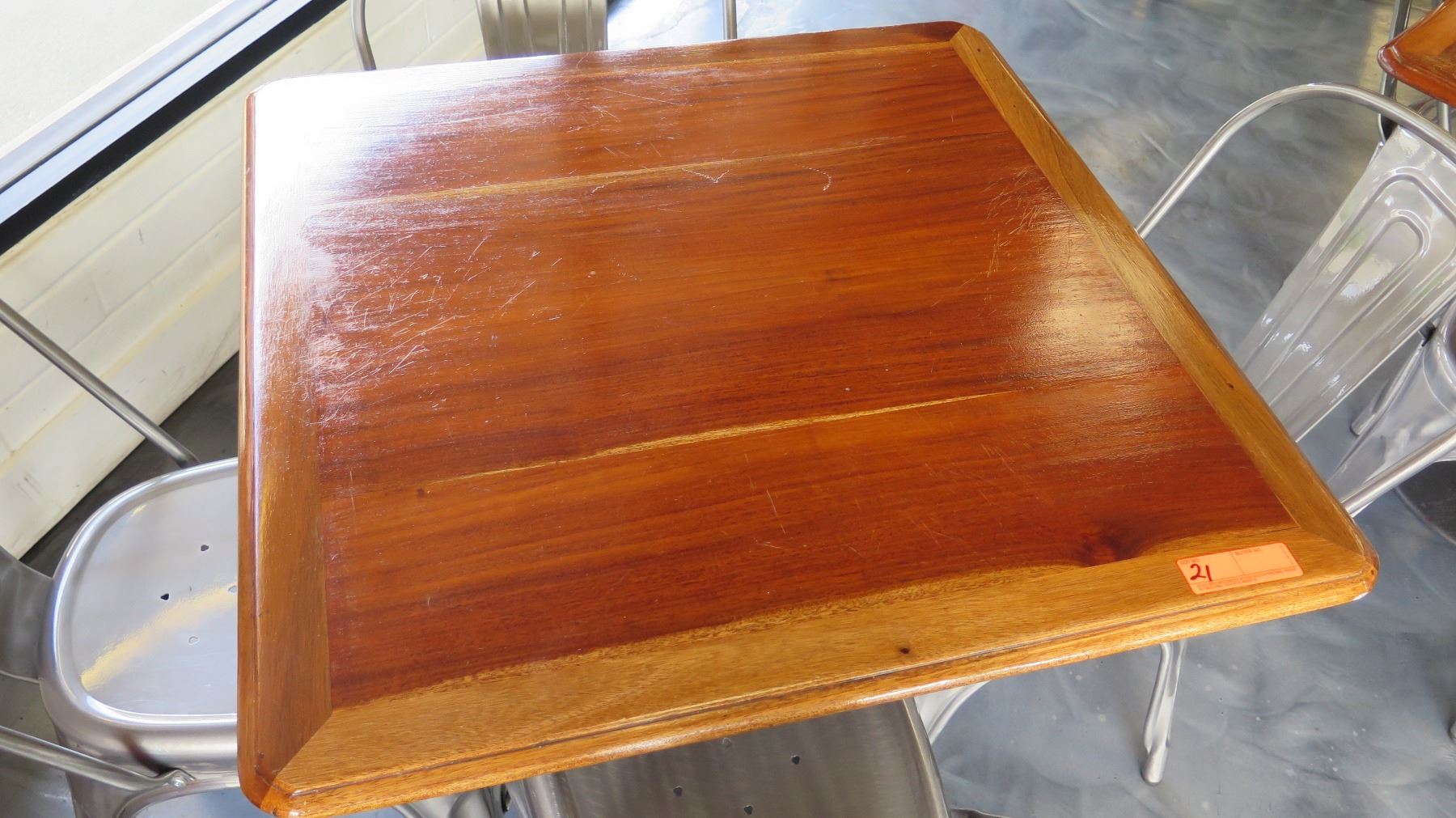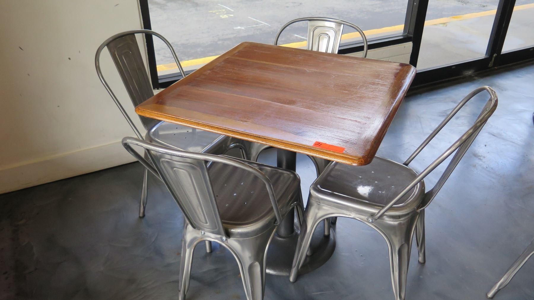 Square Wood Table w/Round Metal Base (35 X 35 X 29 H), 4 Retro Metal Chairs