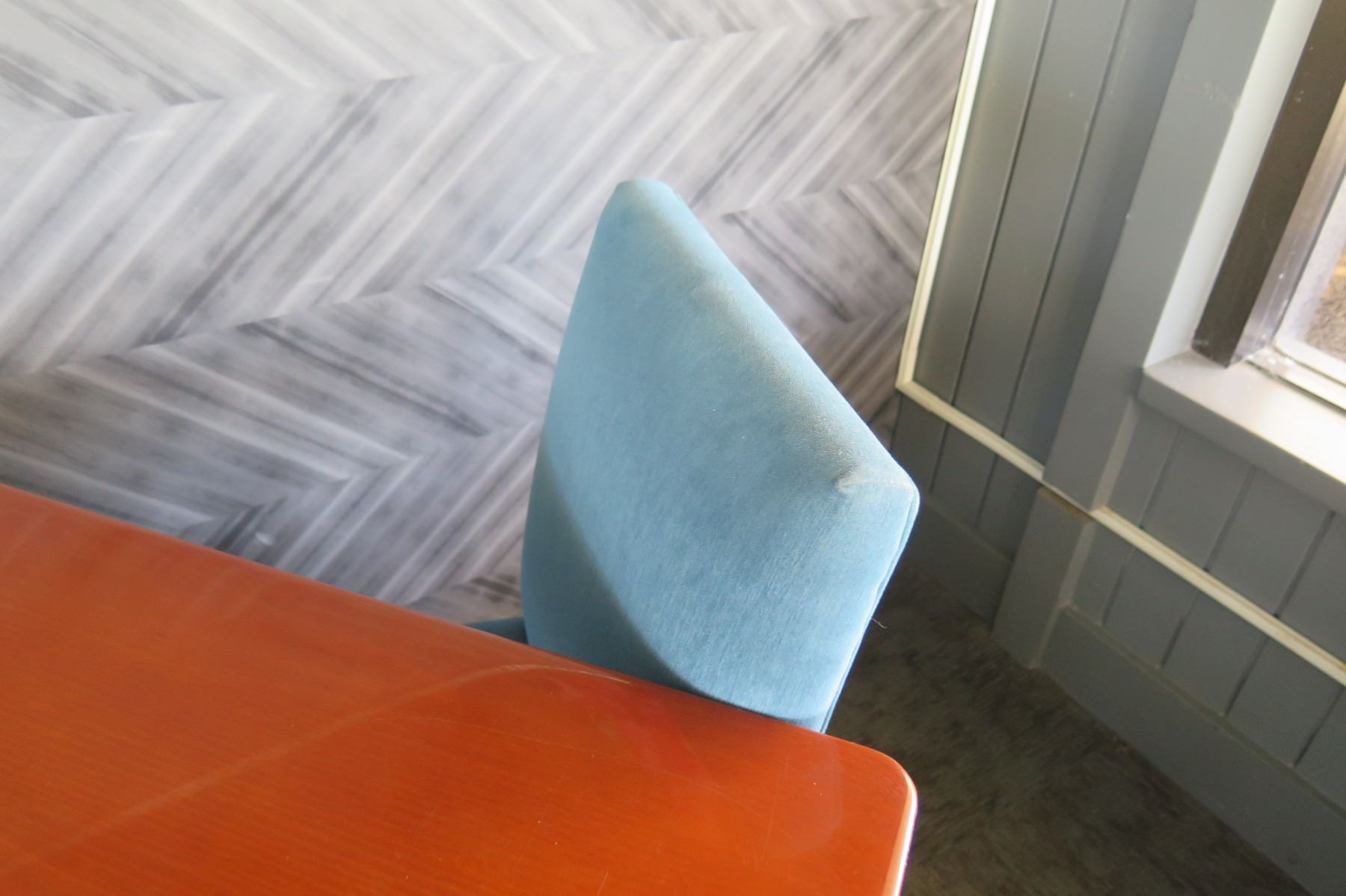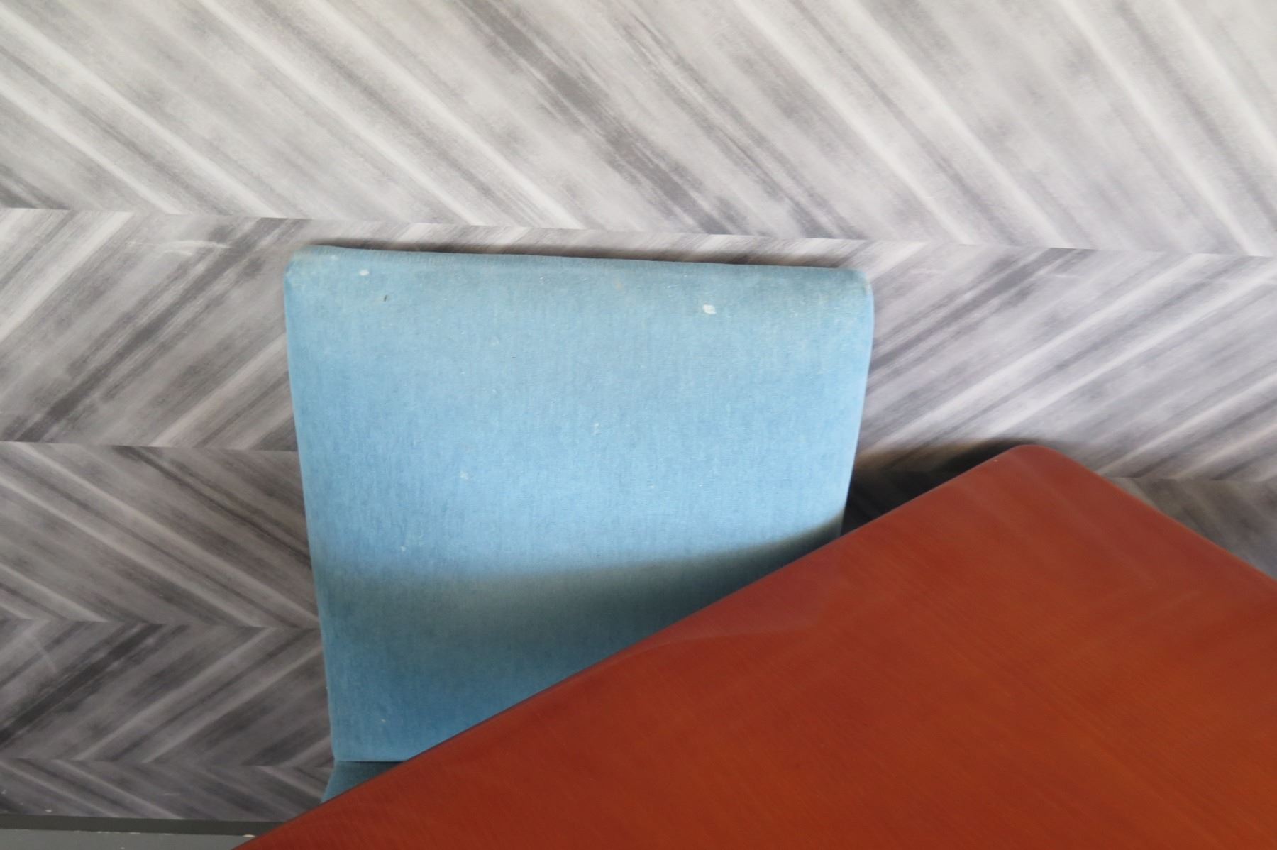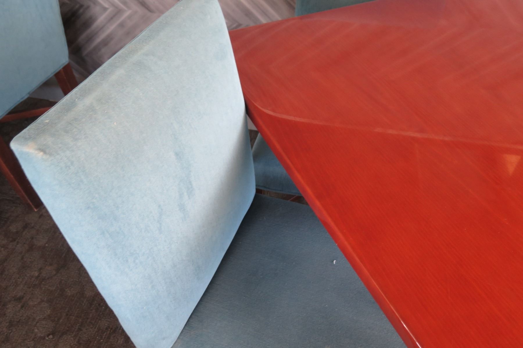 Square Wooden Table w/ Metal Base (38" x 38" x 29") & 3 Upholstered Chairs