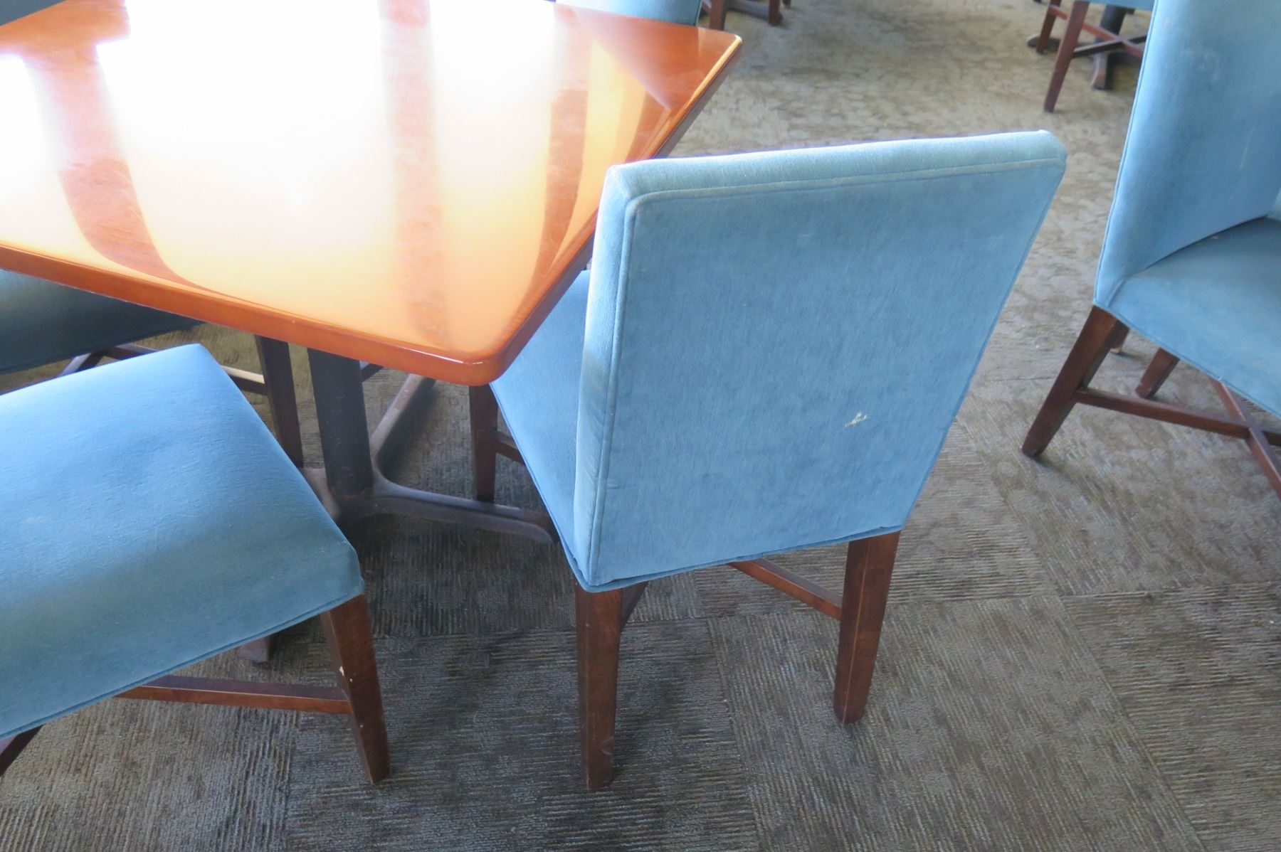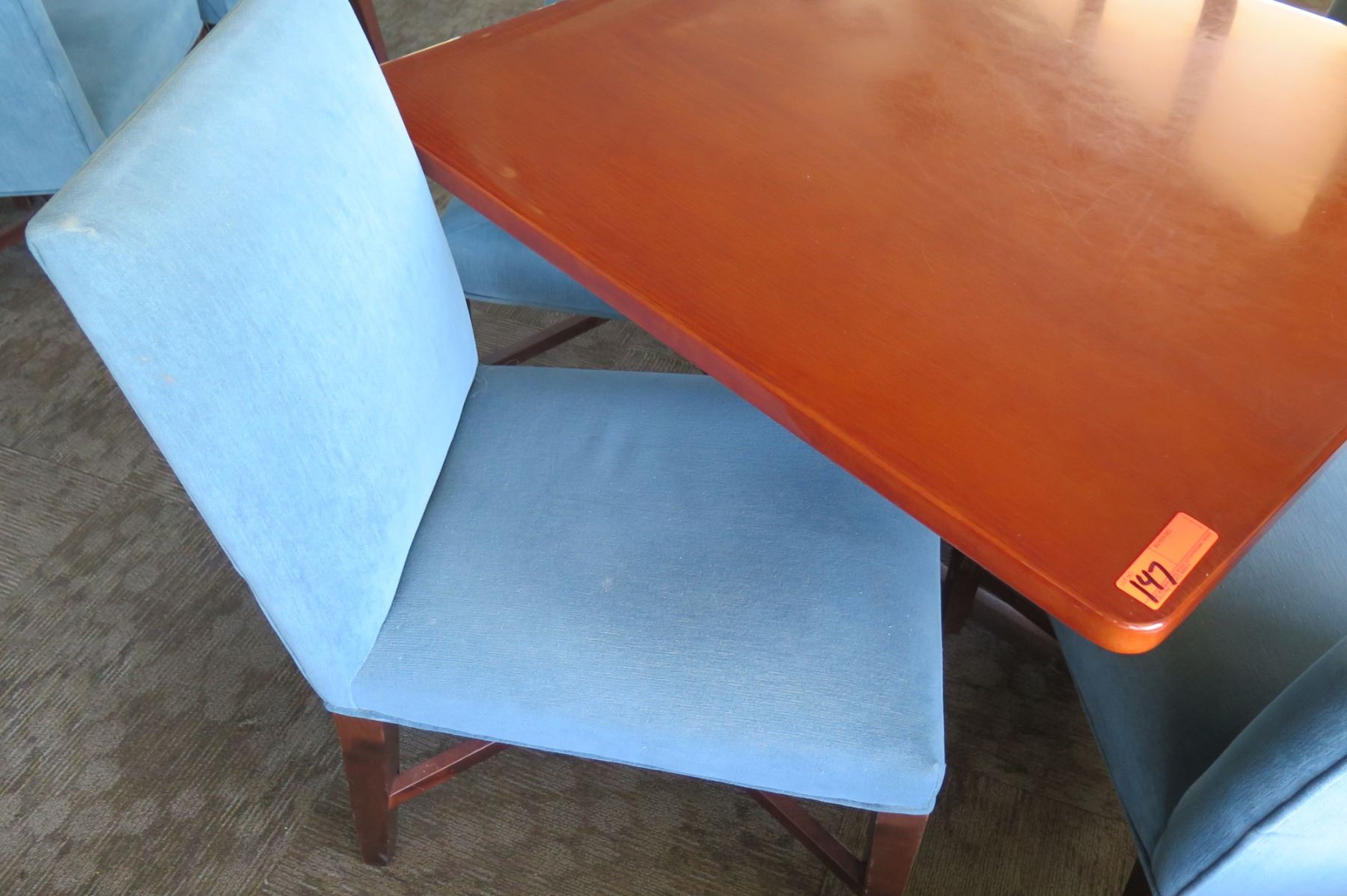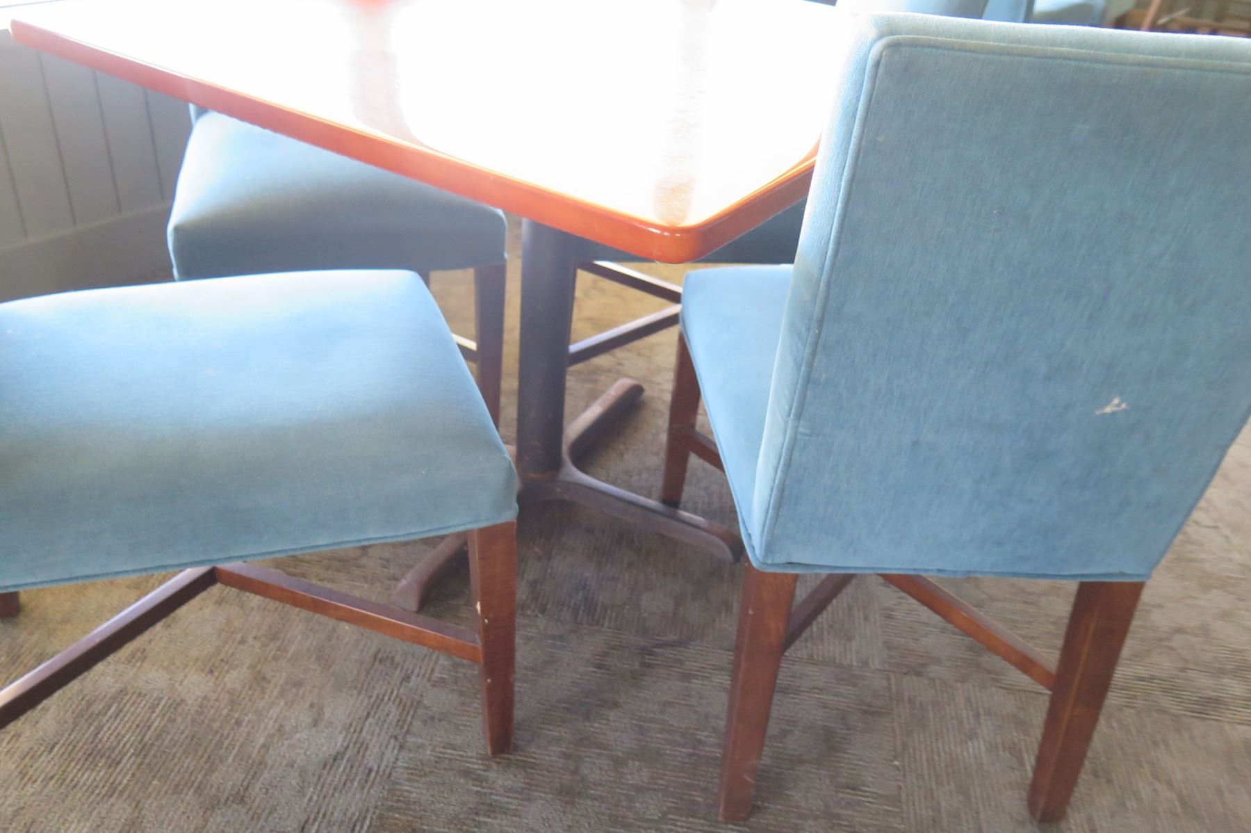 Square Wooden Table w/ Metal Base (38" x 38" x 29") & 4 Upholstered Chairs