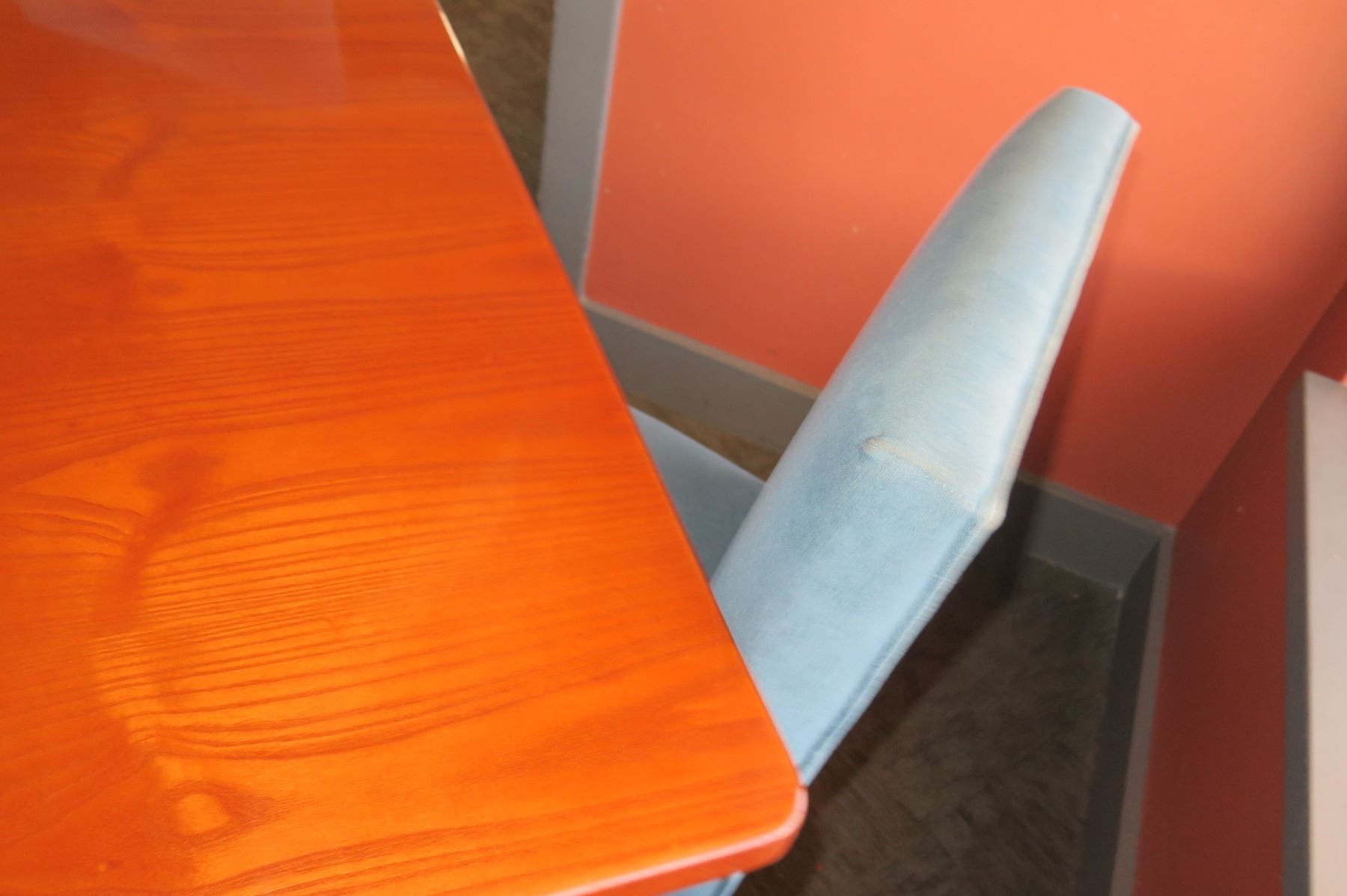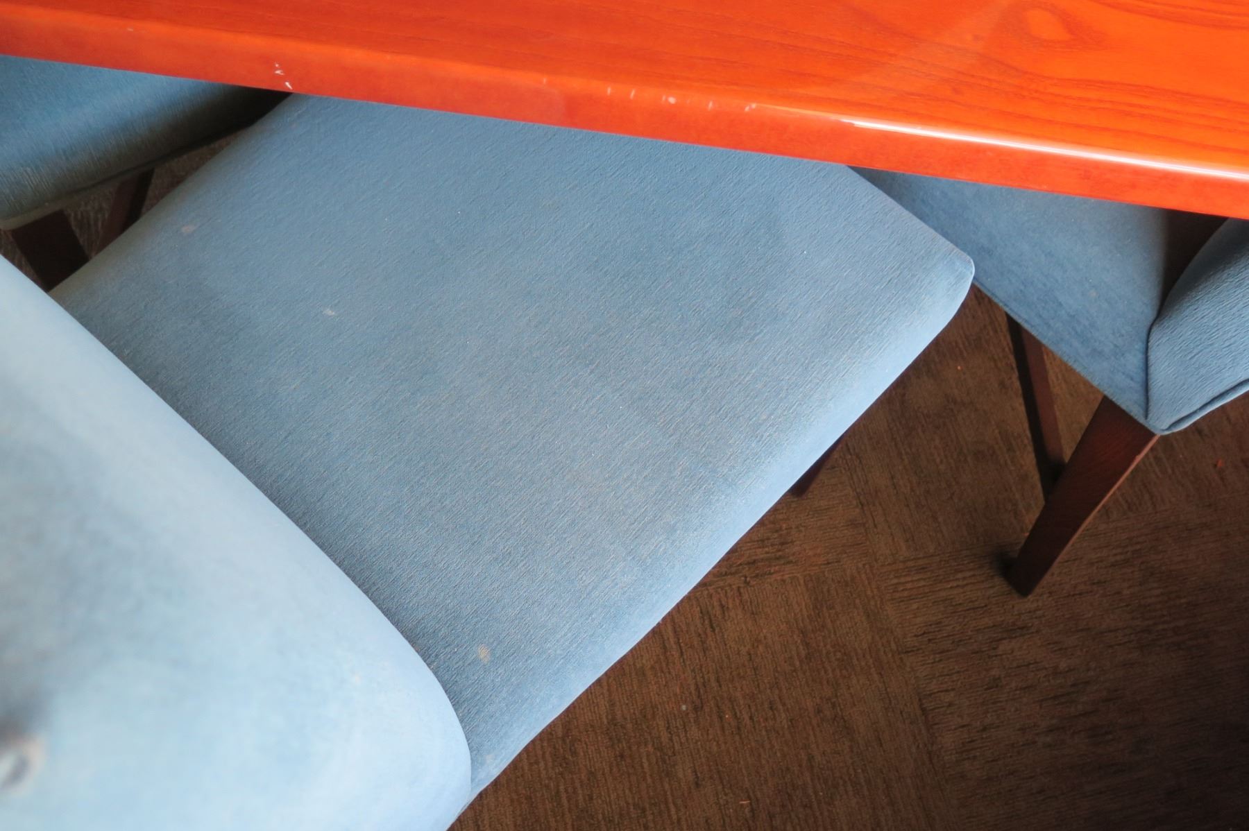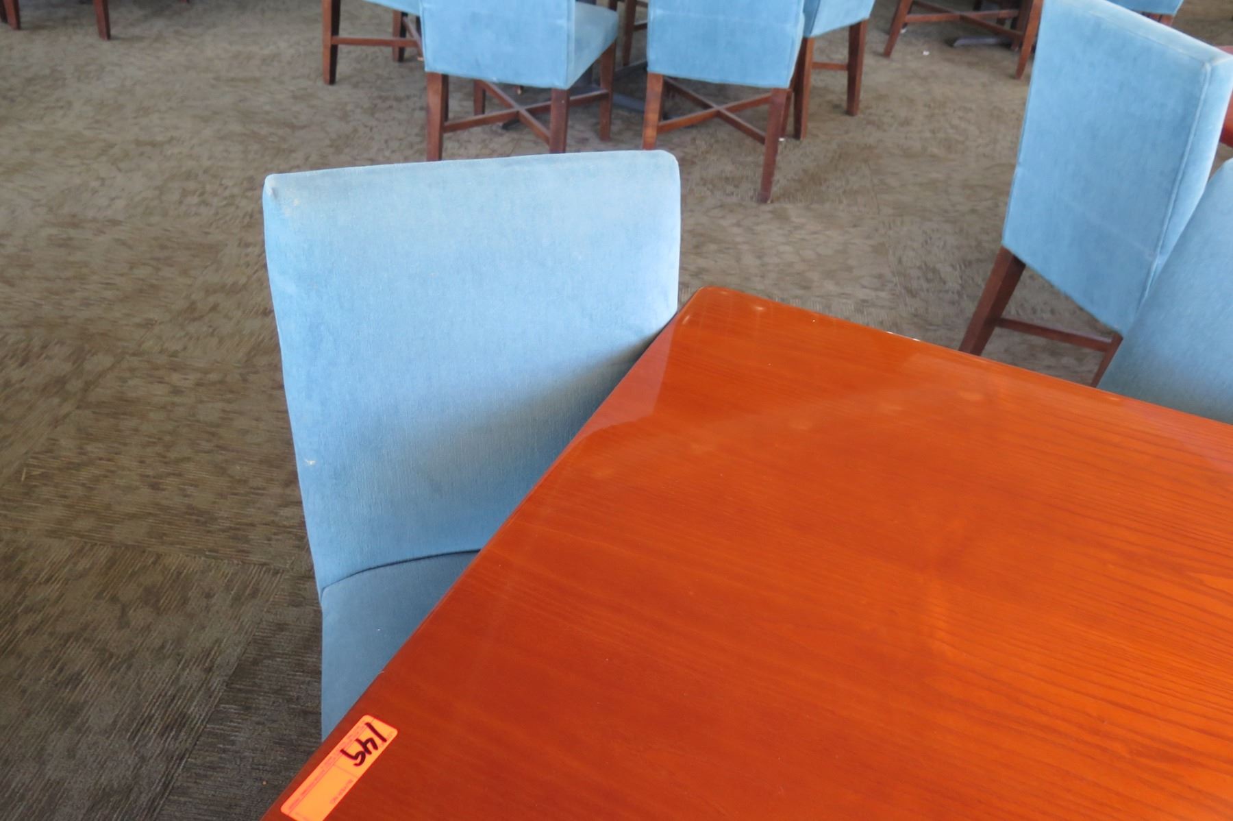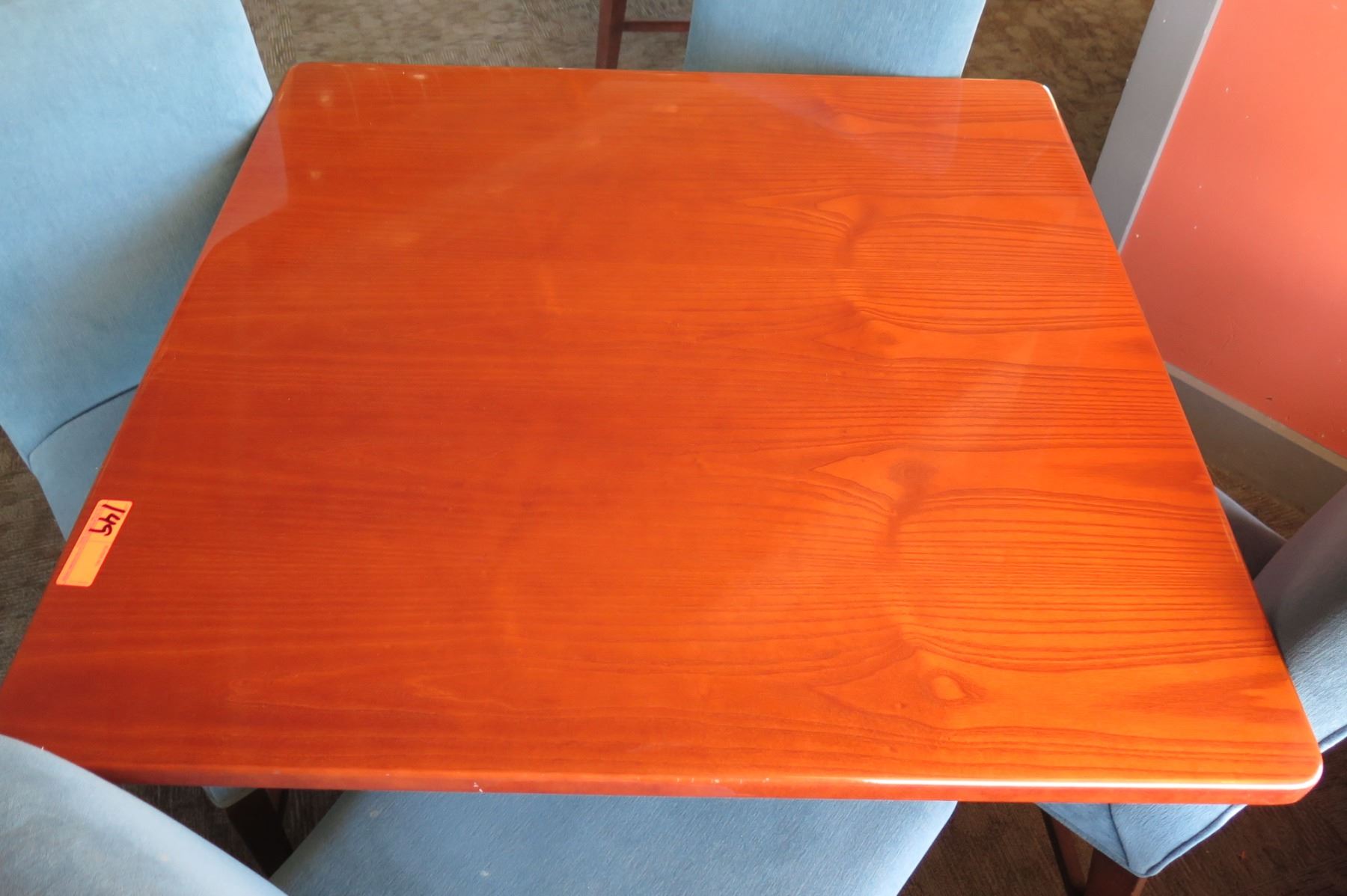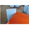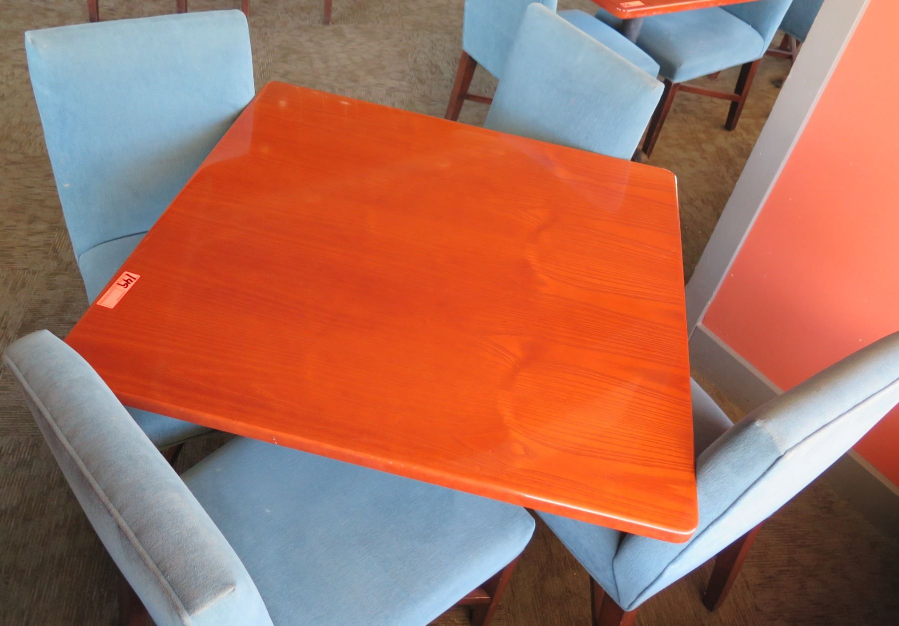 Square Wooden Table w/ Metal Base (38" x 38" x 29") & 4 Upholstered Chairs