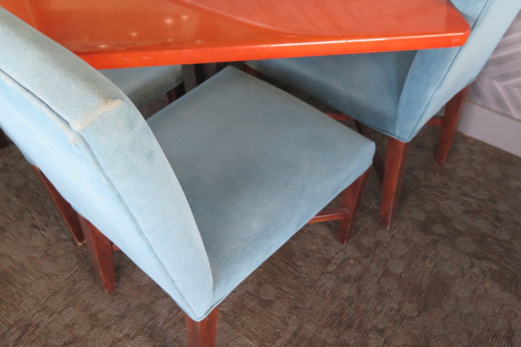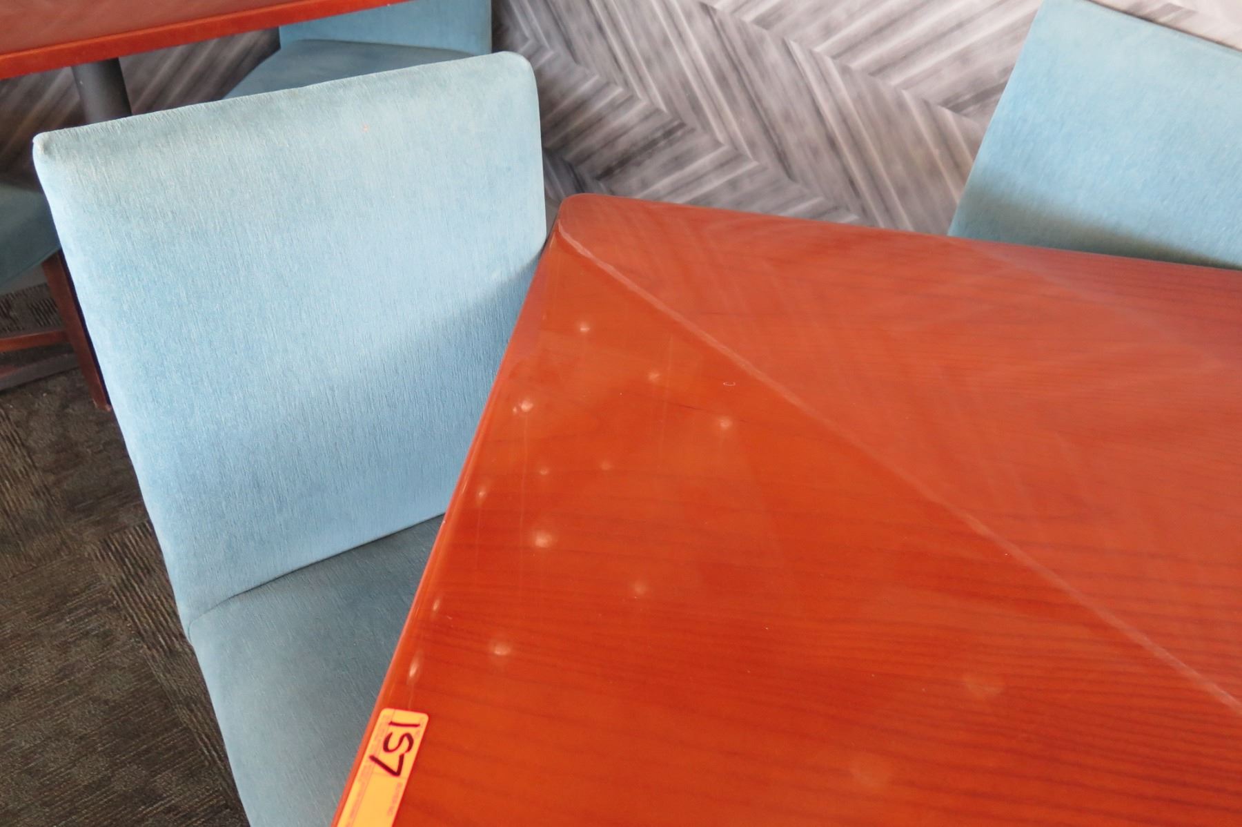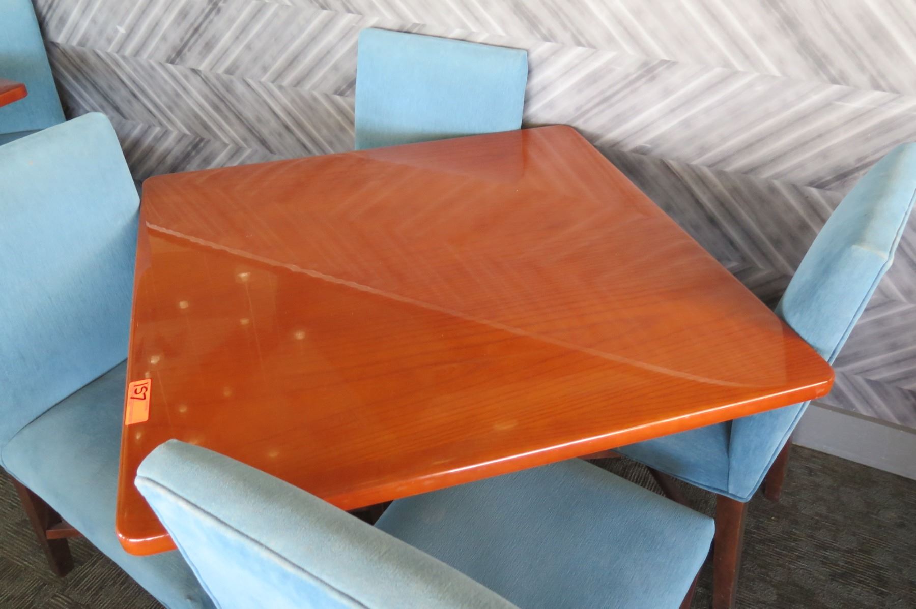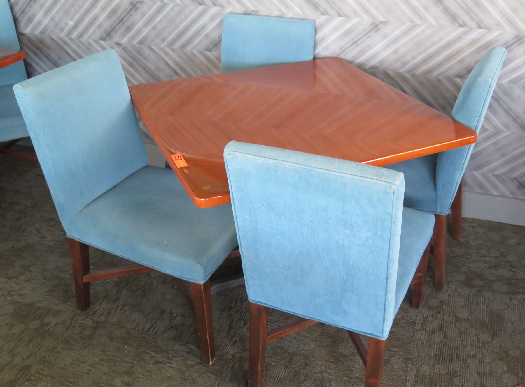 Square Wooden Table w/ Metal Base (38" x 38" x 29") & 4 Upholstered Chairs