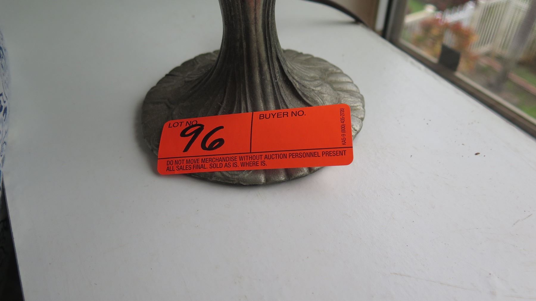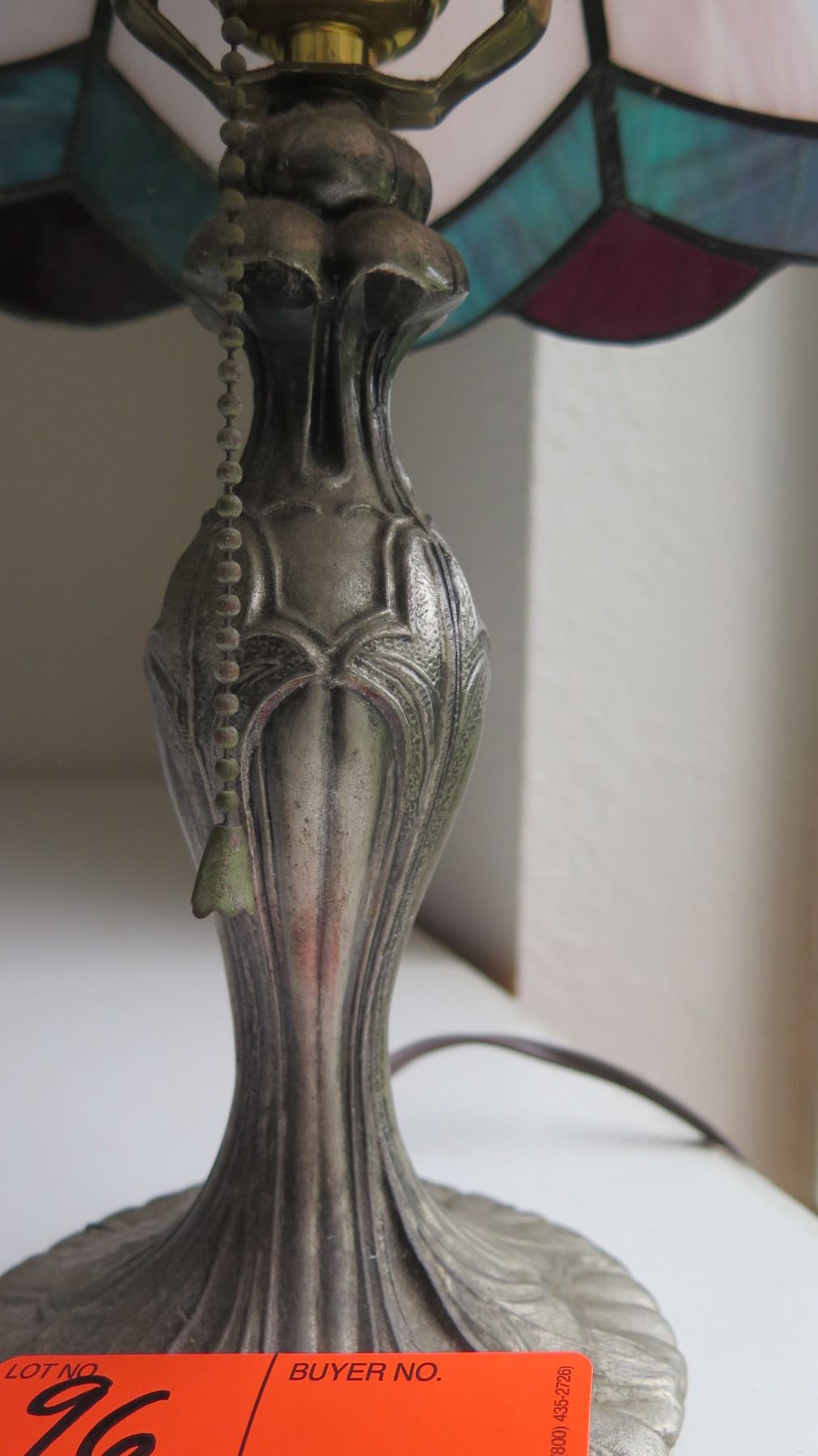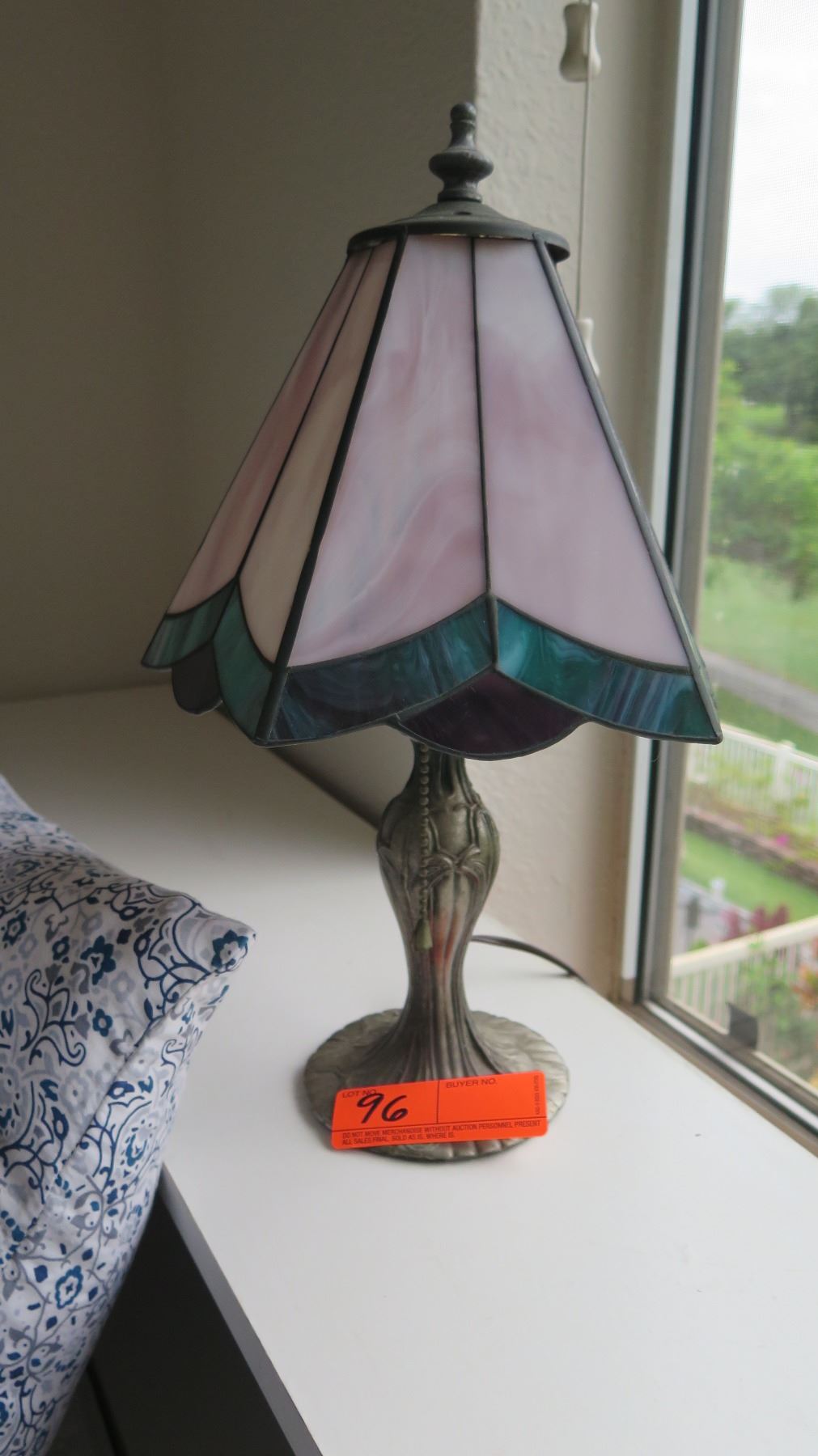 Stained Glass Table Lamp with Antiqued Metal Base, 15" H