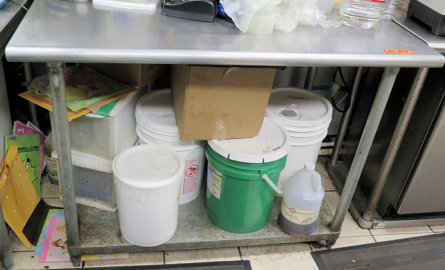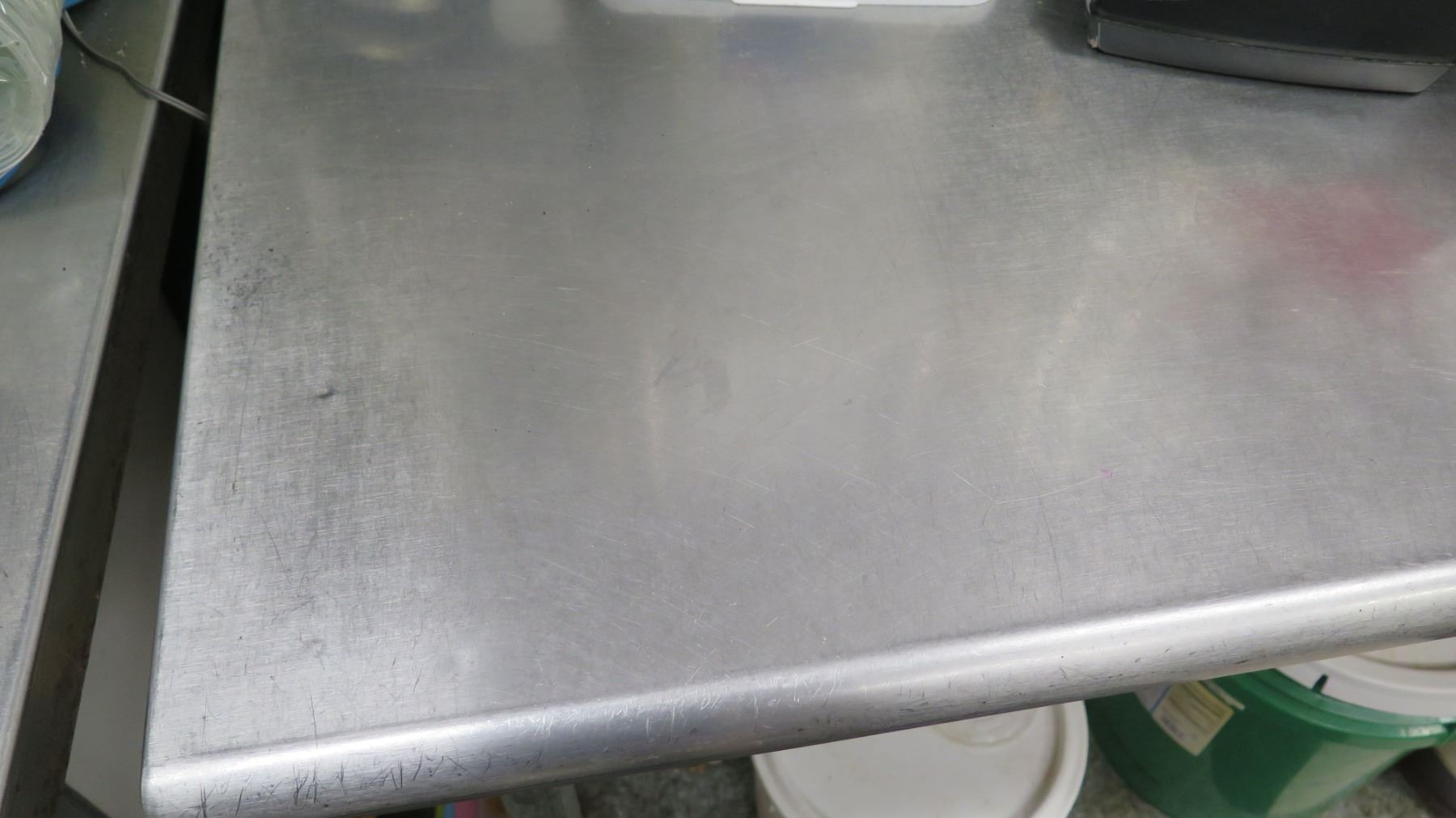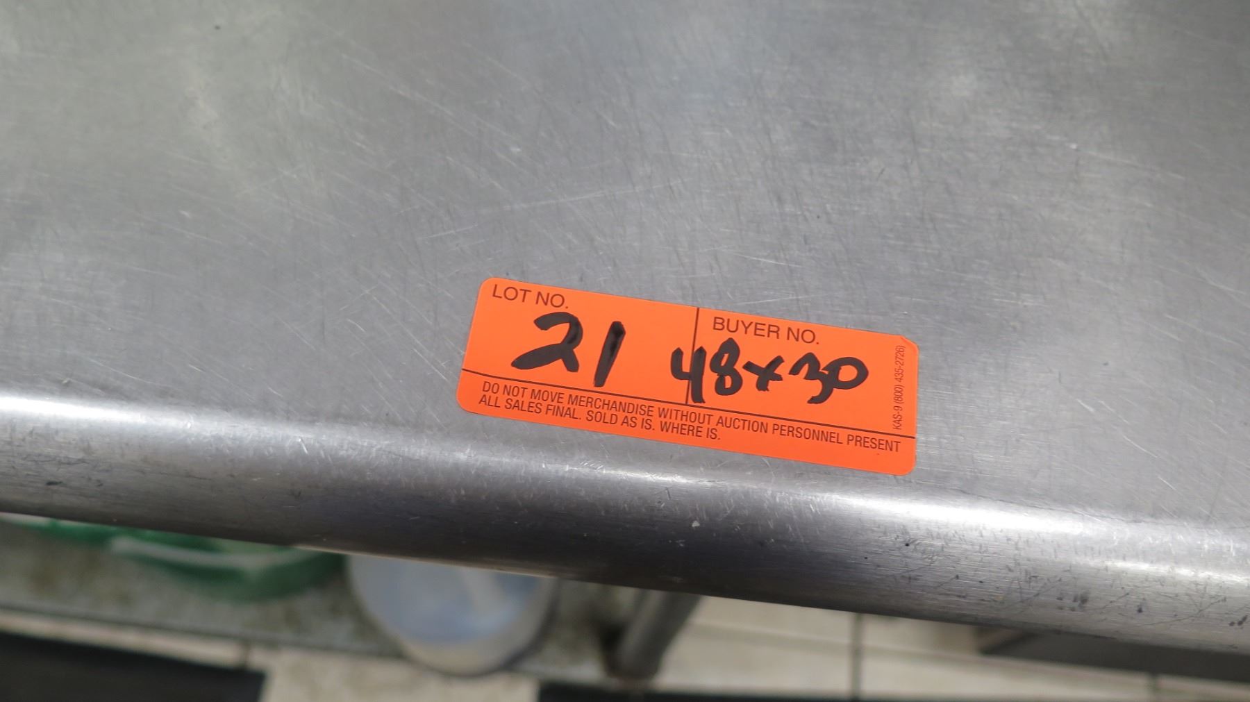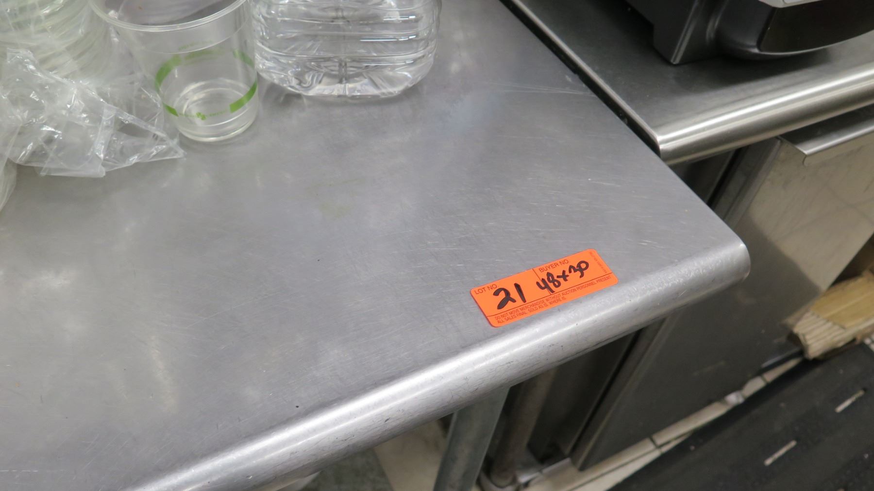 Stainless Steel Prep Table 48" x 30" w/ Shelf Underneath. FOOD PRODUCTS AND MERCHANDISE IN THE PICTURES ARE NOT INCLUDED.