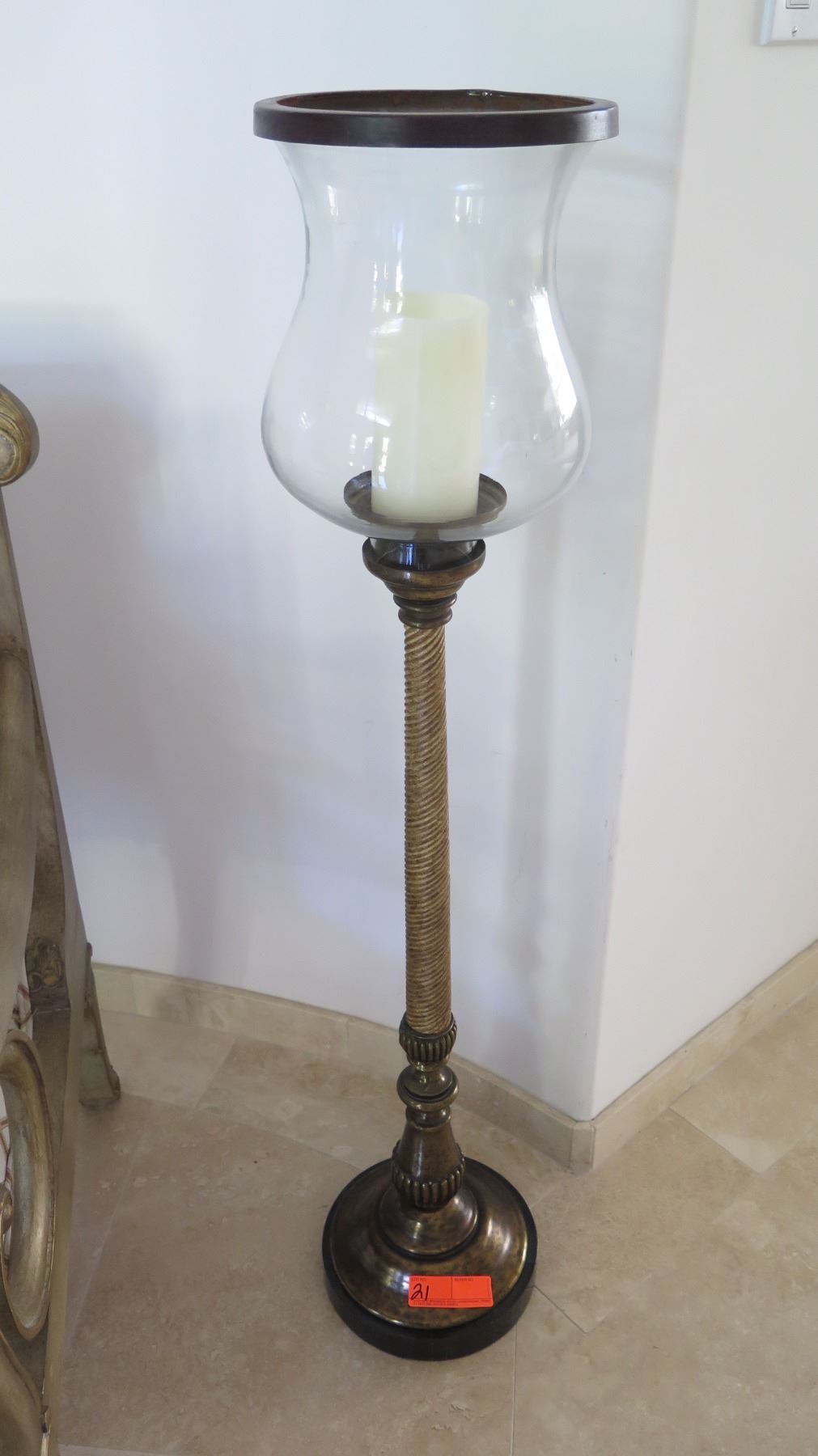 Standing Candle Holder with Hurricane Glass Globe, Approx. 44" Tall