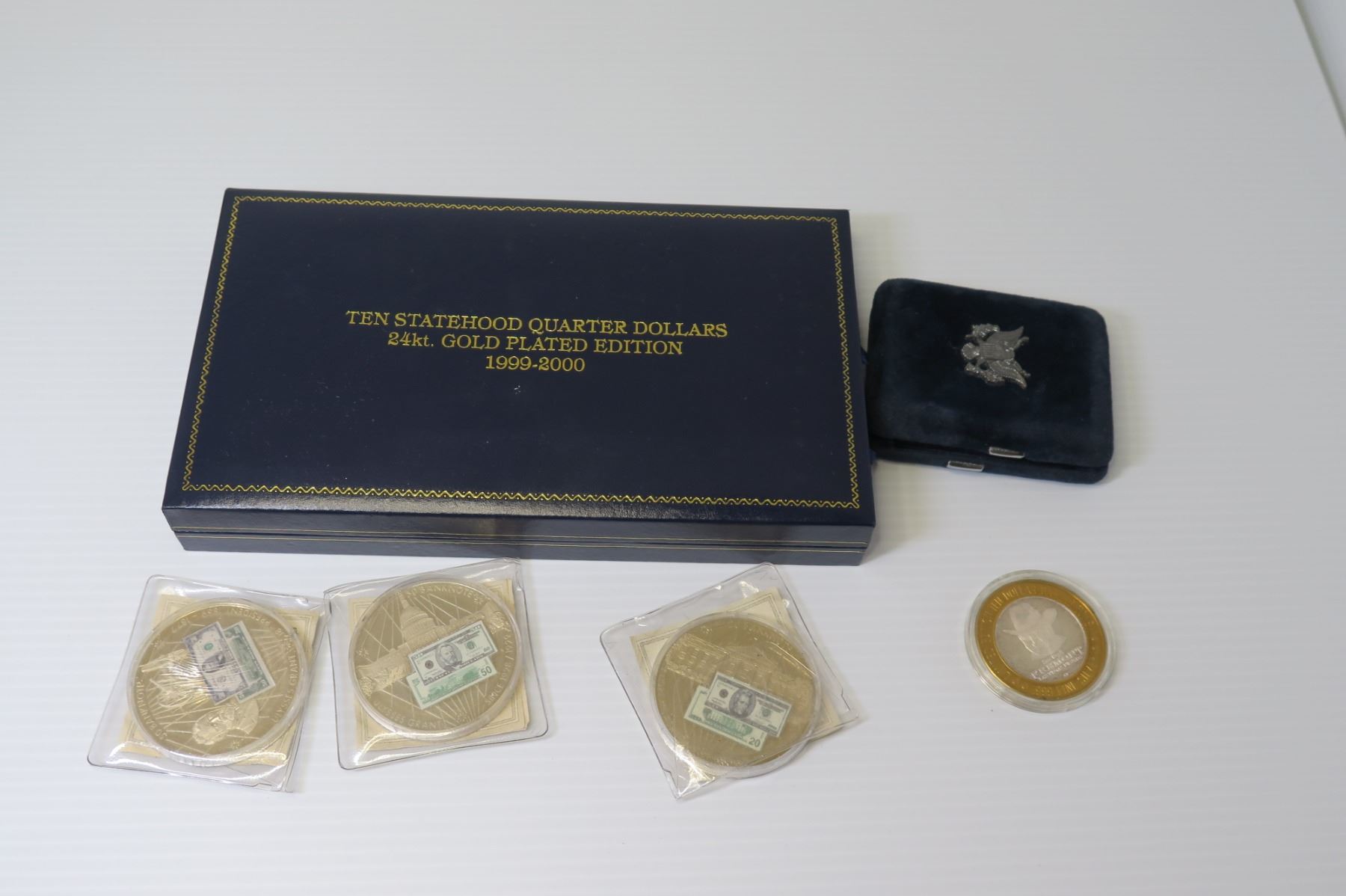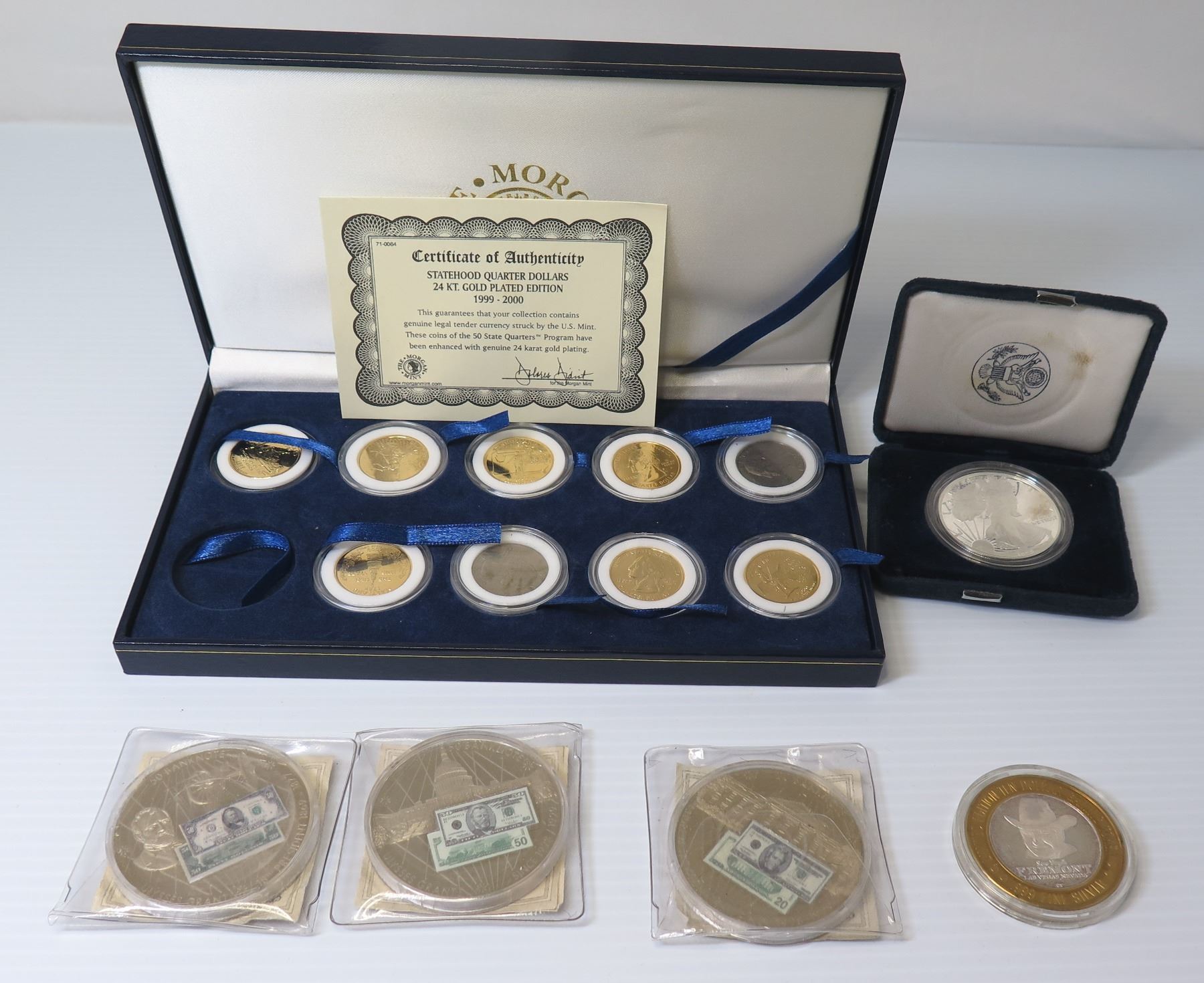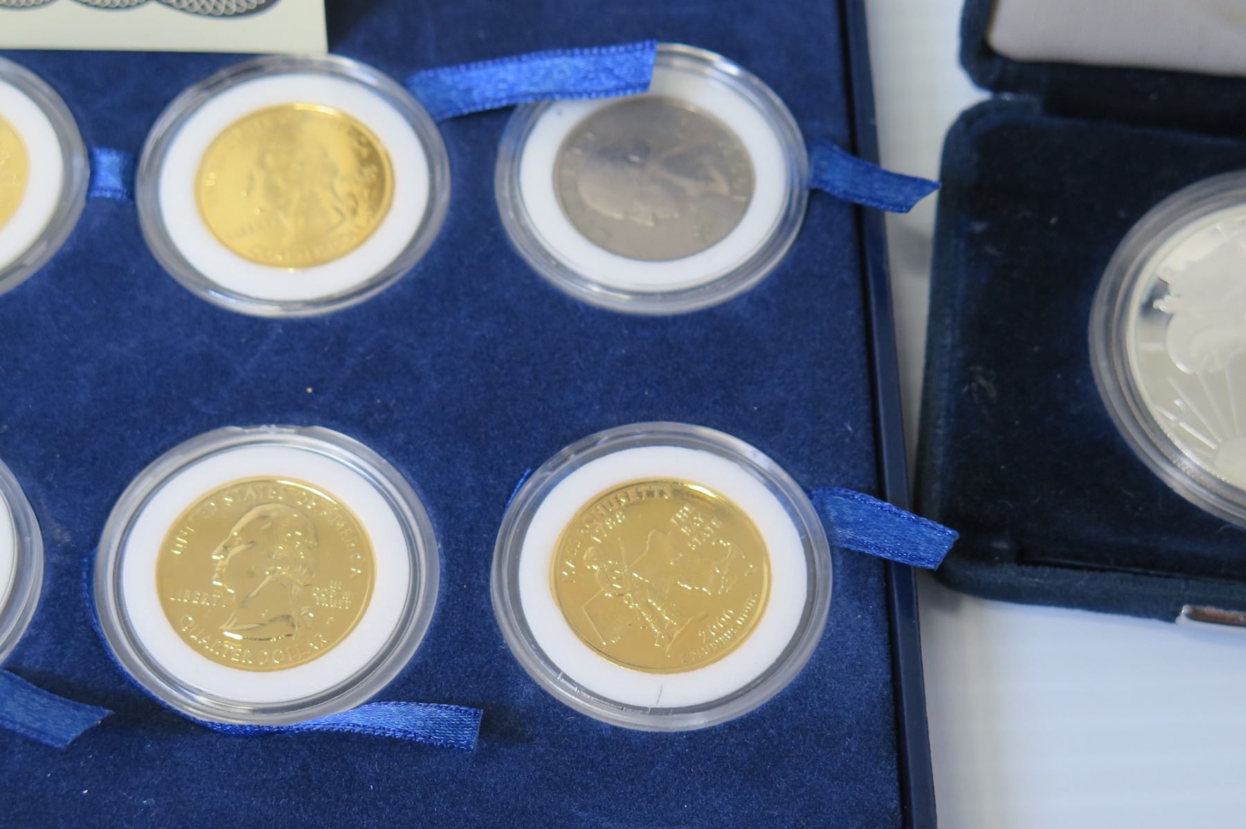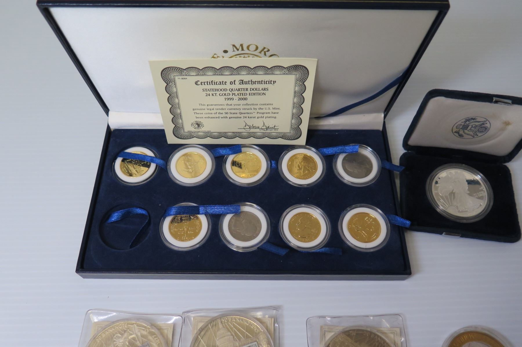 Statehood Quarter Dollars 24K Gold Plated 1999-2000 COA in Box & Misc Coins