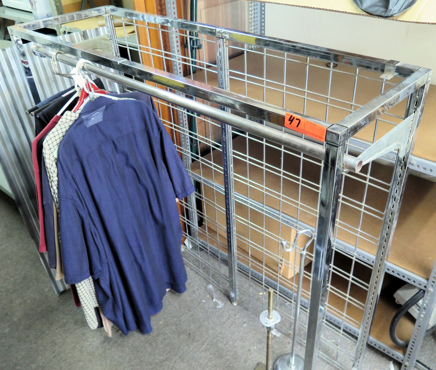 Stationary Metal Single Pole Clothing Display Rack w/ Wire Back