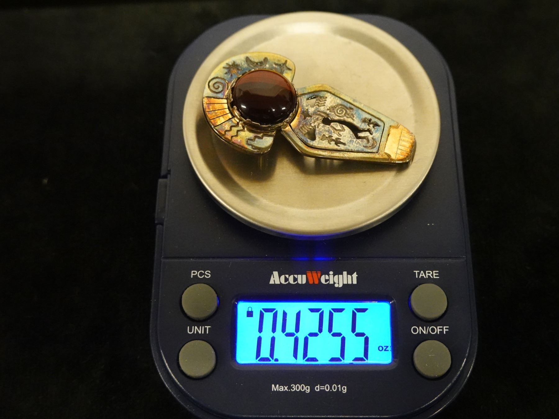 Sterling Silver 925 Brooch w/ Hieroglyph Design, 0.42 oz, 2" L