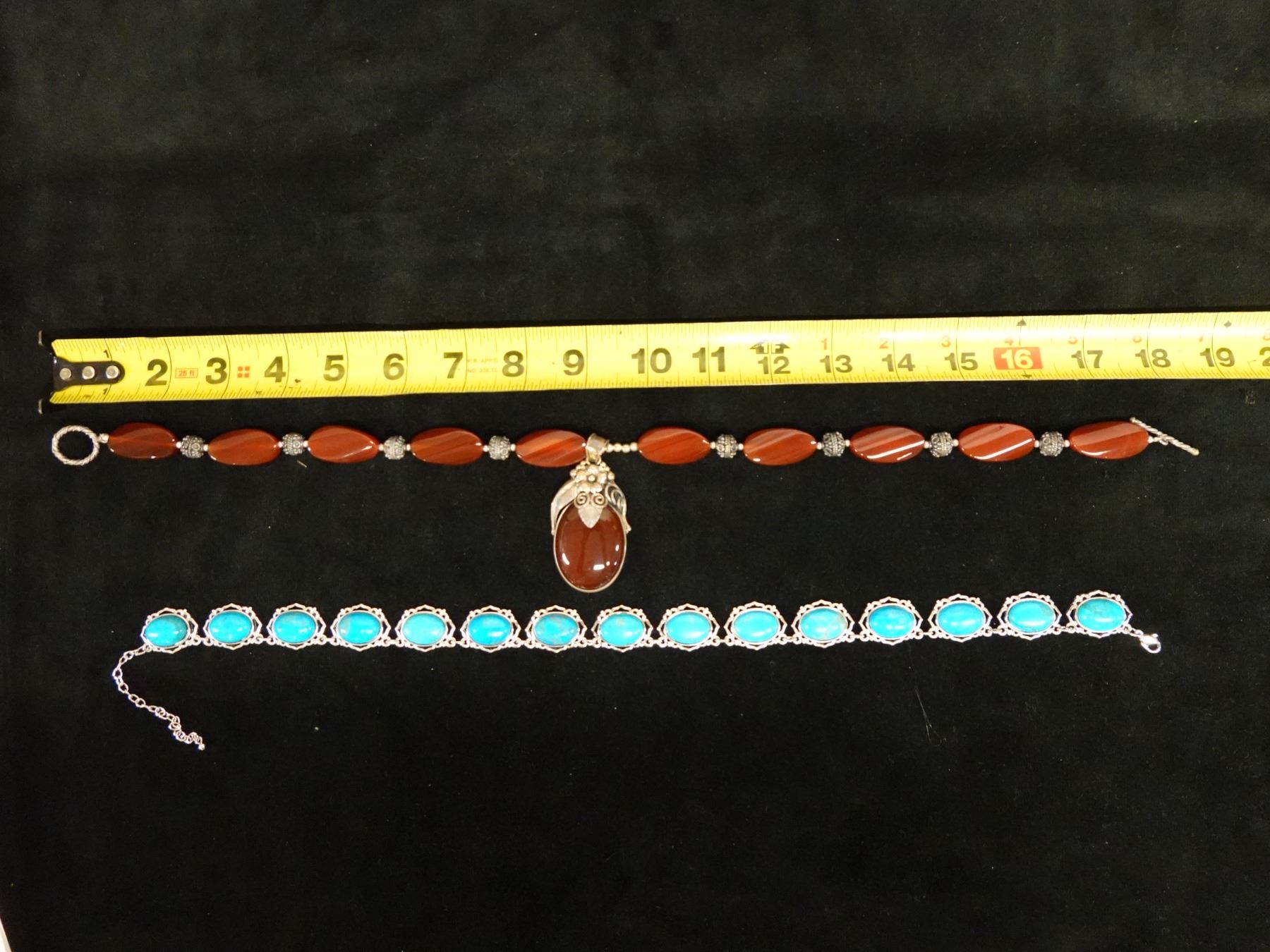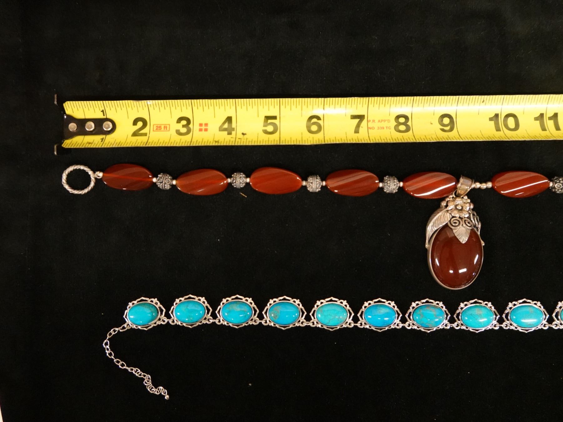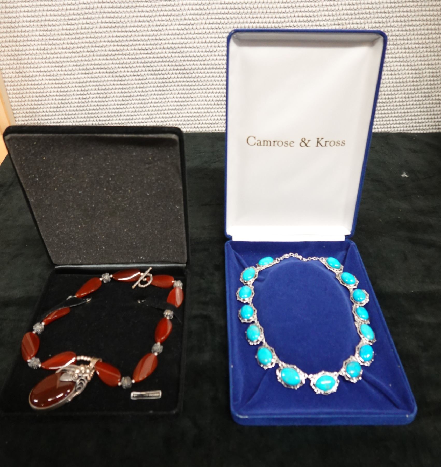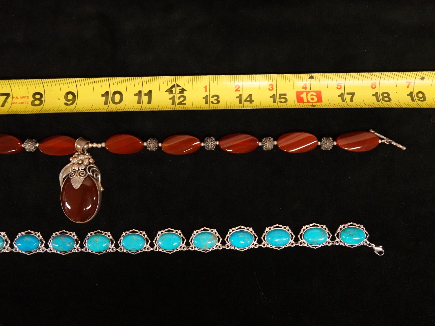 Sterling Silver 925 Necklace w/ Pendant & Camrose & Kross Bracelet w/ Turquoise Beads, Misc Sizes