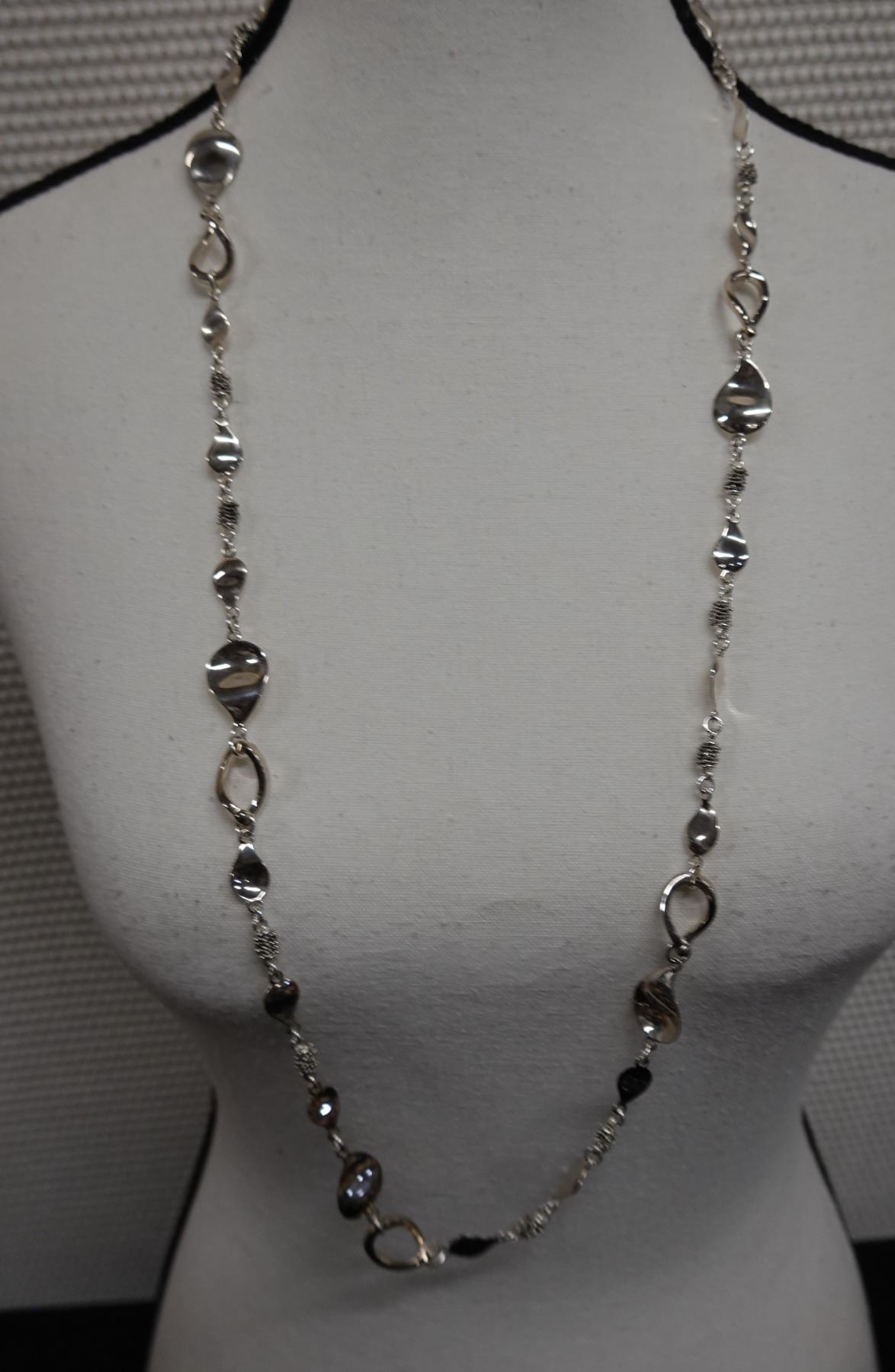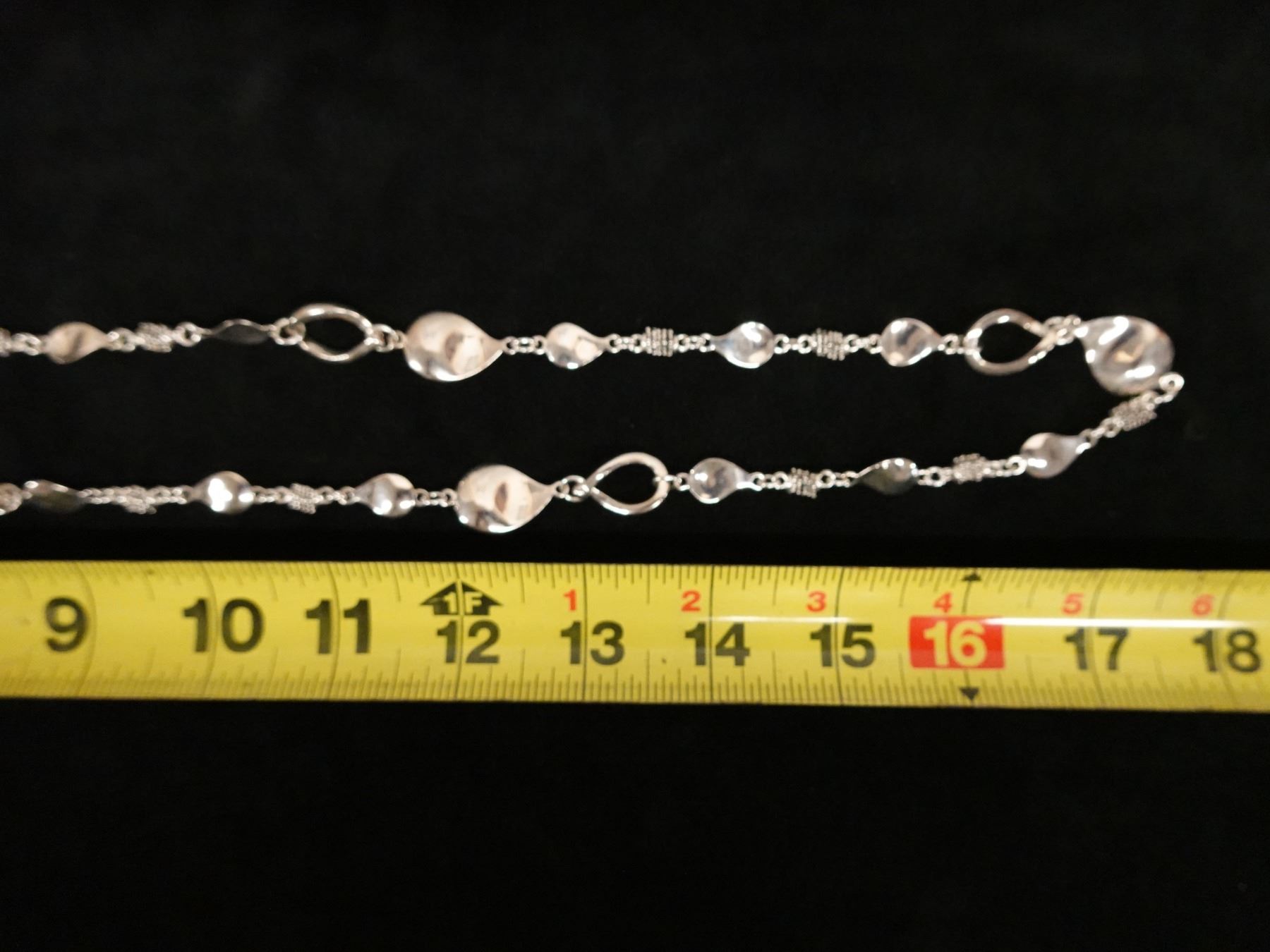 Sterling Silver 925 Necklace w/ Teardrop Accents, 34" L