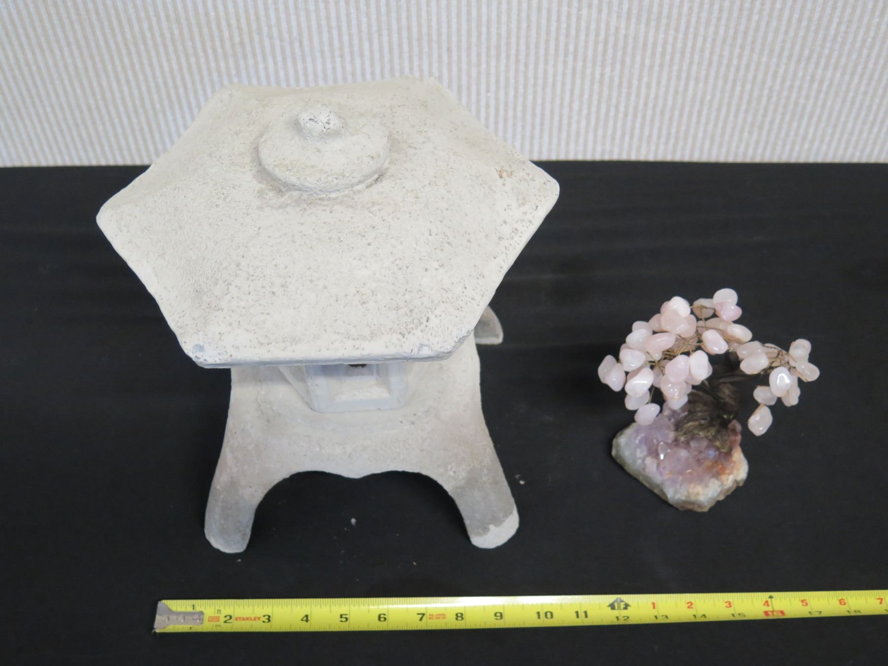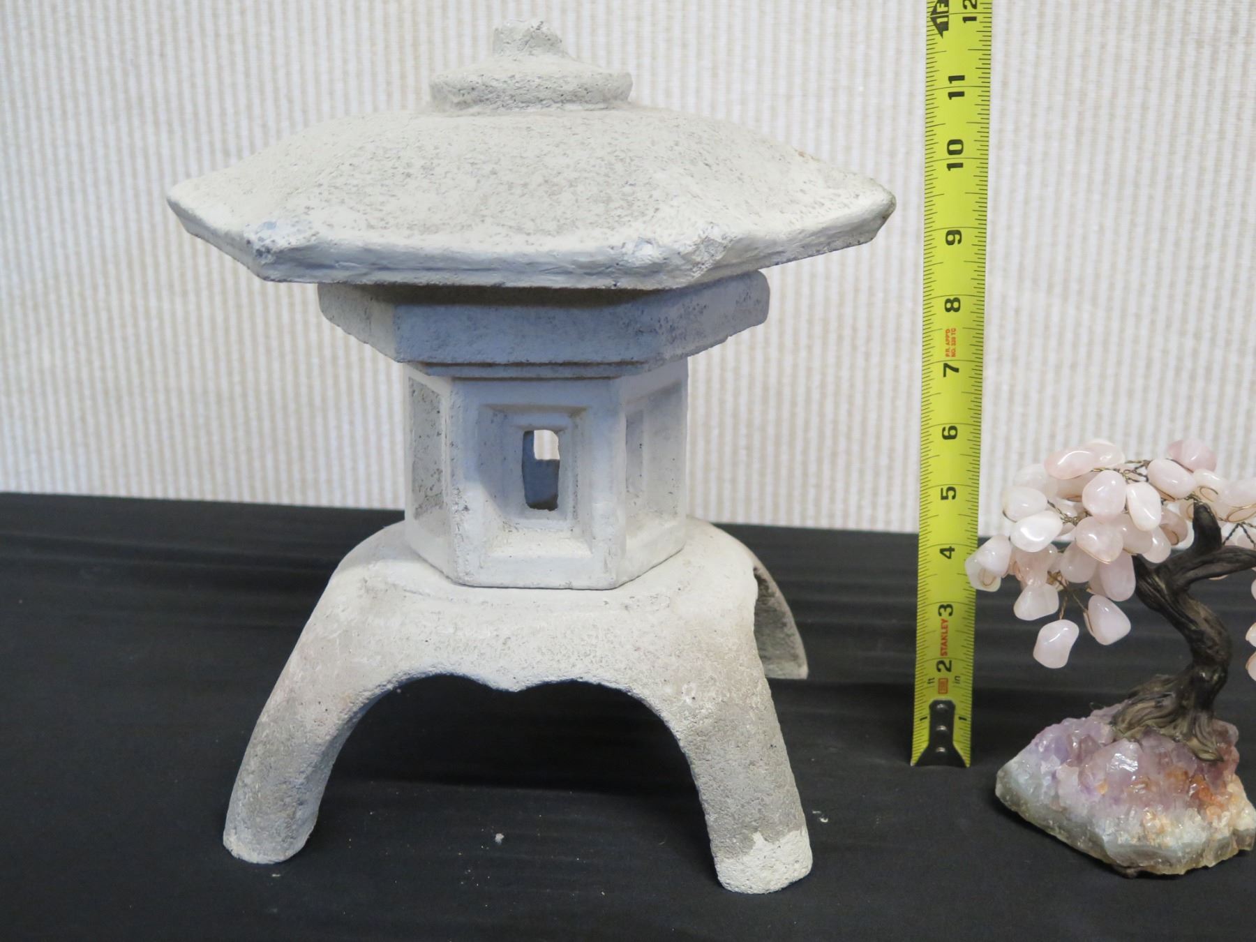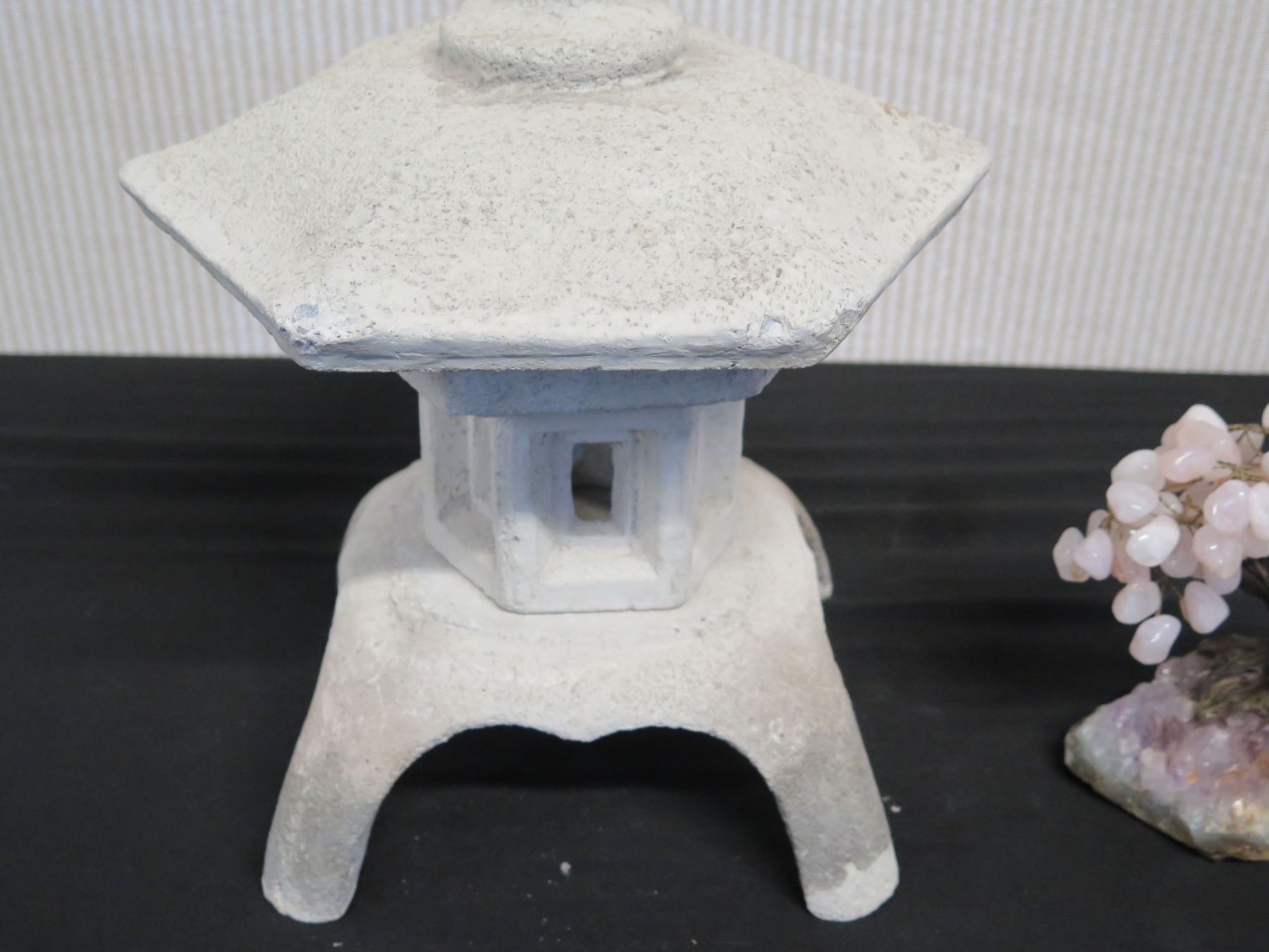 Stone 3-Section Pagoda Decorative Lantern 14"L x 23"H & Tree w/ Stone Leaves