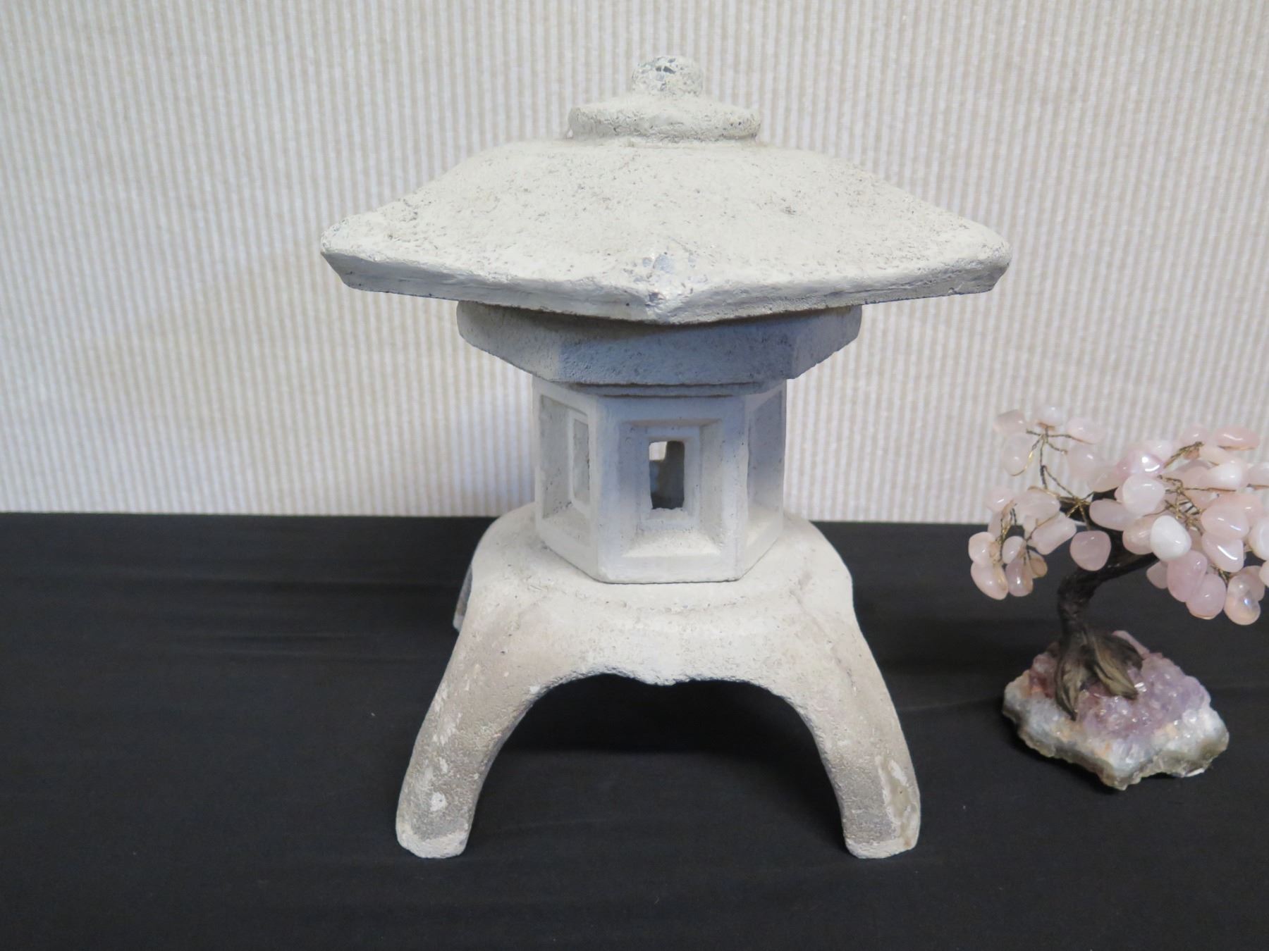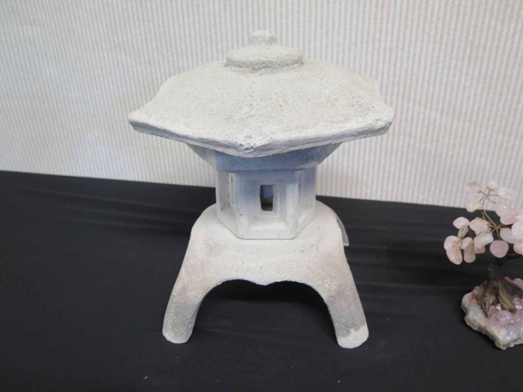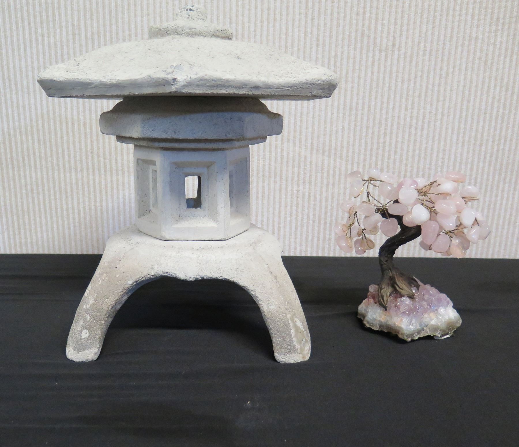Stone 3-Section Pagoda Decorative Lantern 14"L x 23"H & Tree w/ Stone Leaves