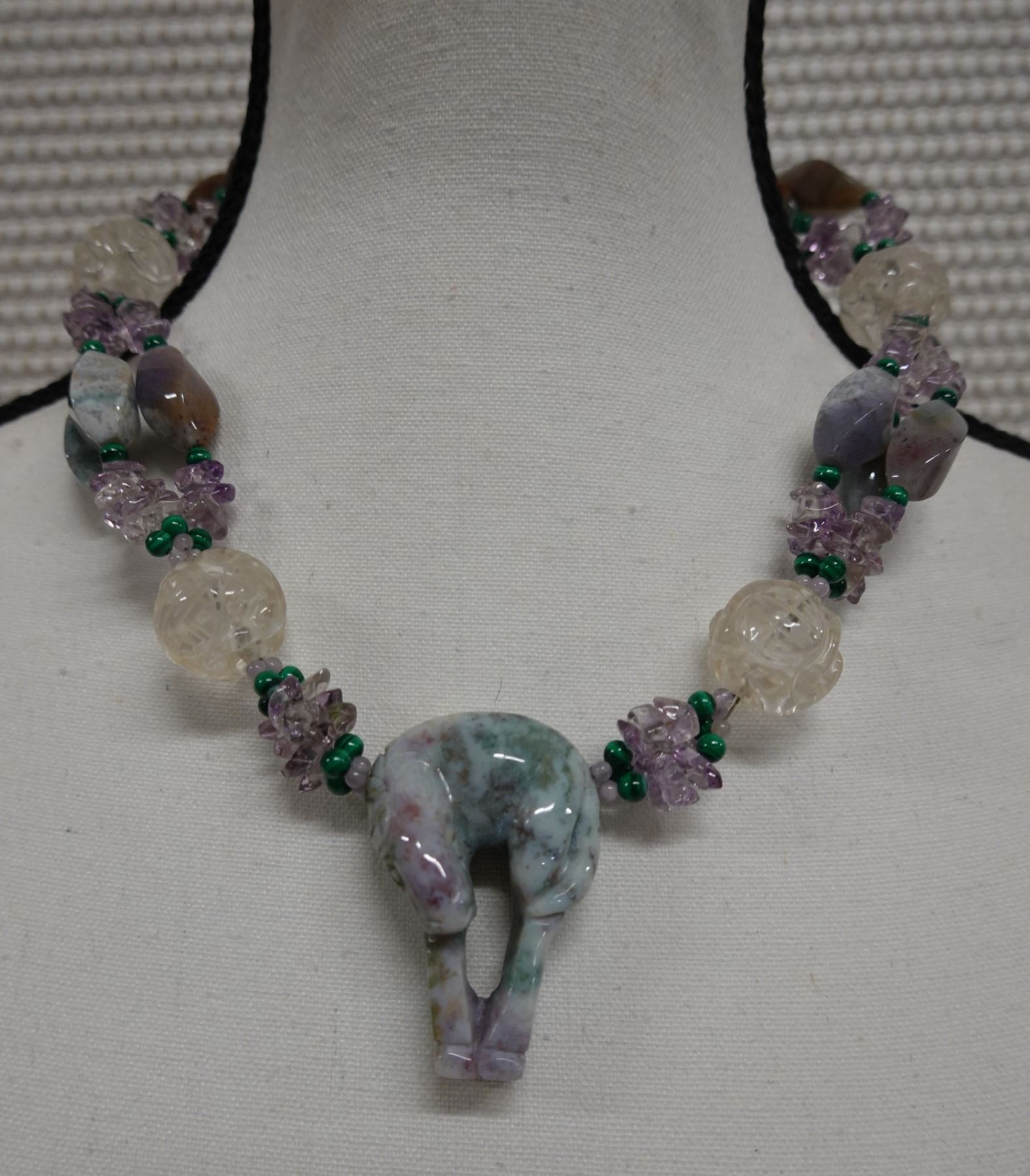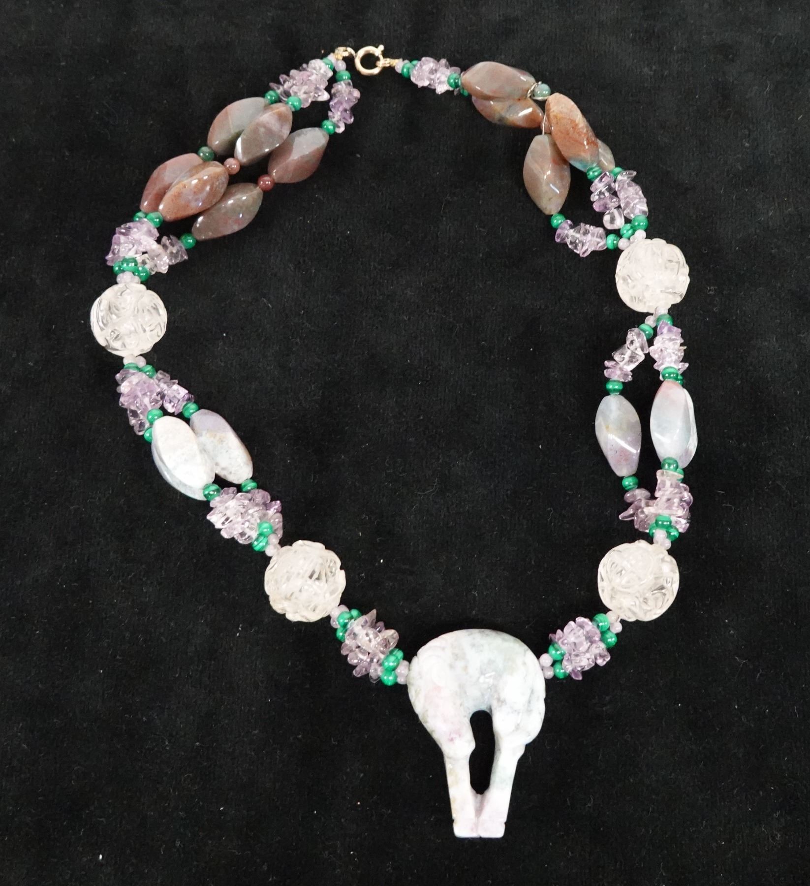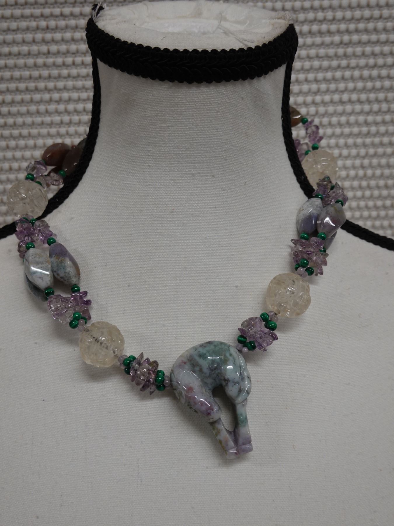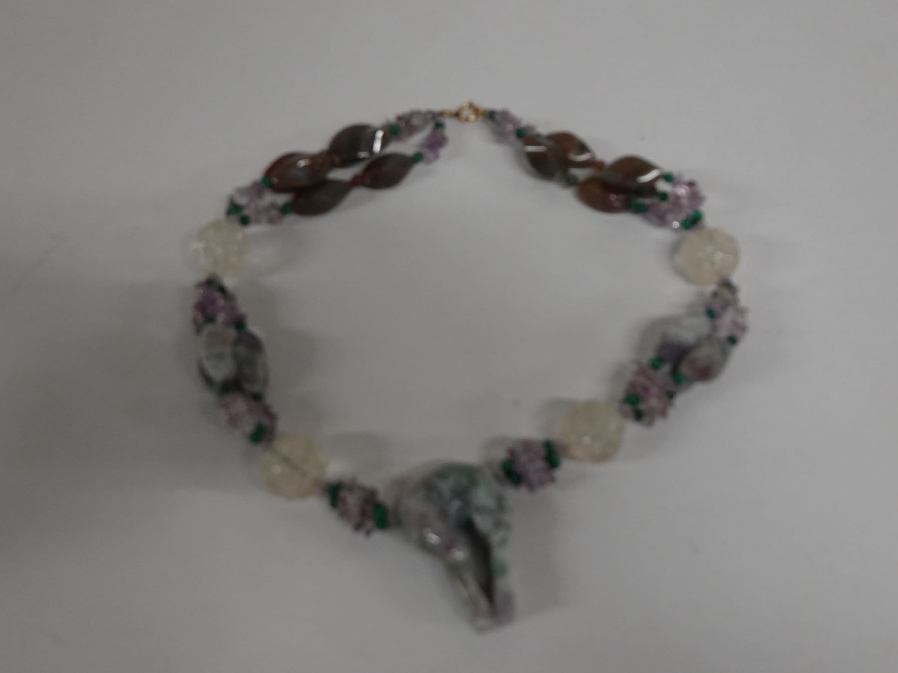 Stone & Bead Necklace w/ 12K Gold Clasp, 19" L